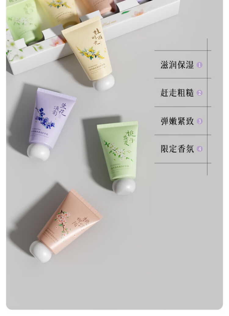 Fuchiting Vaseline Hand Cream Gift Box Set gives high-end moisturizing, moisturizing, whitening, lightening fine lines and roughness, portable small tube Vaseline Fragrance Hand Cream Gift Box (30g*4 pieces)*1 box 30g/box