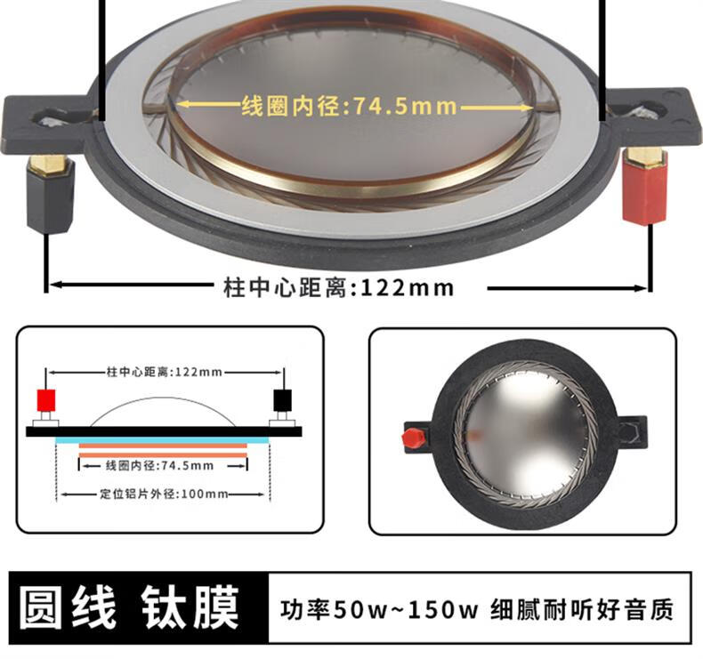 Horns high-end imported titanium membrane 44-core 75-core tweeter voice coil speaker 100-core speaker high-power composite membrane coil 75-core tweeter membrane (flat wire) 1 (column center 1