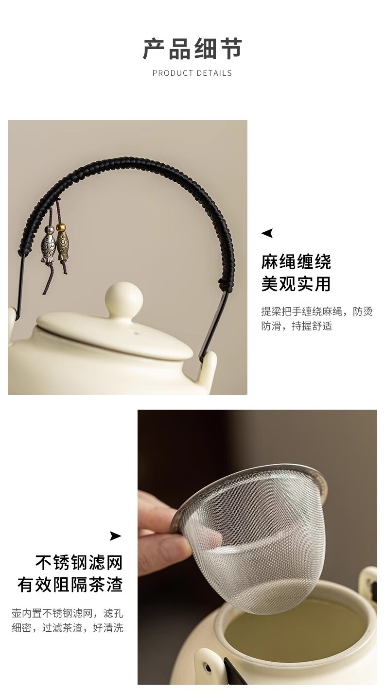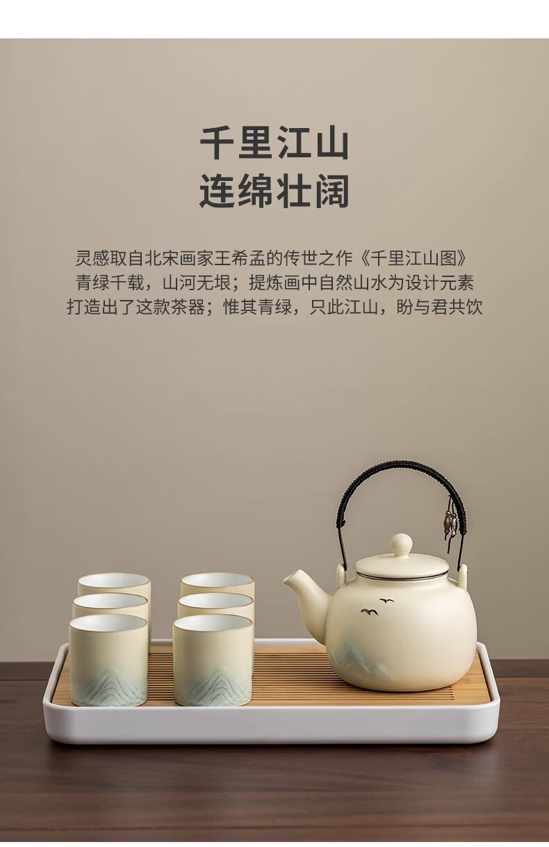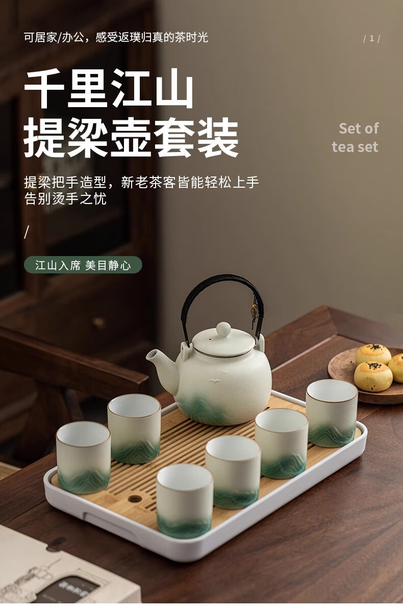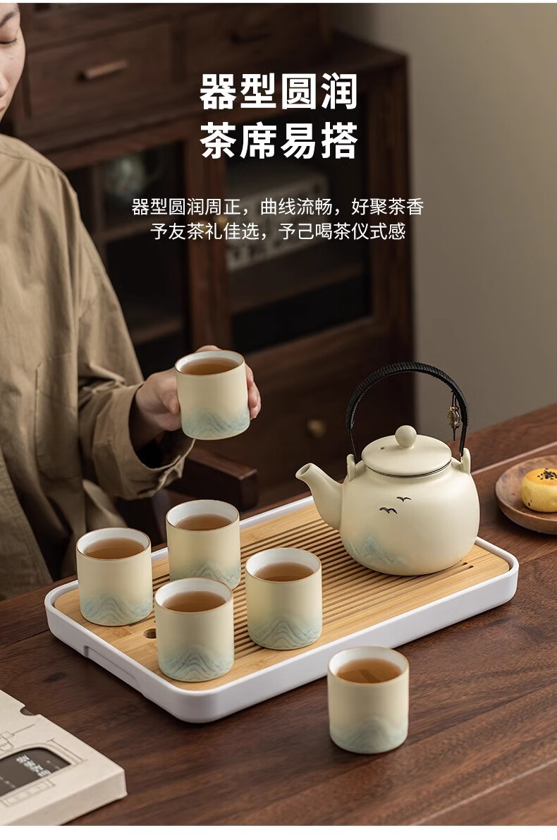 Jinpan Ceramic Kung Fu Tea Set Chinese-style large-capacity lifting beam household high-end teacup tea tray complete set teapot tea set one pot six cups + tea tray