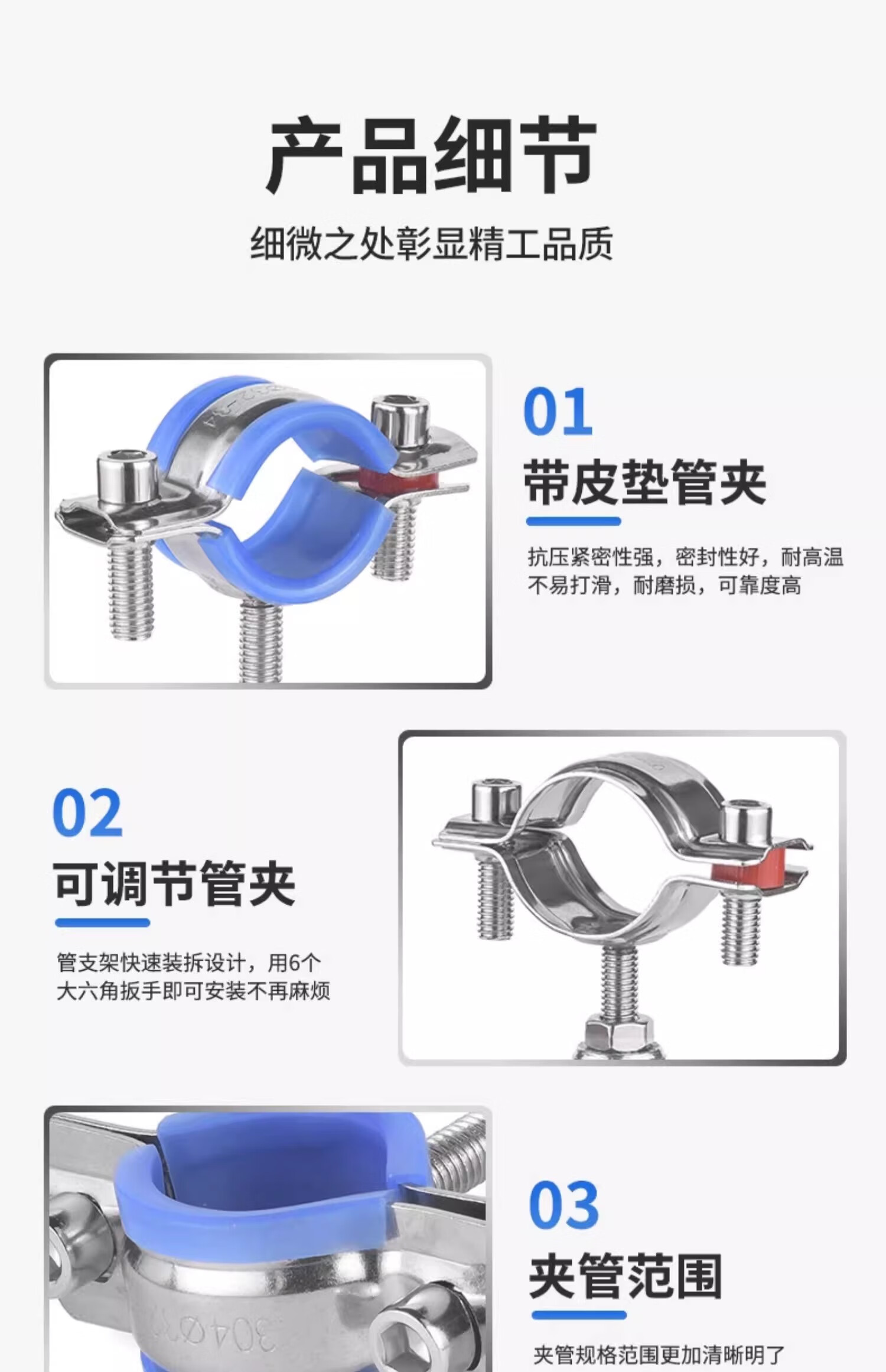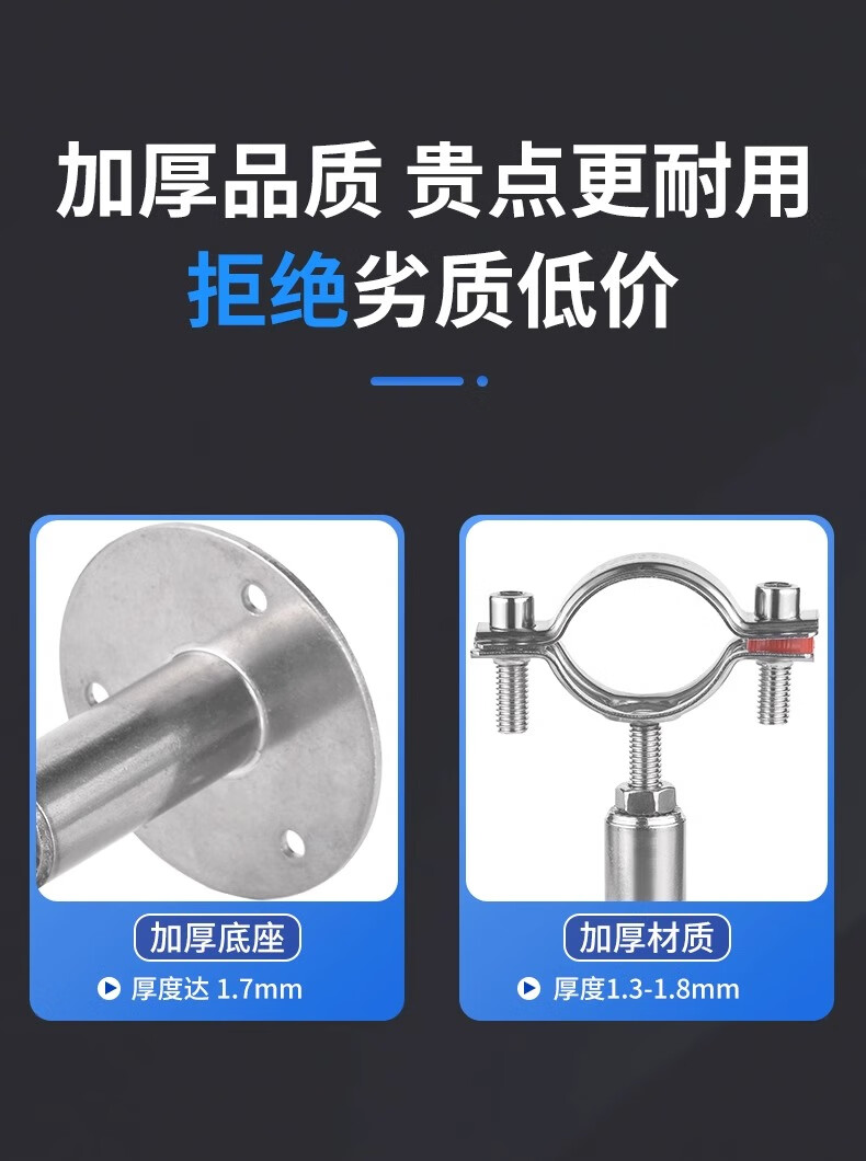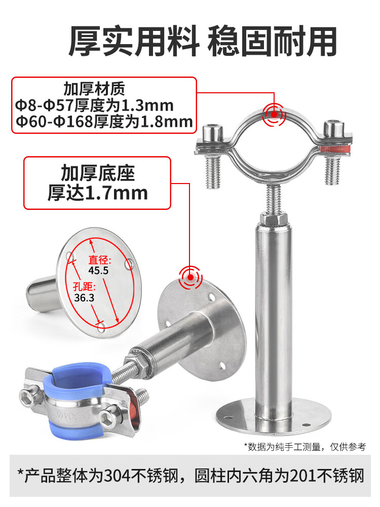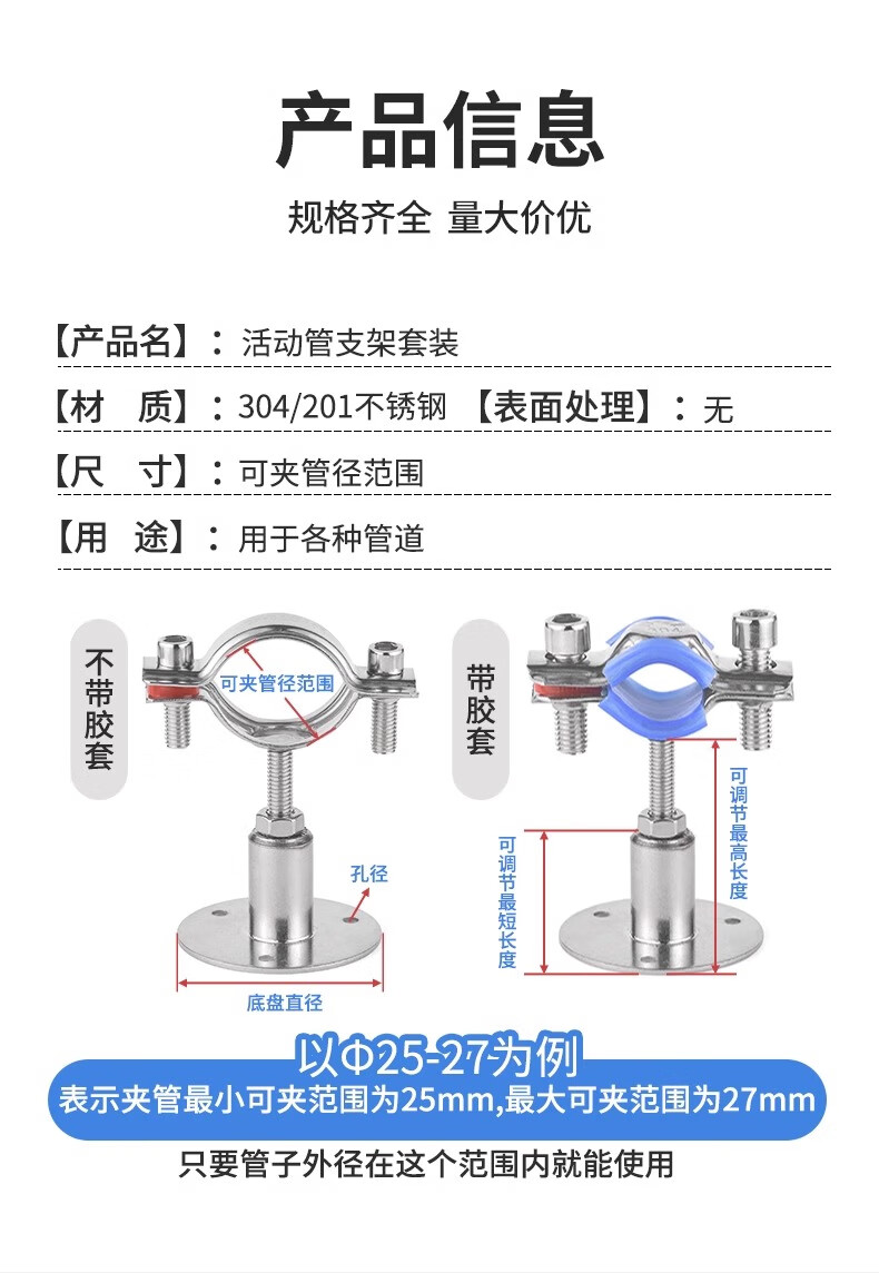 Jinggong (JINGGONG) 304 stainless steel pipe bracket gas pipe clamp water pipe fixed bracket adjustable pipe clamp hoop pipe buckle (25-27) 50-100mm adjustment