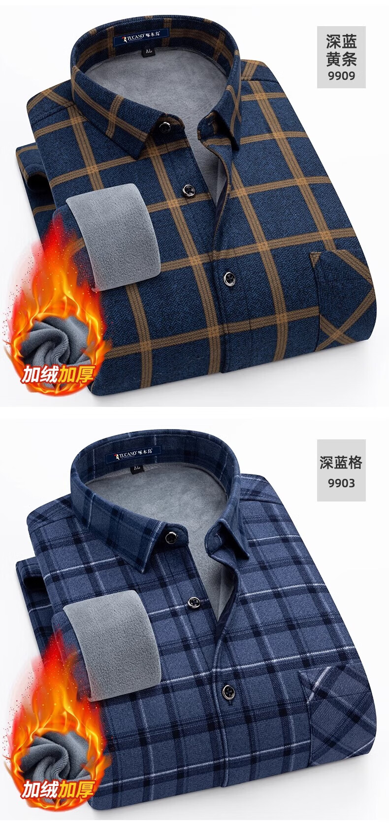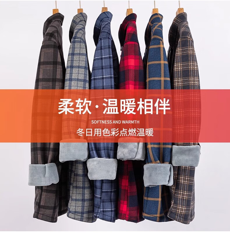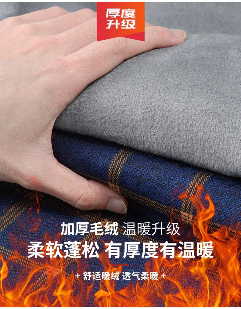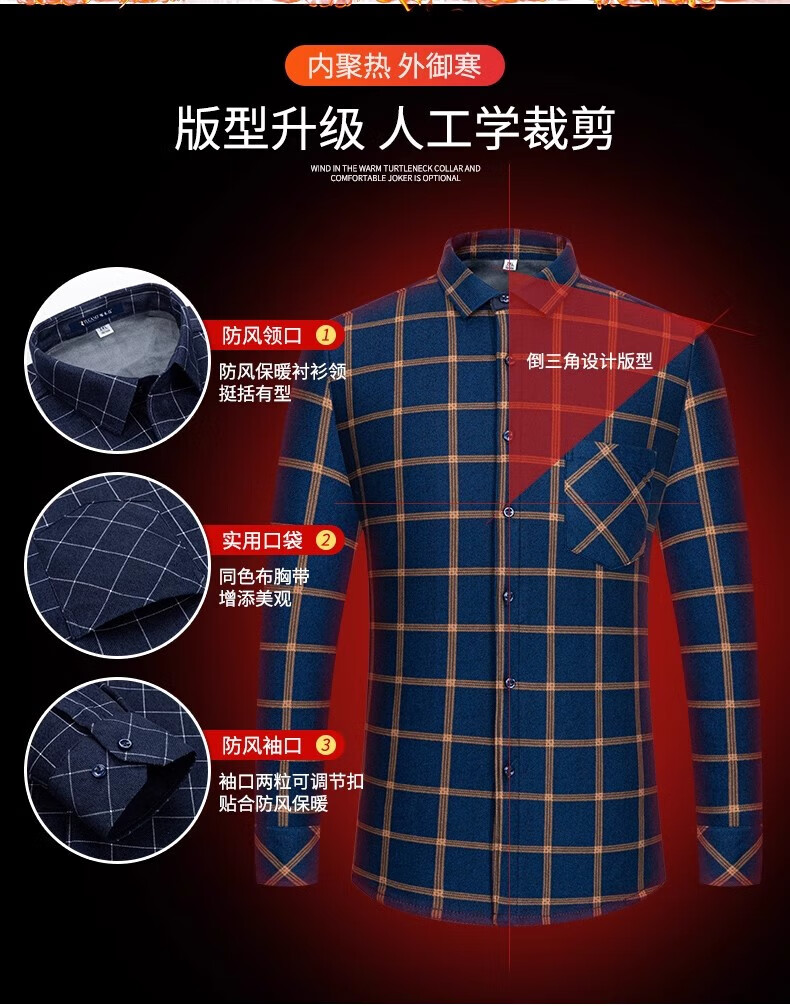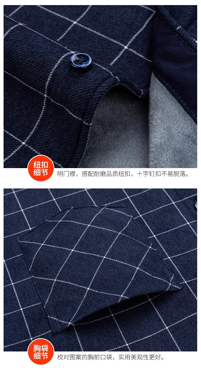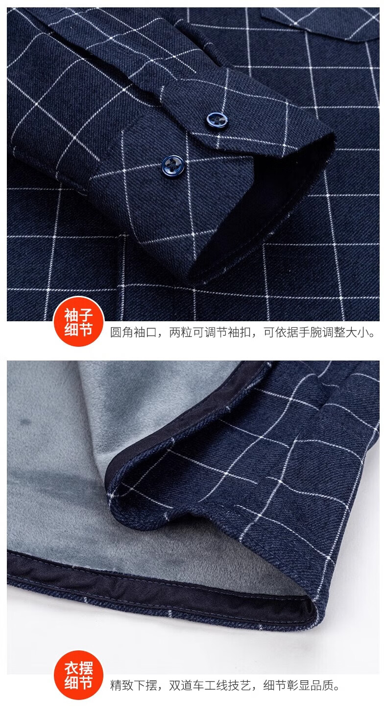 Woodpecker Warm Long Sleeve Plaid Shirt Men's 2025 Autumn and Winter Plus Velvet Thickened Casual Middle-aged and Elderly Dad Jacket 1XM21/9909 Dark Blue Yellow Stripe XL