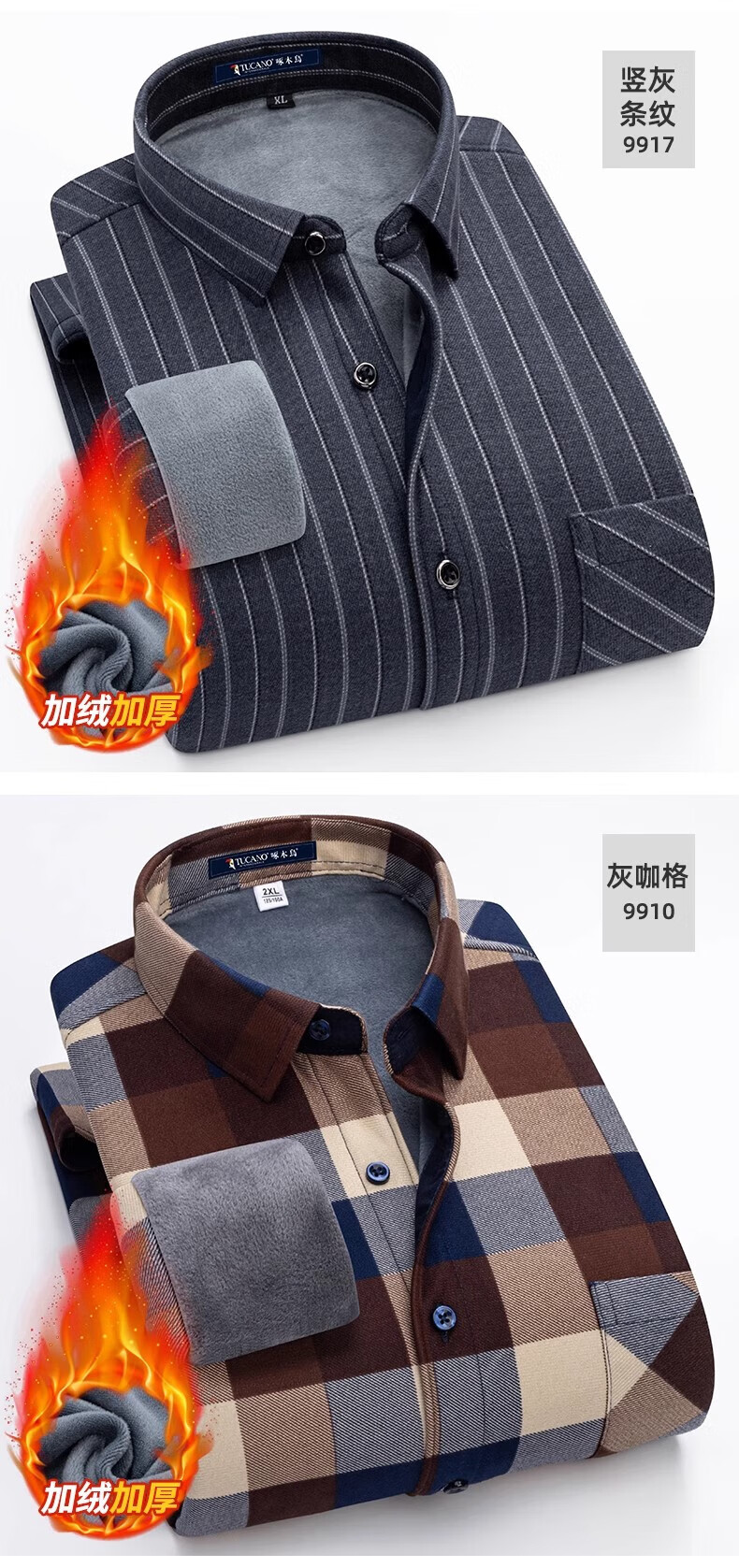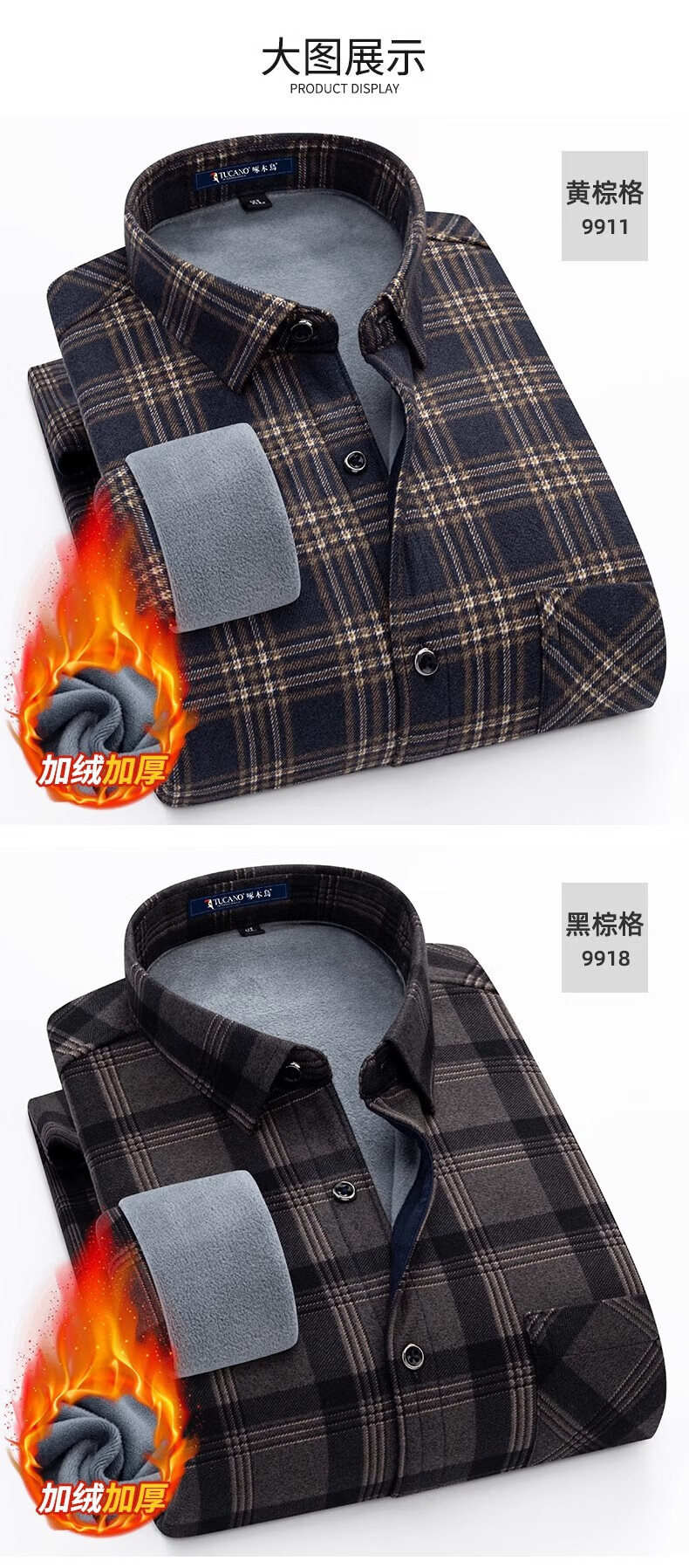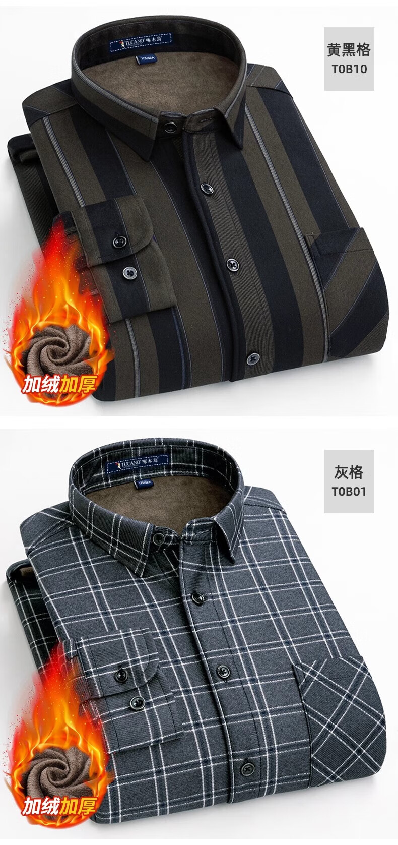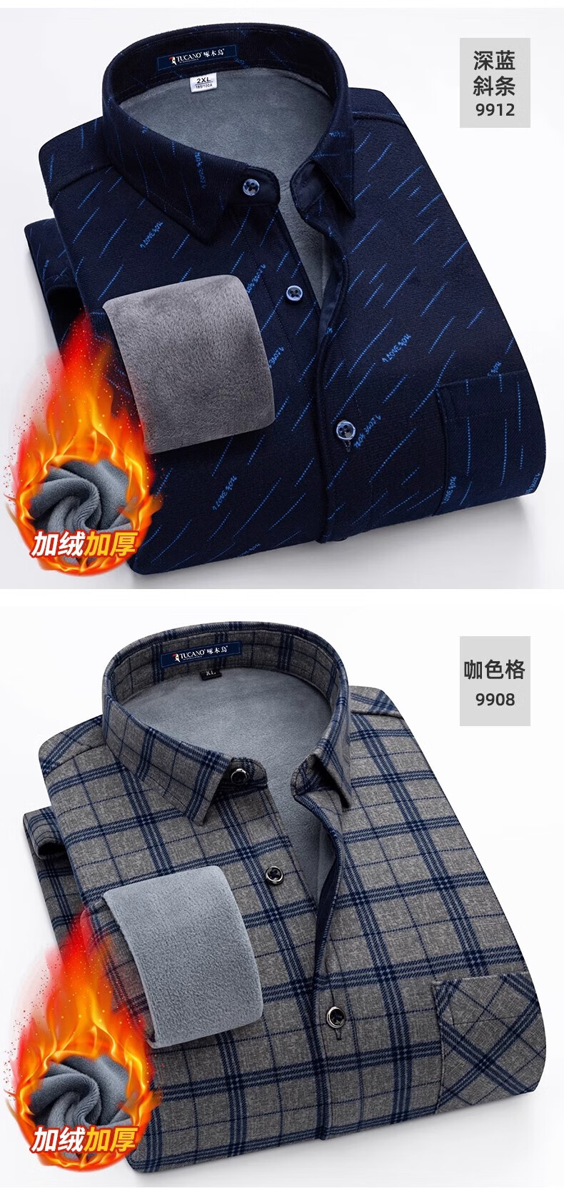 Woodpecker Warm Long Sleeve Plaid Shirt Men's 2025 Autumn and Winter Plus Velvet Thickened Casual Middle-aged and Elderly Dad Jacket 1XM21/9909 Dark Blue Yellow Stripe XL