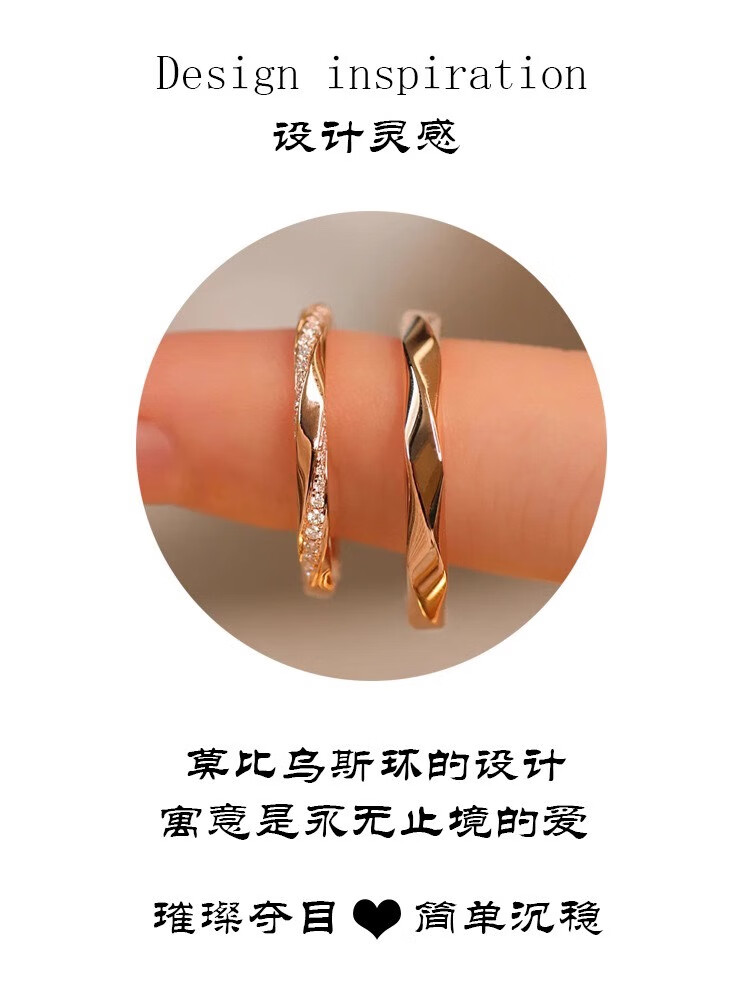 Henglijia British Couple Rings for Men and Women 18K Gold Light Luxury Niche Open Ring Rose Gold Couple Pair