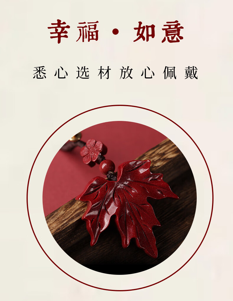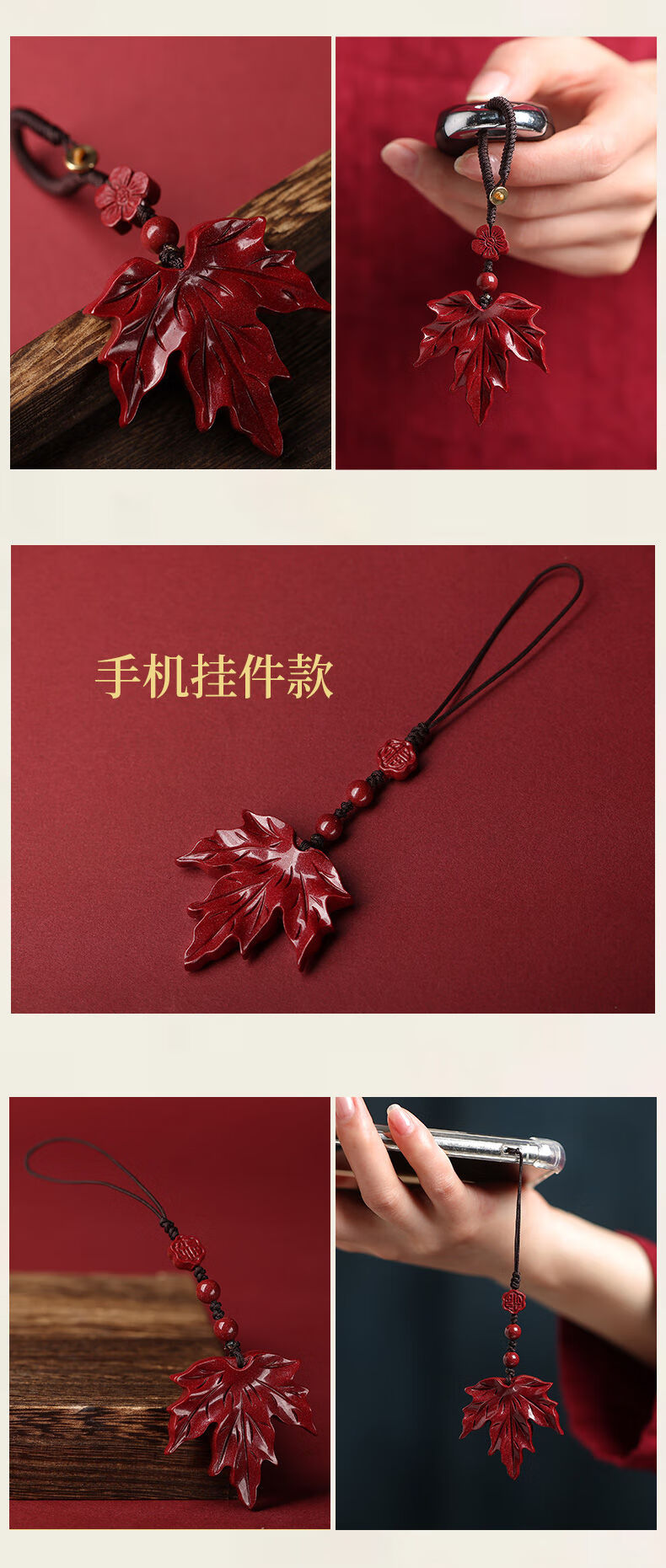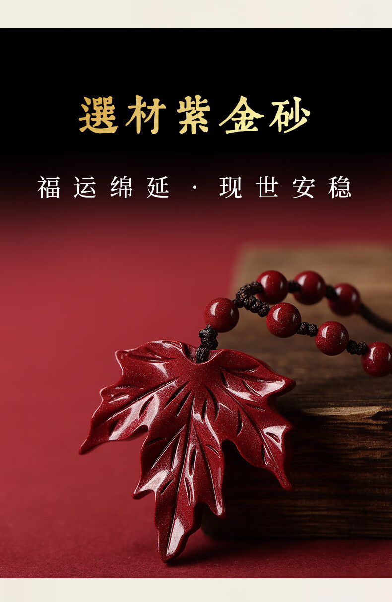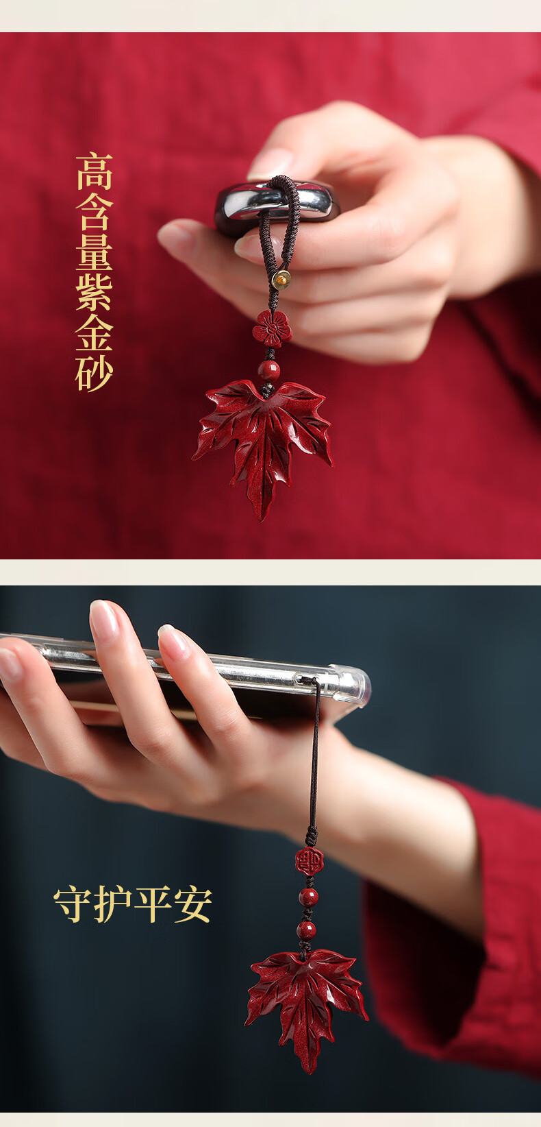 Pu Lian official cinnabar pendant golden branches, jade leaves, maple leaf necklace, key chain, mobile phone pendant, purple gold sand, get rich with one leaf, pendant rope style