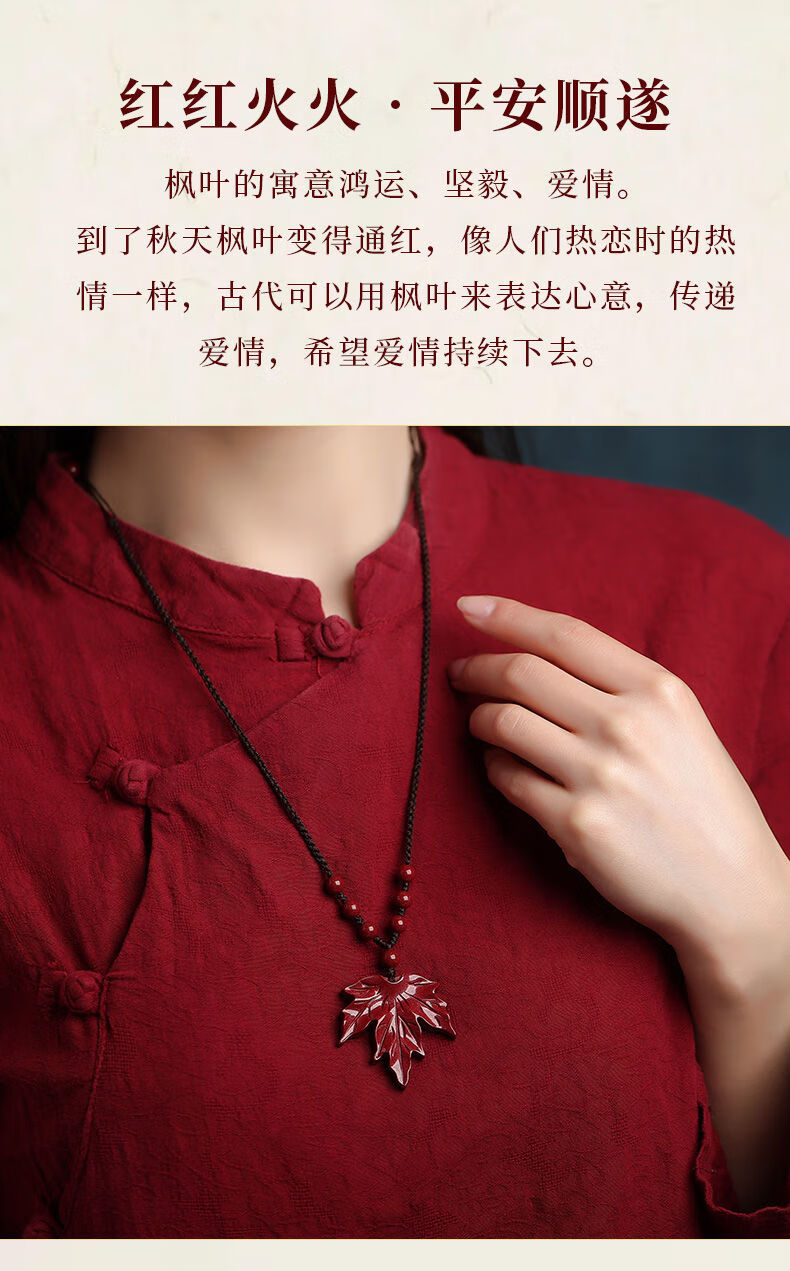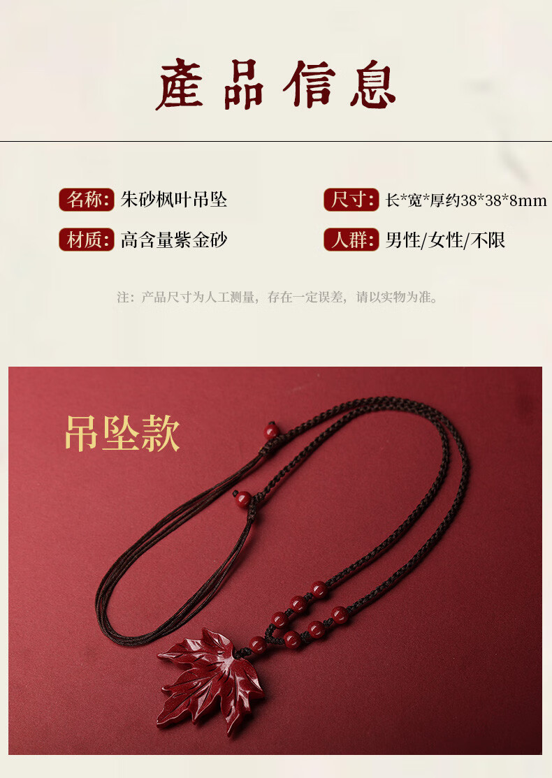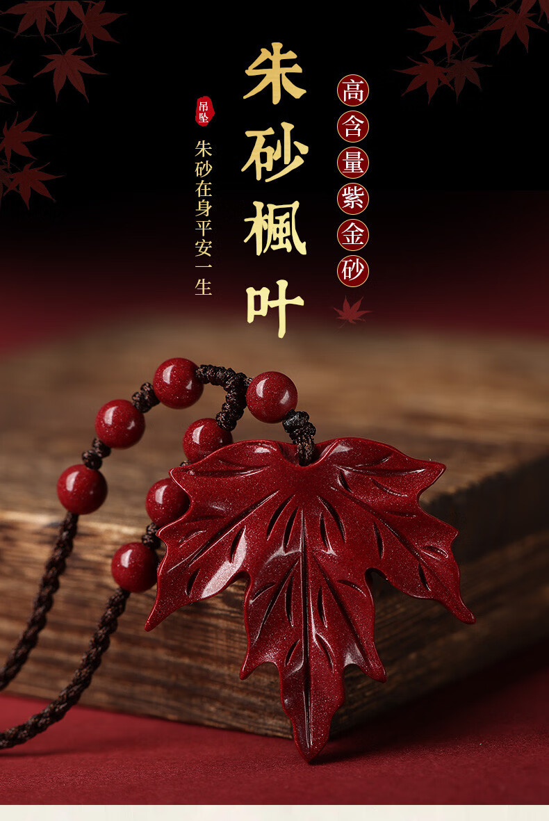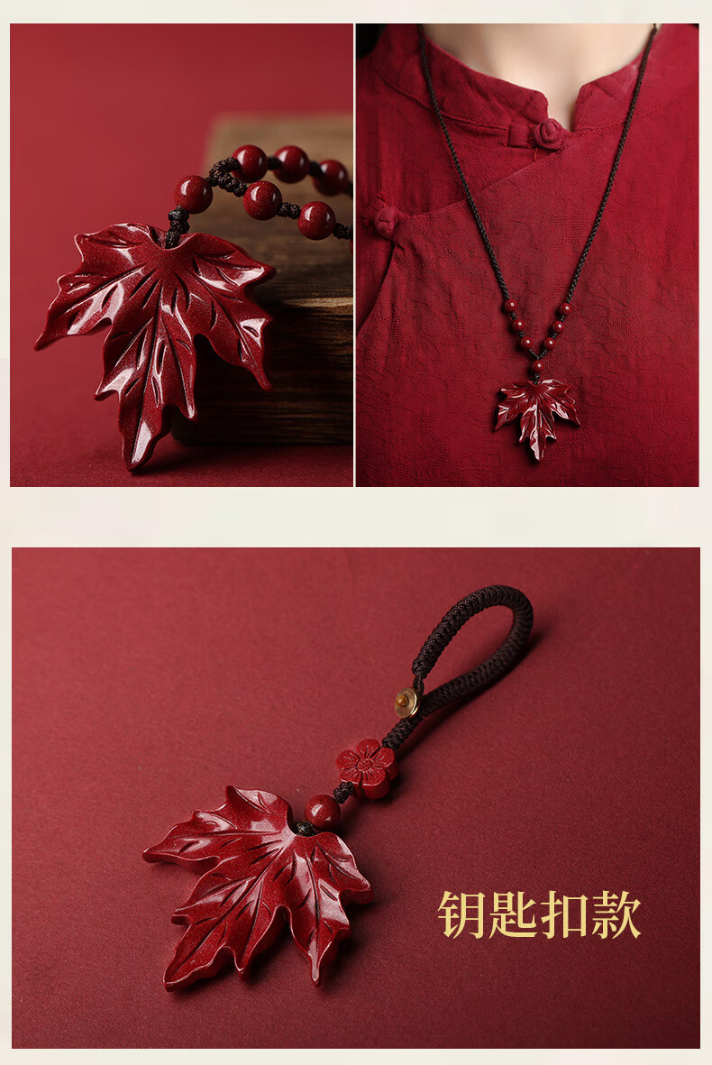 Pu Lian official cinnabar pendant golden branches, jade leaves, maple leaf necklace, key chain, mobile phone pendant, purple gold sand, get rich with one leaf, pendant rope style