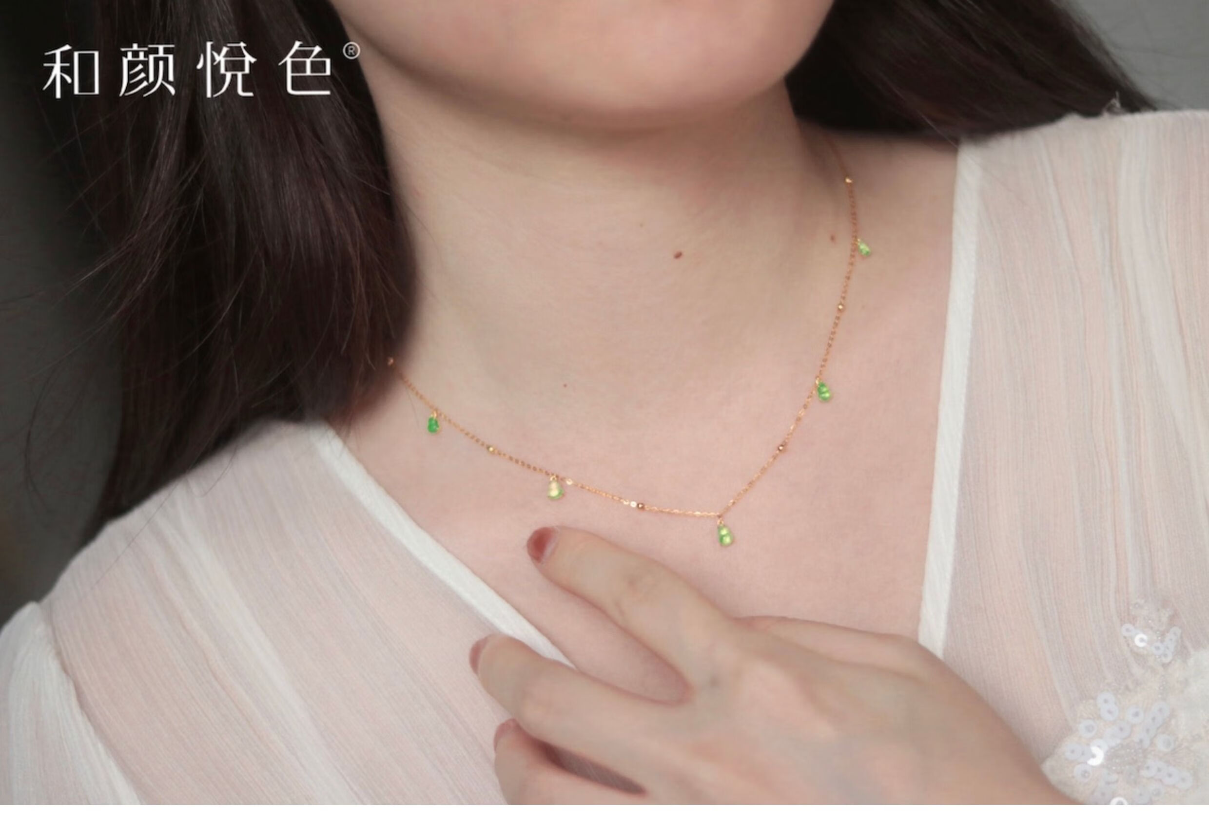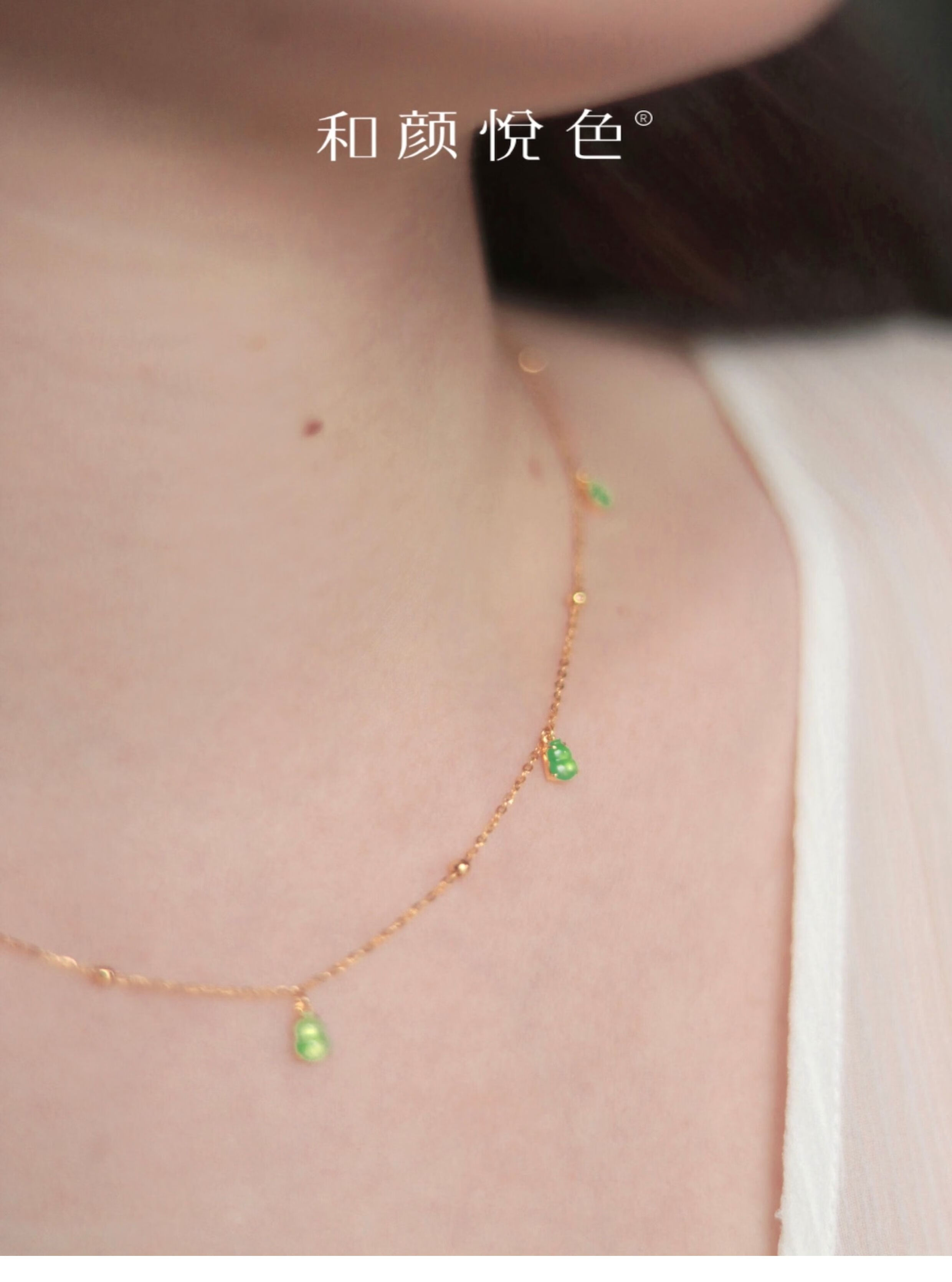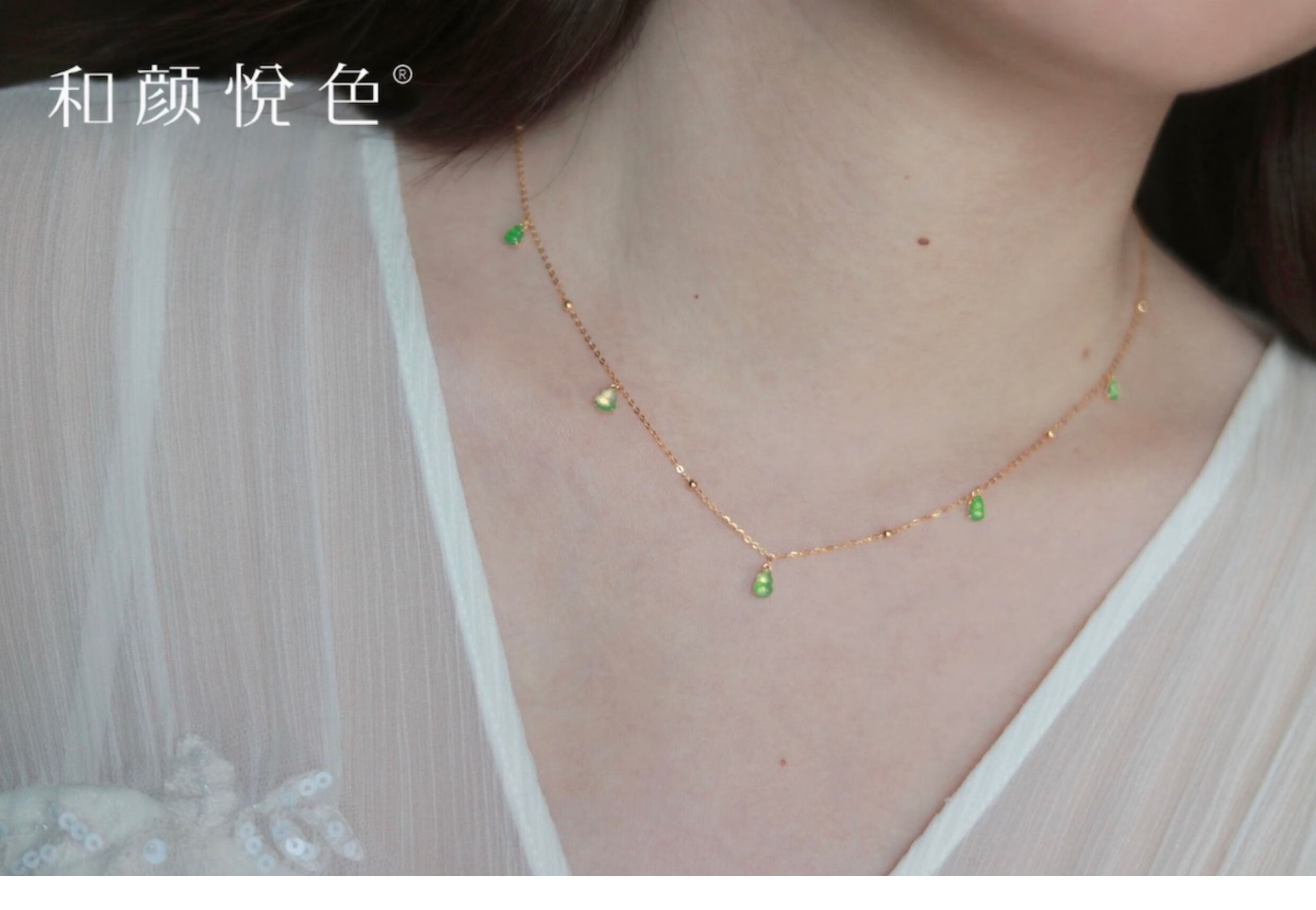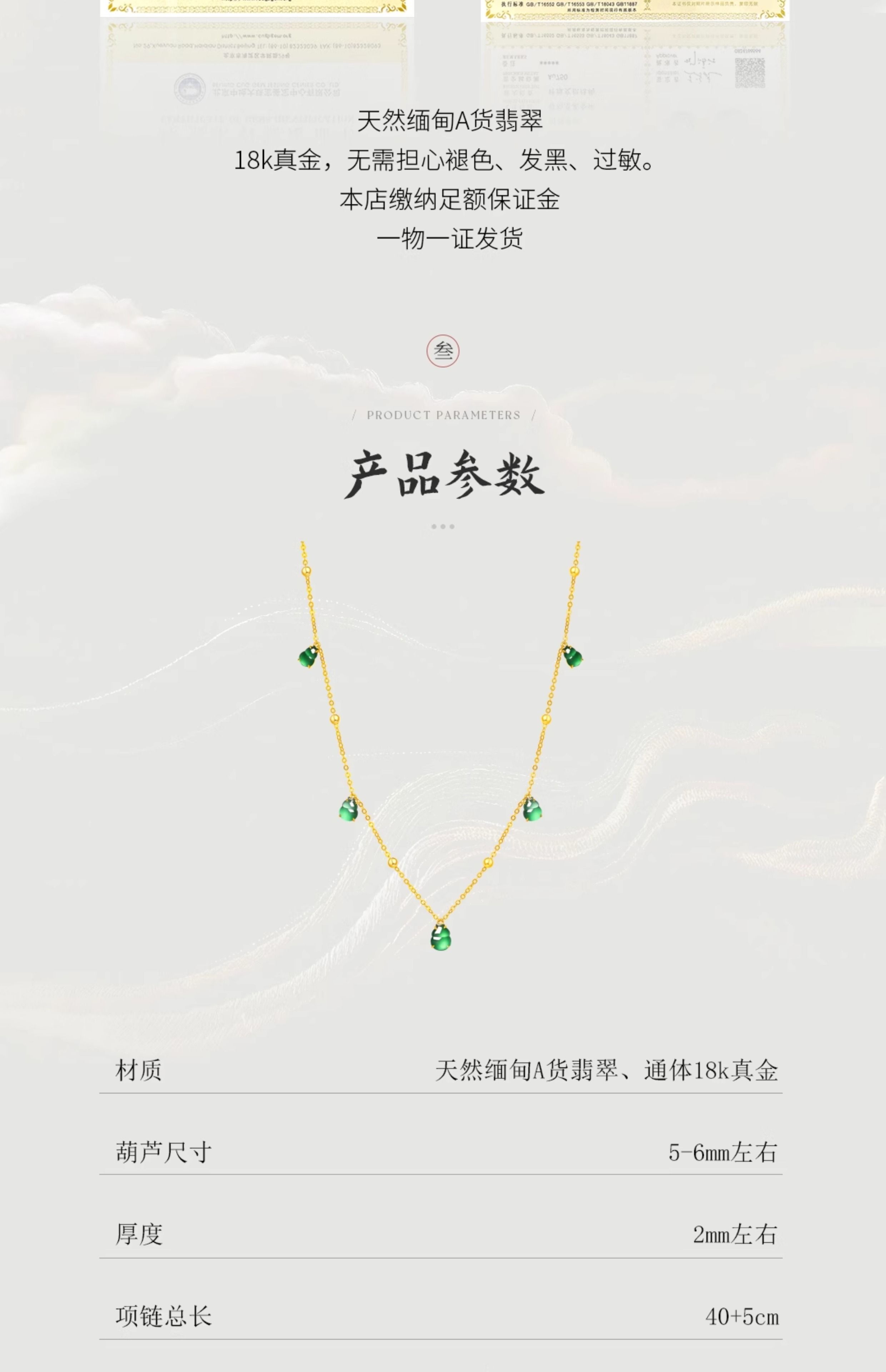 Pu Lian Wufu Necklace Natural Jade Myanmar A Goods Gourd Yang Green Ice Type 18k Gold Inlaid Jade Pendant Lock Gift Sweet Yang Green