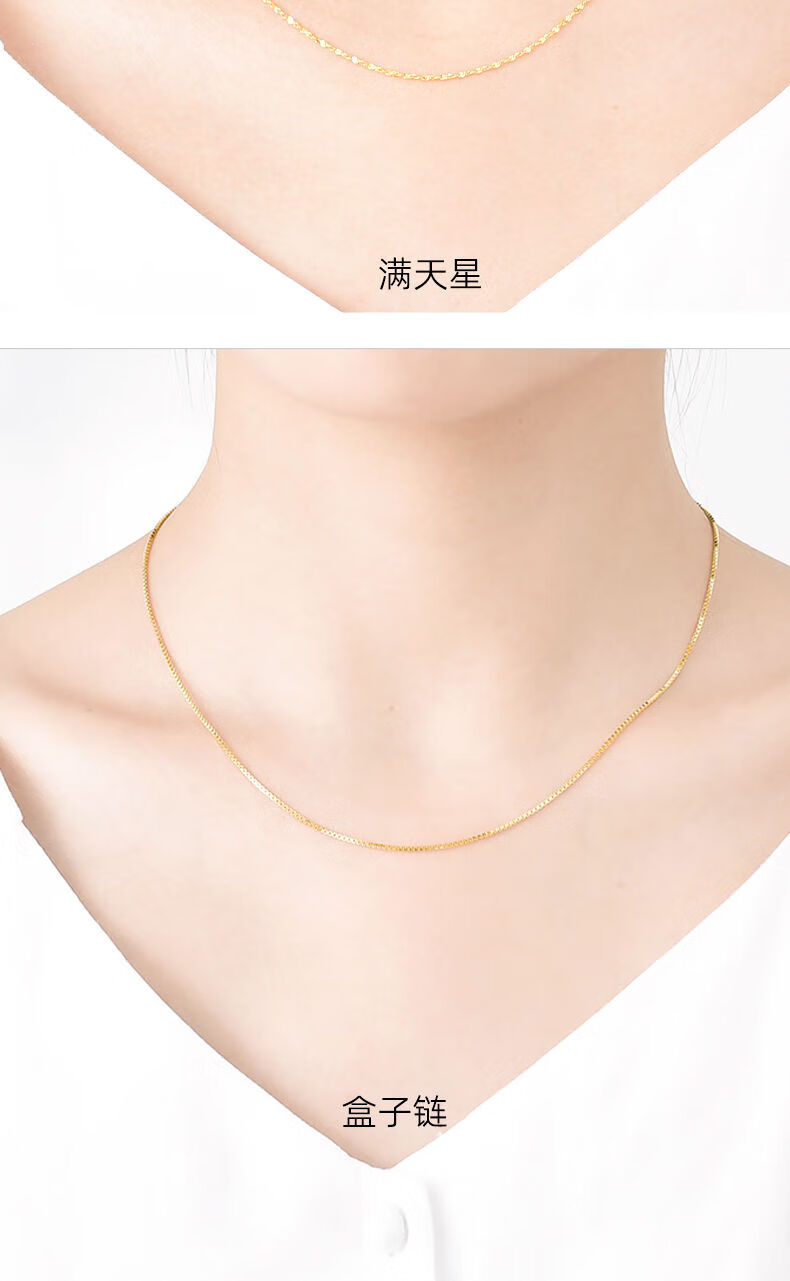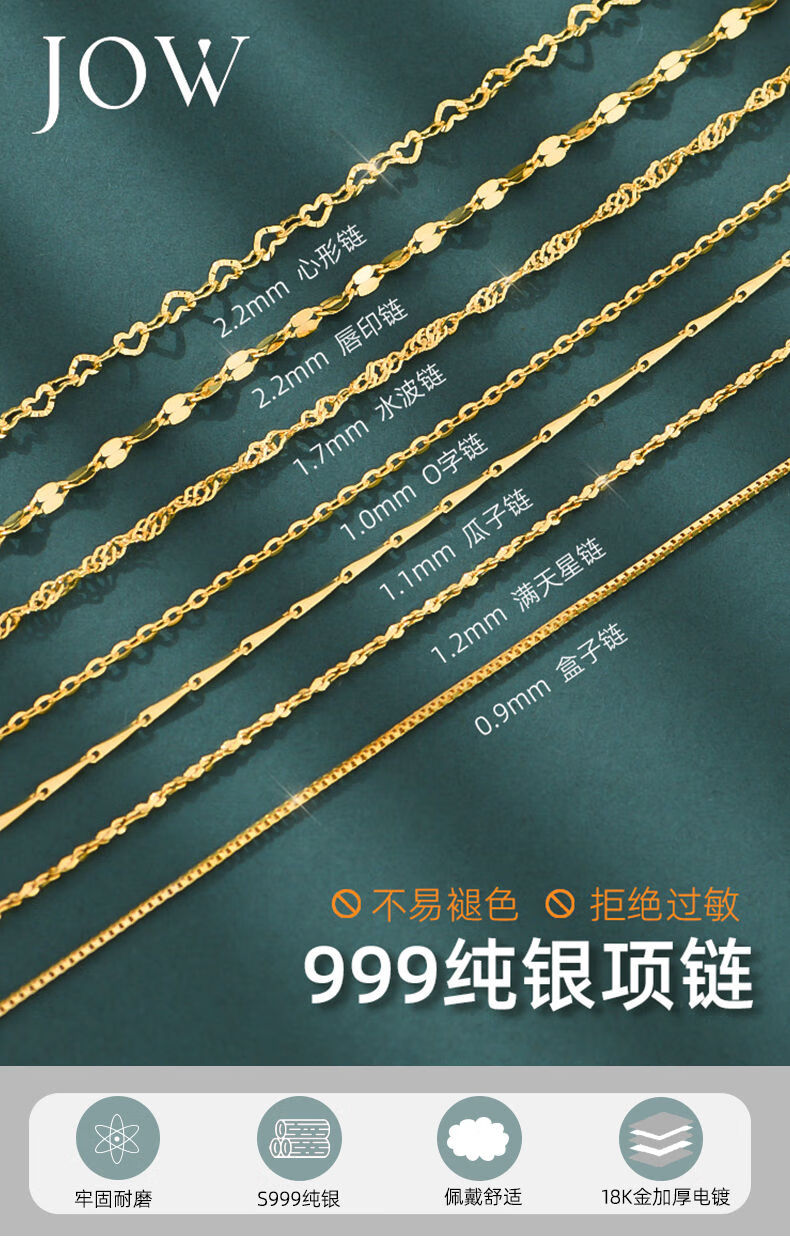 Henglijia 999 sterling silver necklace for women 18k gold plated necklace 990 plain chain without pendant 925 silver chain naked chain clavicle chain O-shaped chain 45+5CM999 silver with certificate