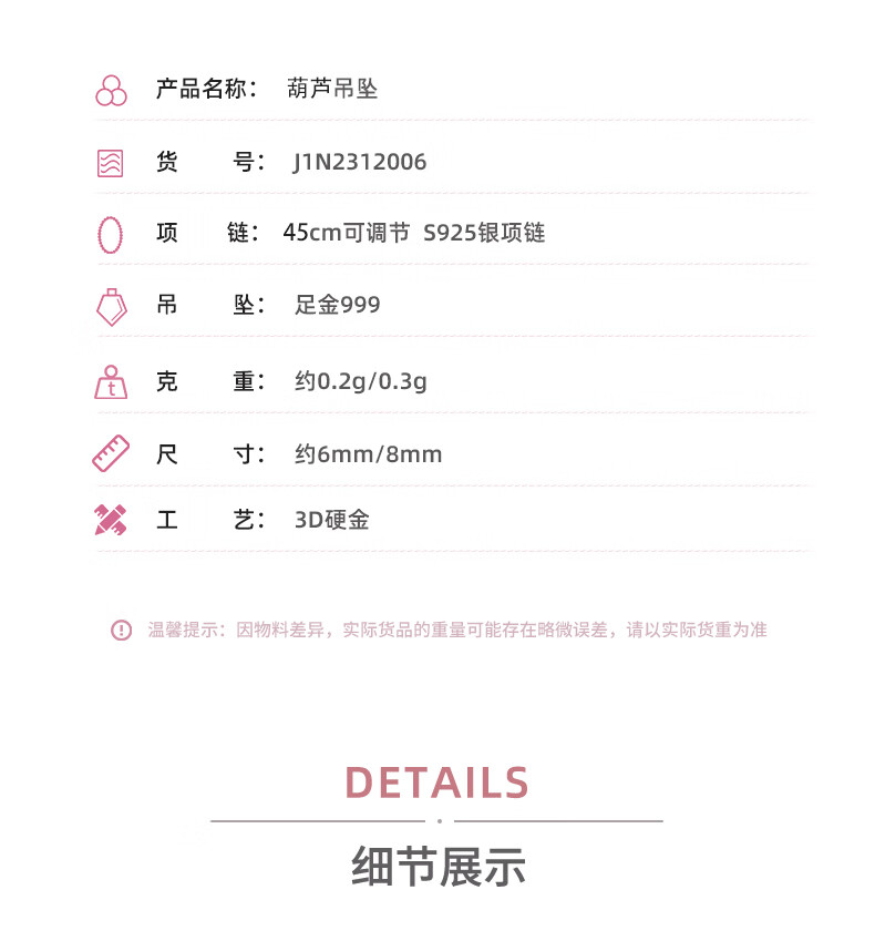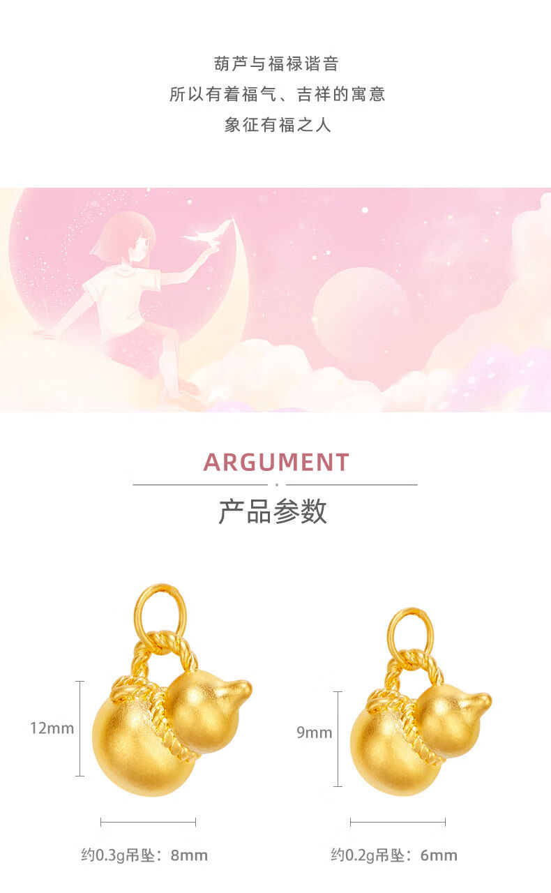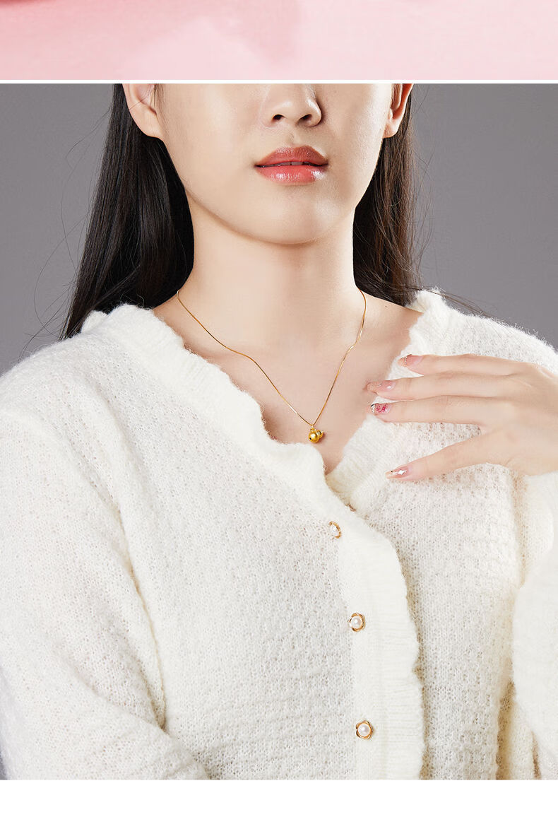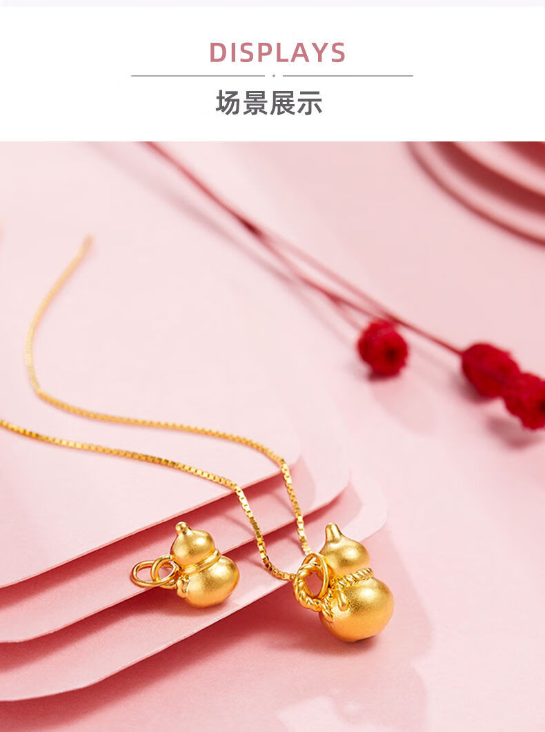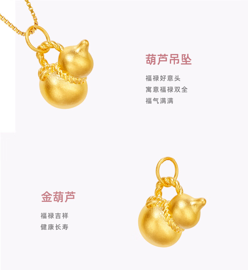Henglijia Small Gourd Gold Pendant Women's Pendant Pure Gold 999 Clavicle Necklace for Girlfriend New Year Gift Gourd Pendant About 0.3g Free S925 Silver Chain