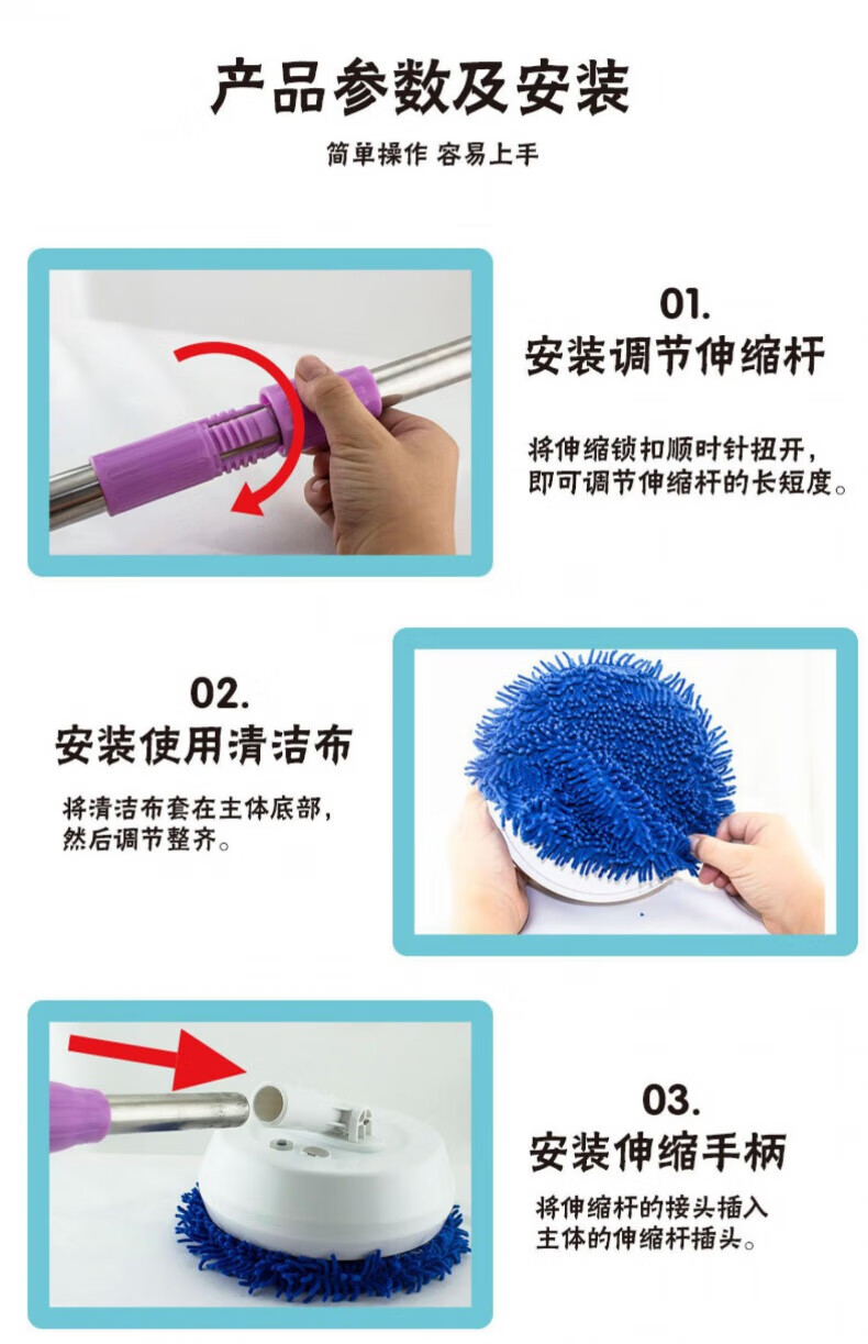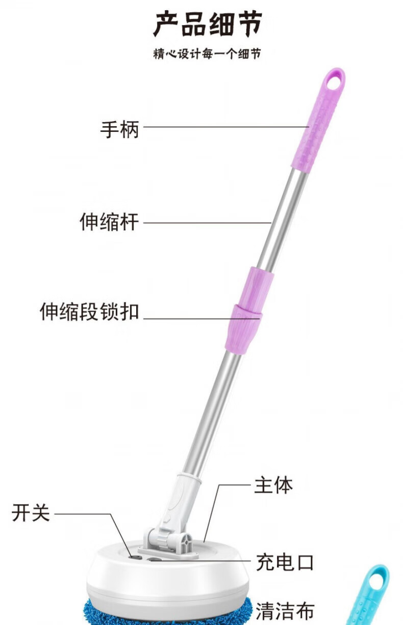 JCZS German quality electric mop wireless rotating household lazy floor wiping wall panel wiping window glass artifact cleaning machine white electric cleaning machine 6 mops