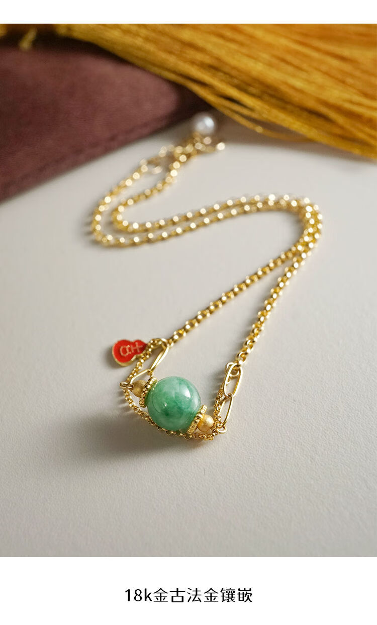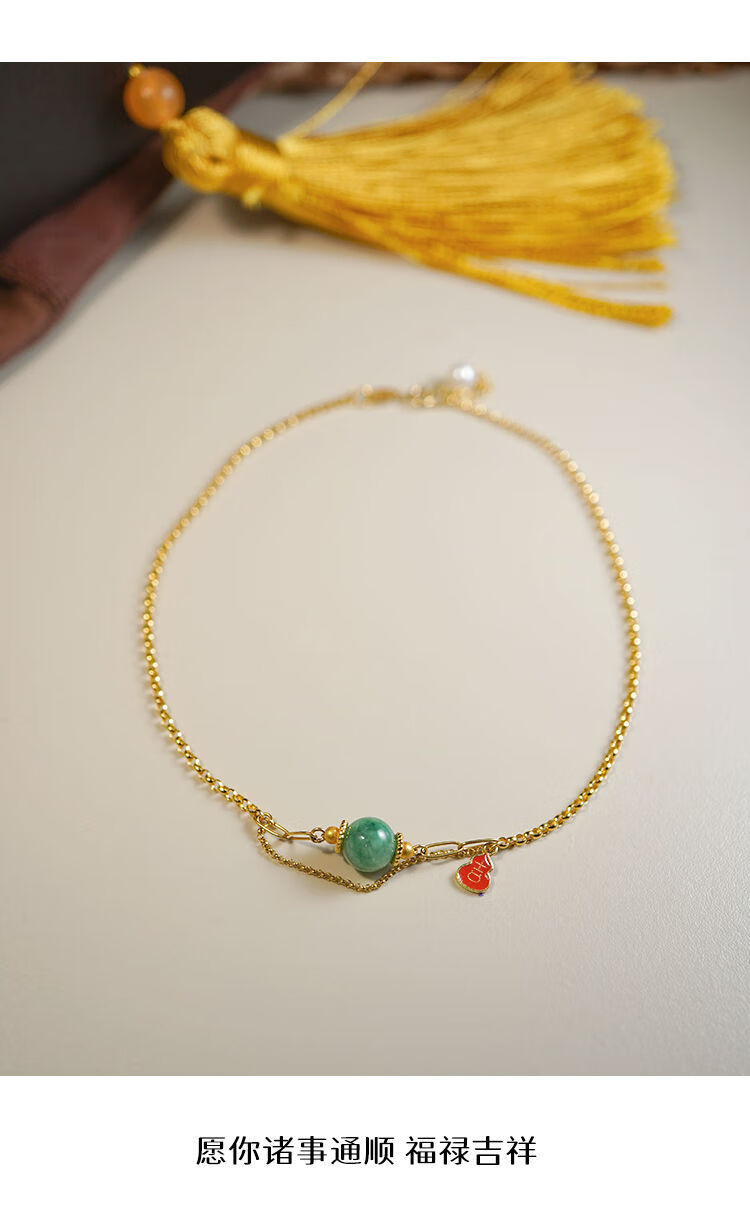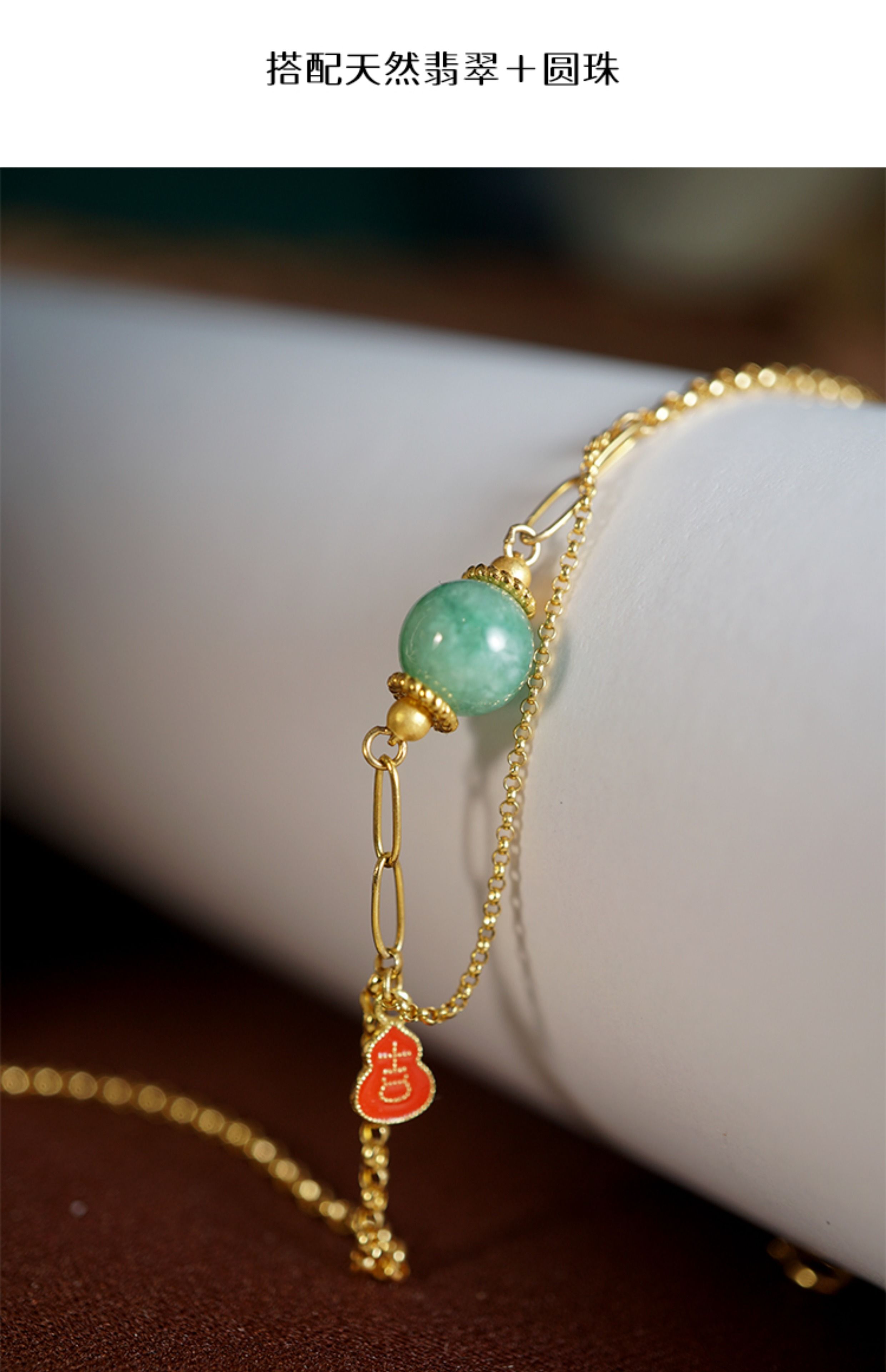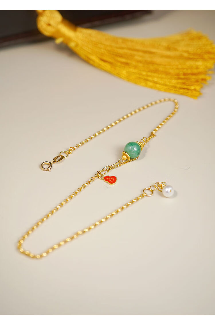 Hengli Jiafu Lu Daji 18K gold transfer beads ancient gold inlaid natural jade ball anklet bracelet pearl embellishment 22+2cm