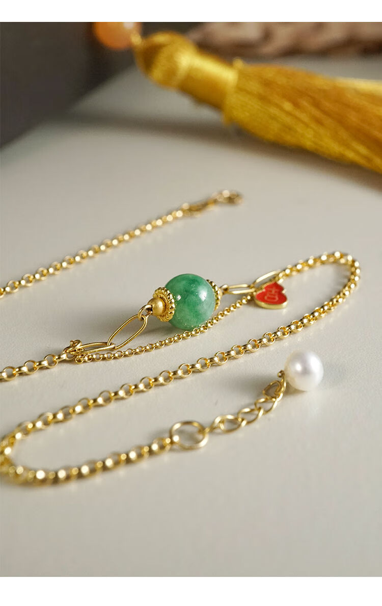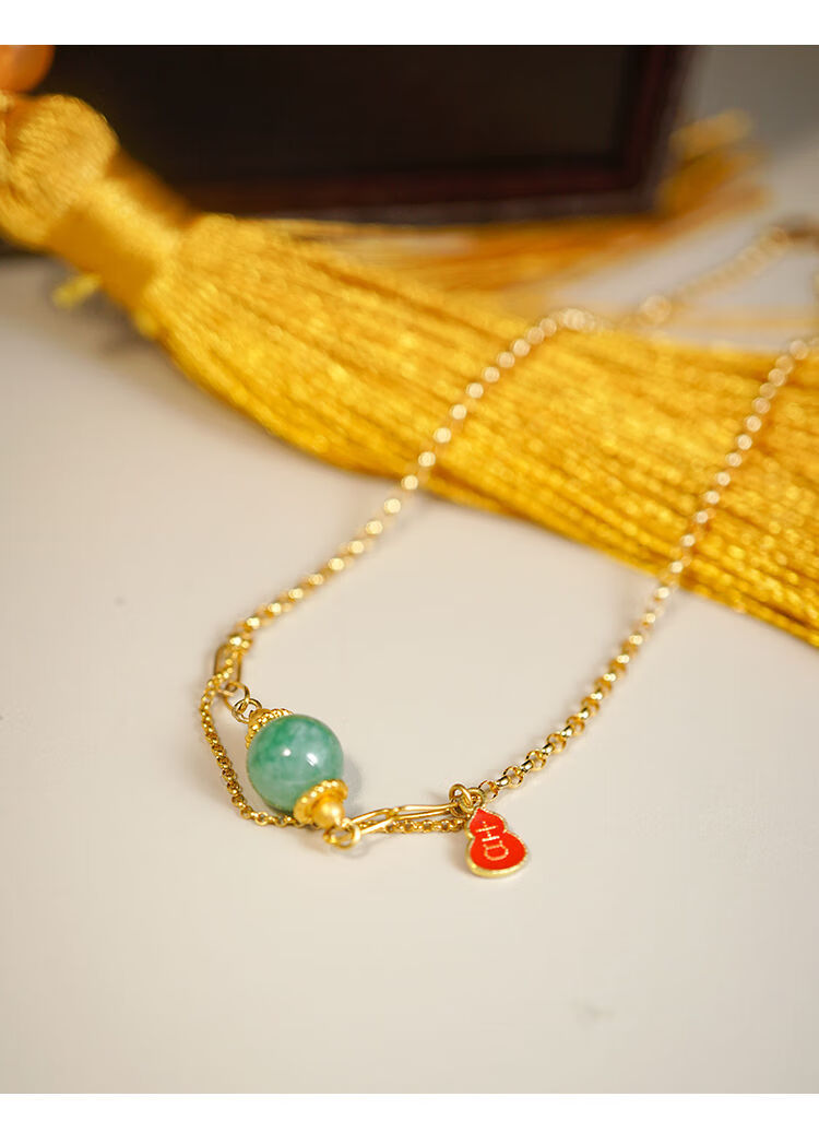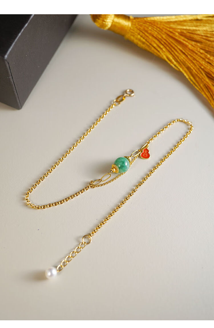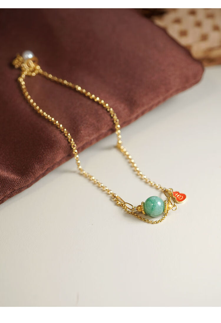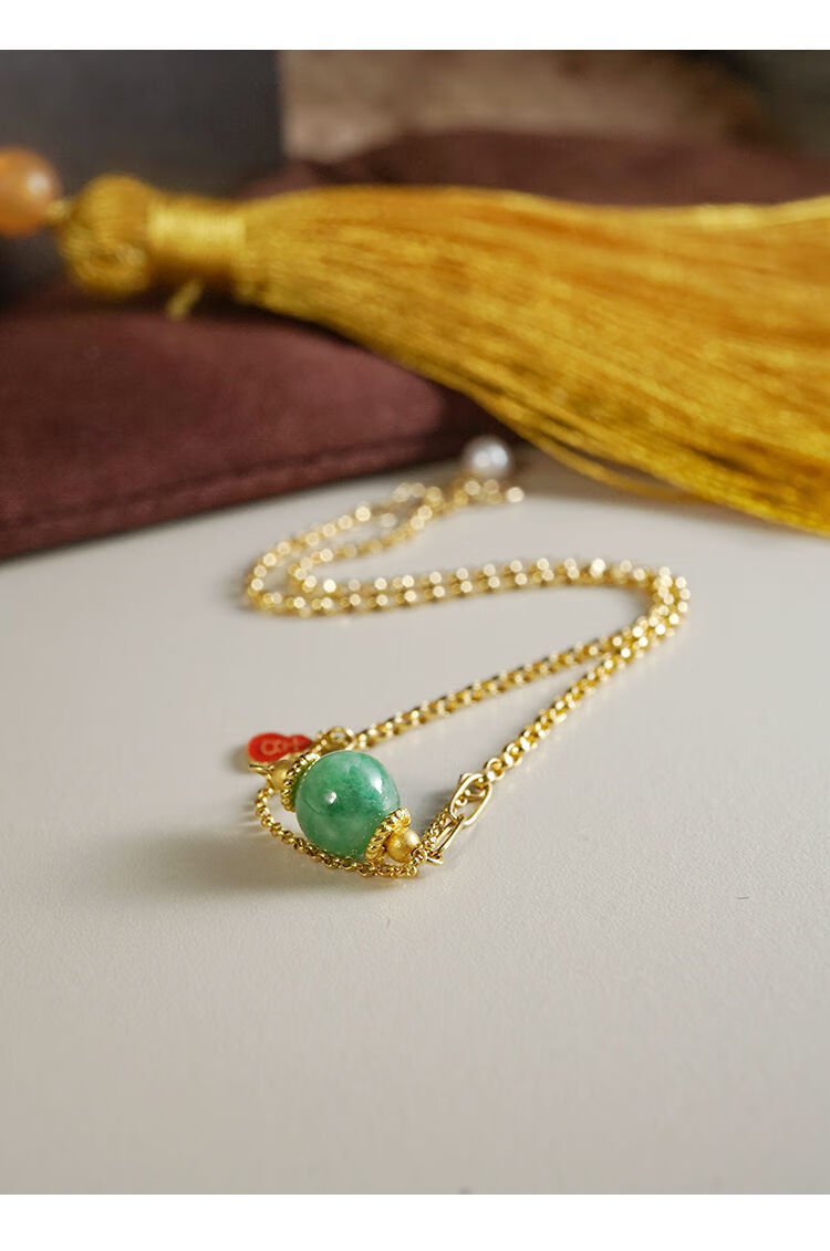 Hengli Jiafu Lu Daji 18K gold transfer beads ancient gold inlaid natural jade ball anklet bracelet pearl embellishment 22+2cm