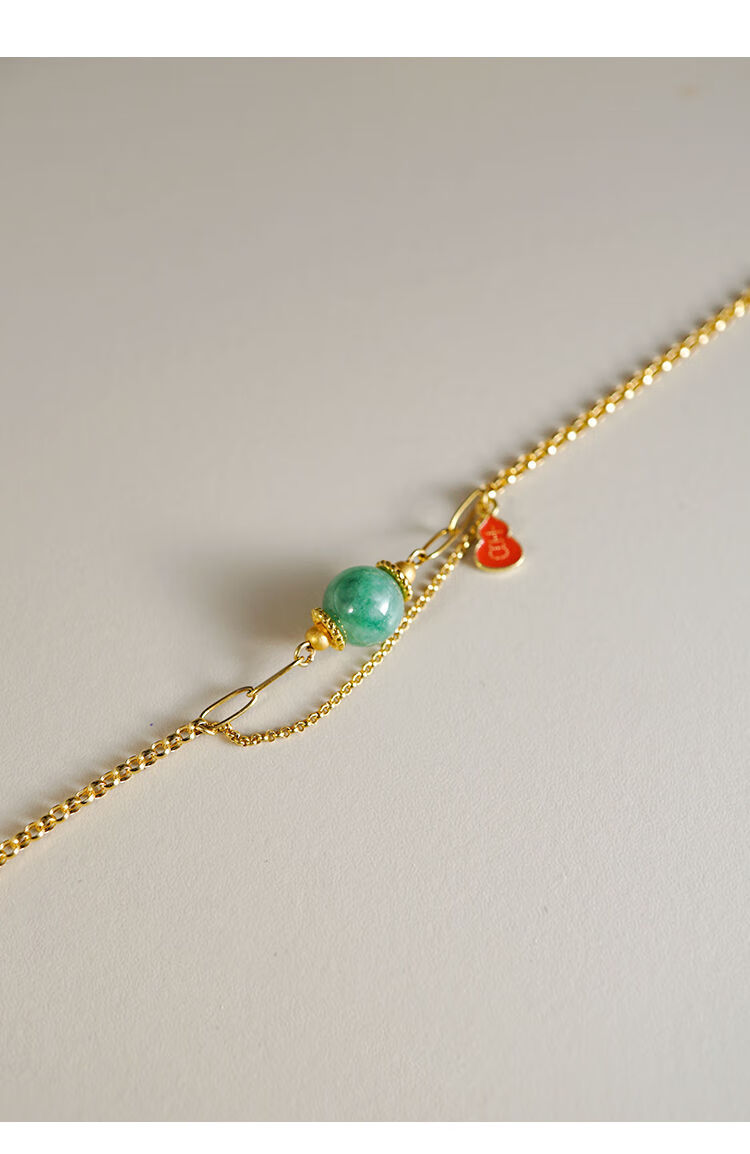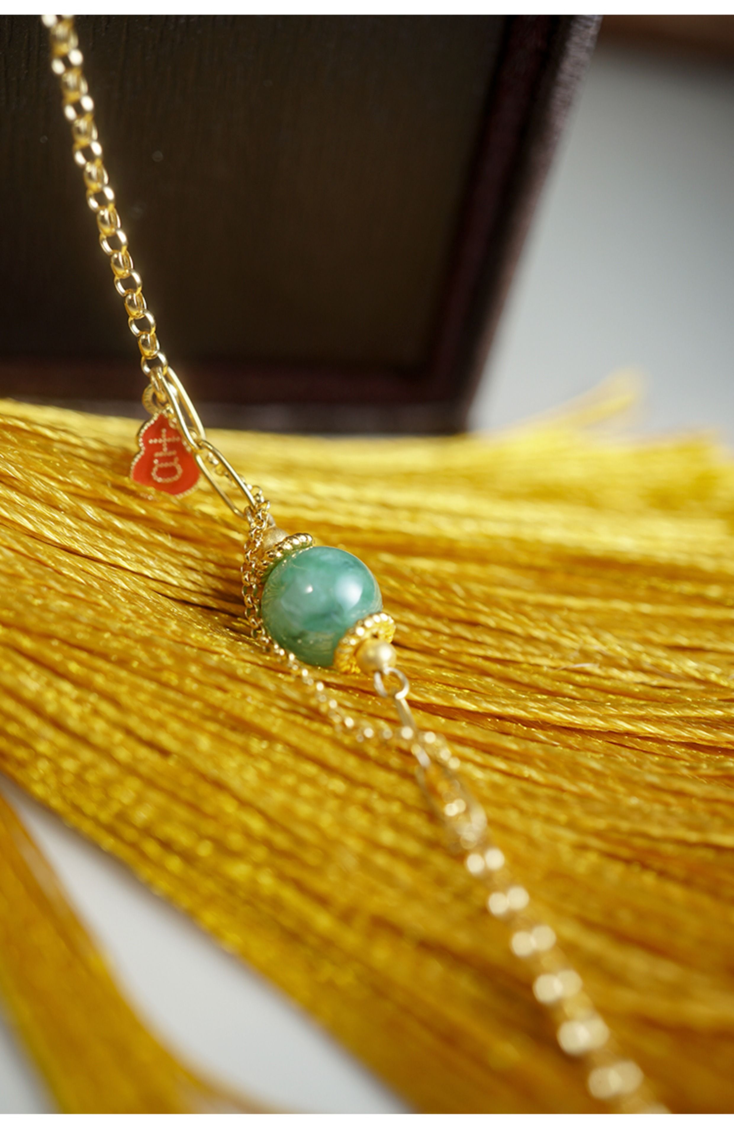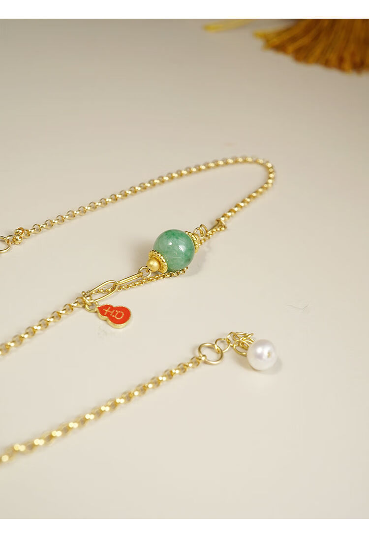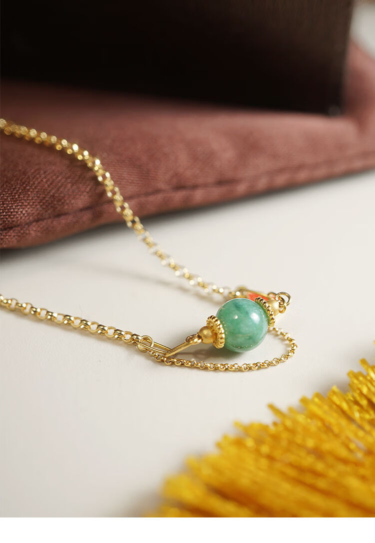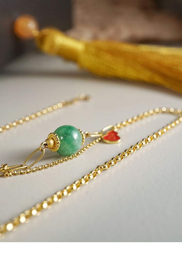 Hengli Jiafu Lu Daji 18K gold transfer beads ancient gold inlaid natural jade ball anklet bracelet pearl embellishment 22+2cm