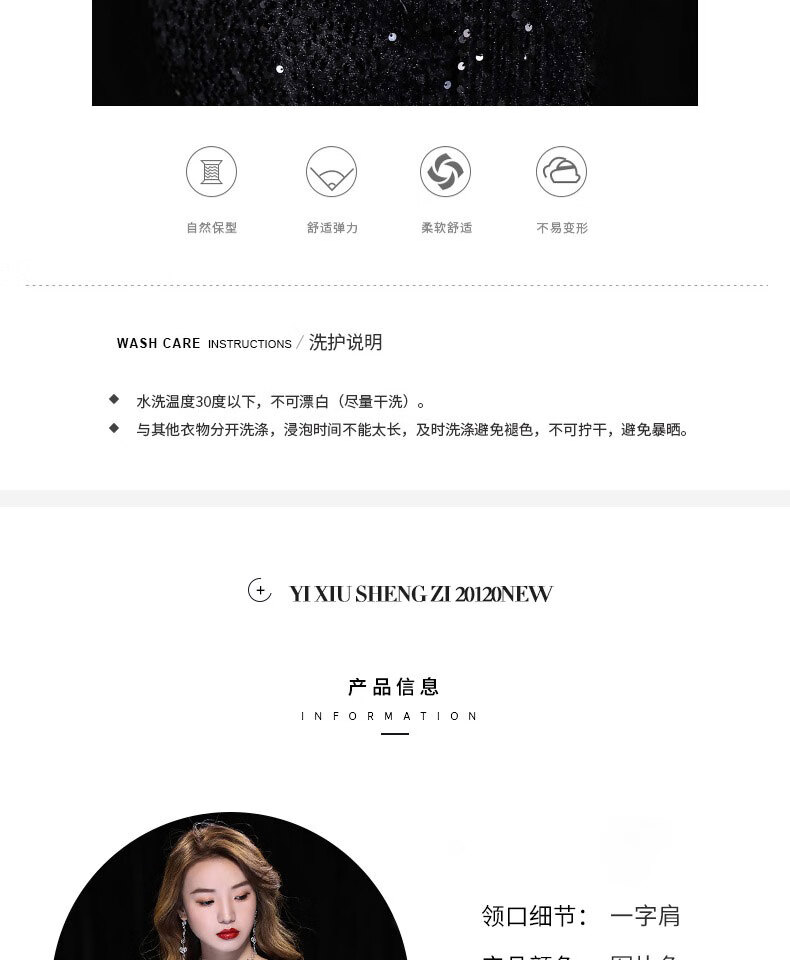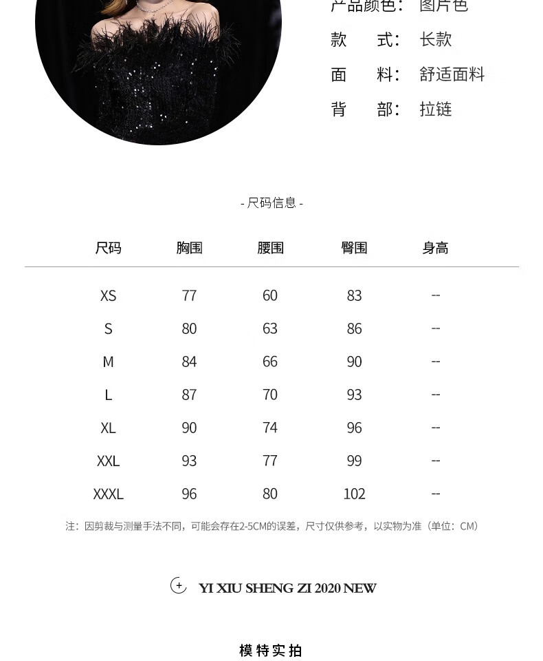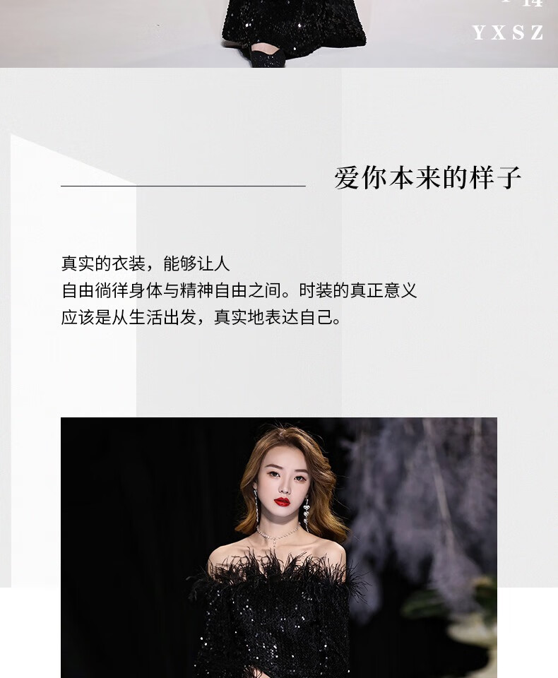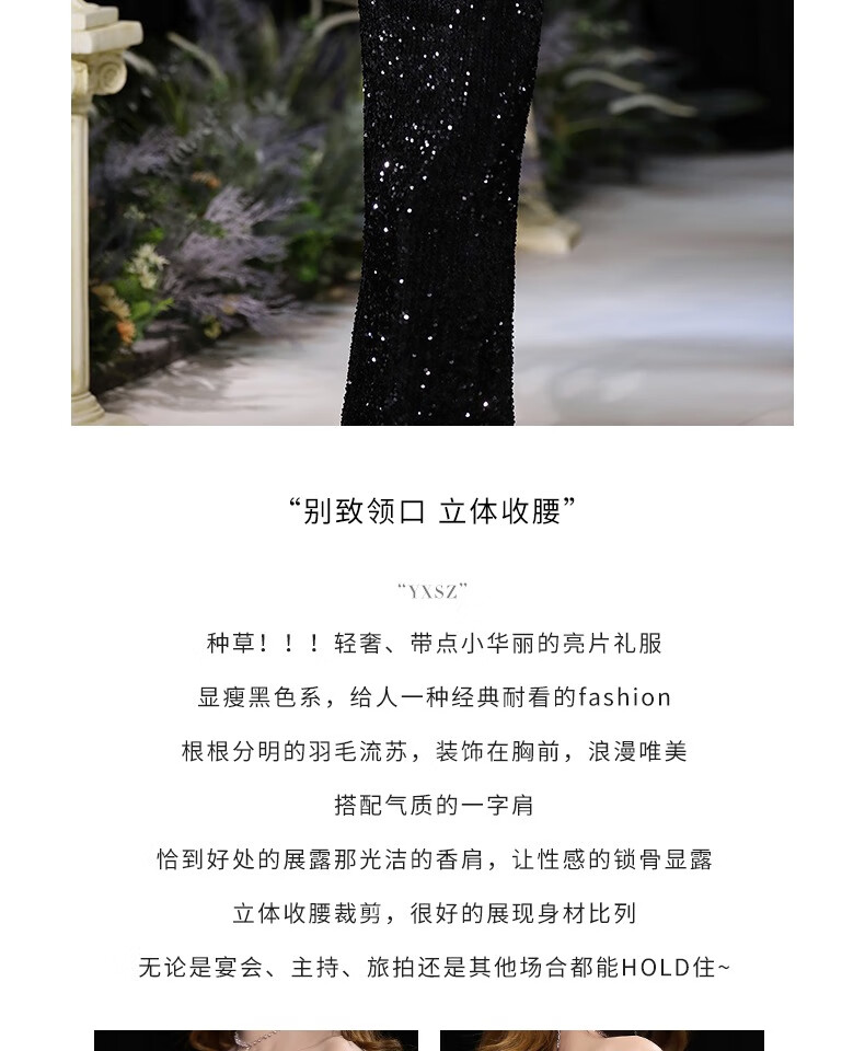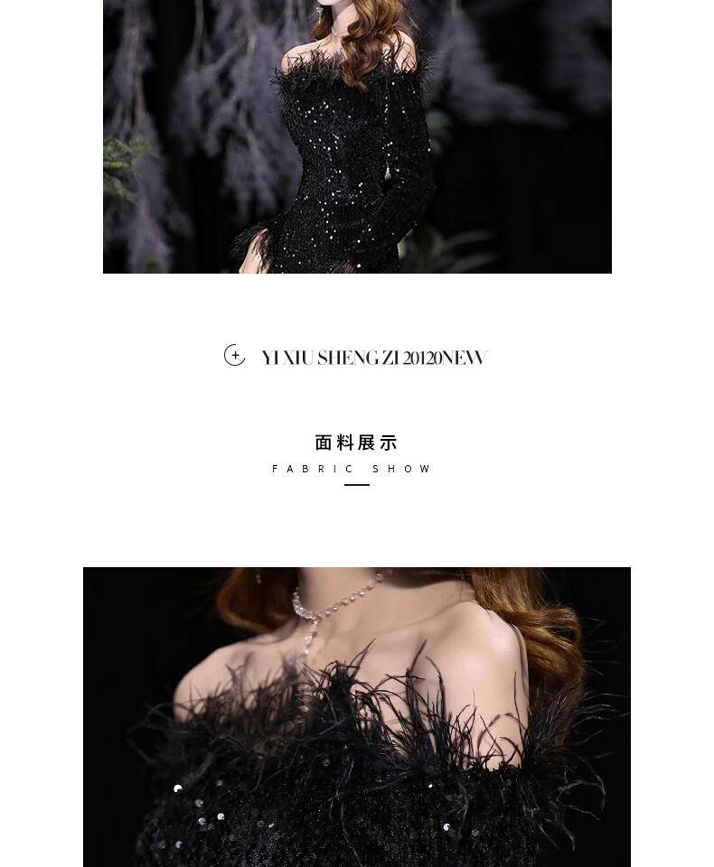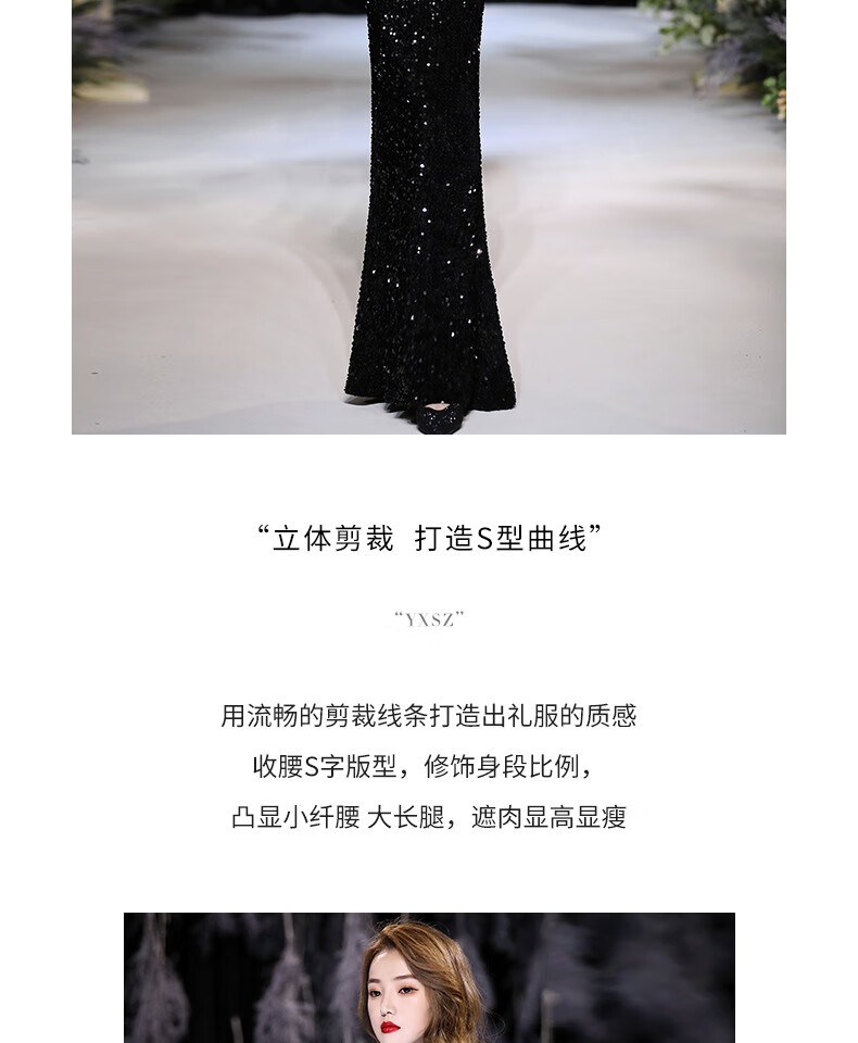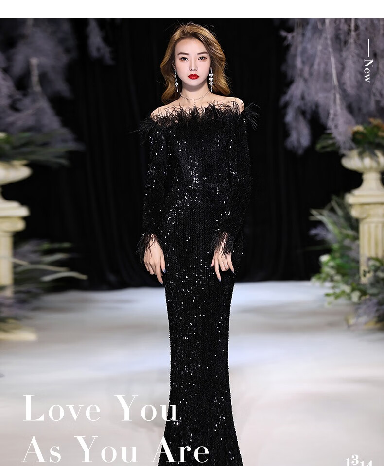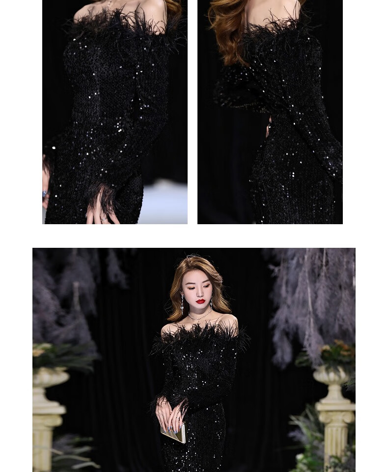 Chuangjing Yixuan Annual Meeting Dress for Women High-end Sequin Evening Dress for Women One Shoulder Sexy Long Sleeve Mermaid High-End Light Luxury Niche Black 2XL