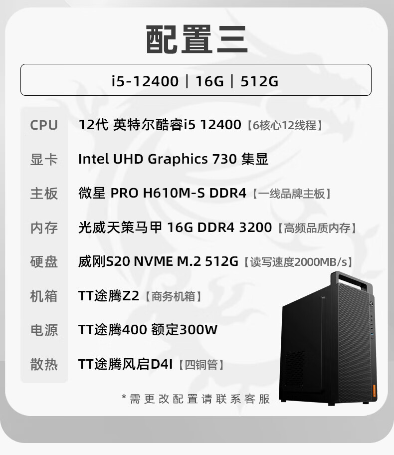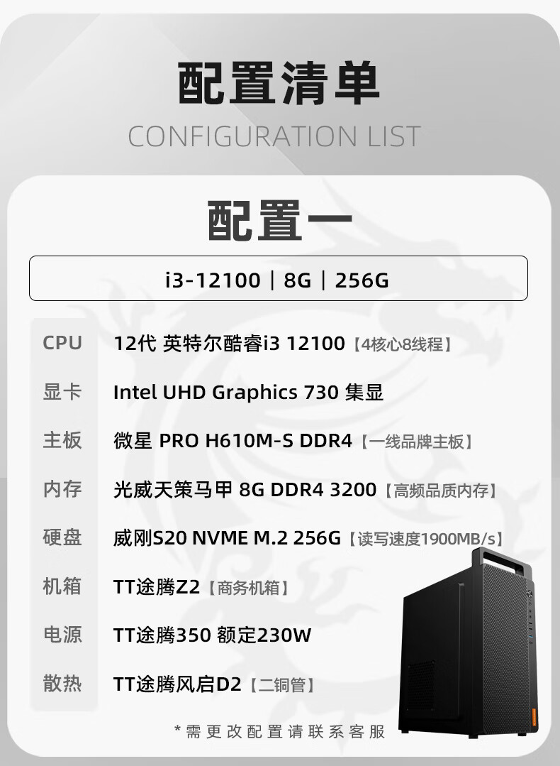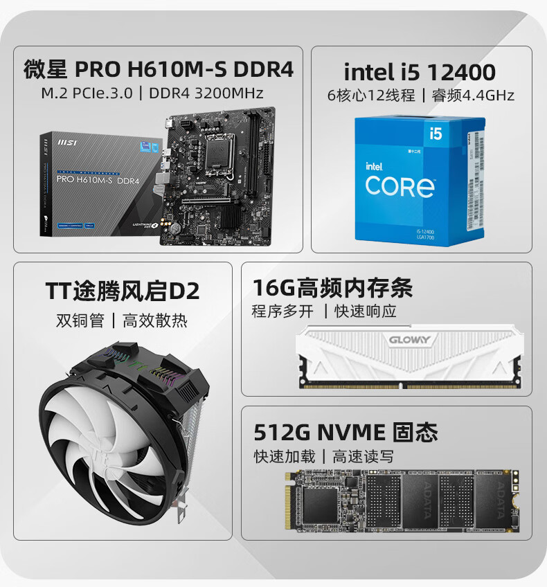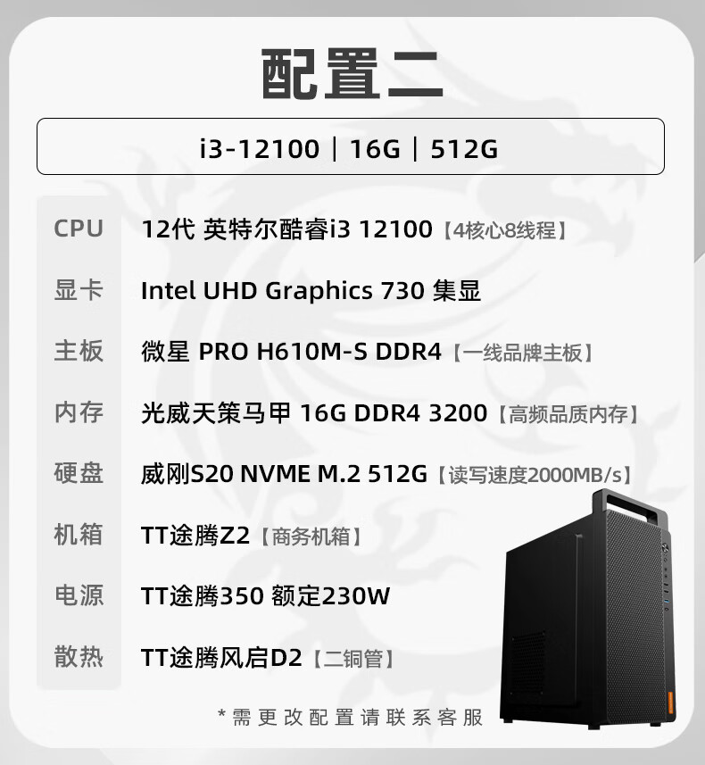 MSI Intel I3 12100 with MSI motherboard core display e-sports home game desktop computer junior high school information technology exam DIY assembly machine complete machine configuration two