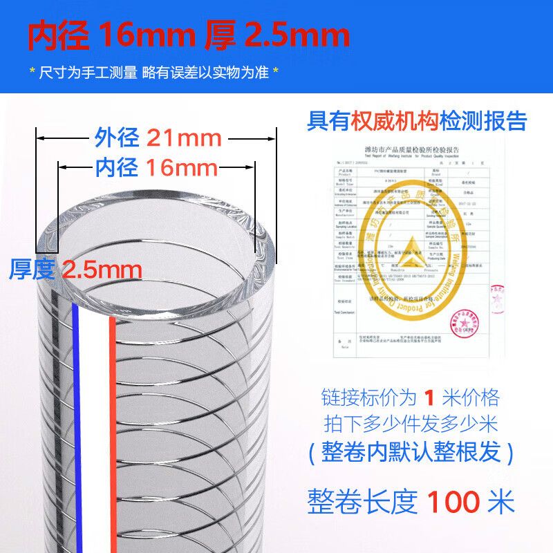 PVC steel wire pipe transparent hose oil-resistant, frost-resistant and high-temperature vacuum pumping plastic pipe drainage pipe 50mm123 inch inner diameter 58mm thickened 5mm
