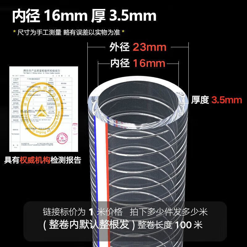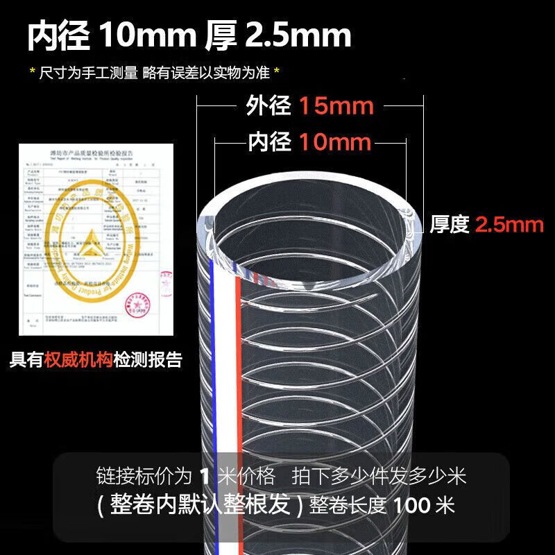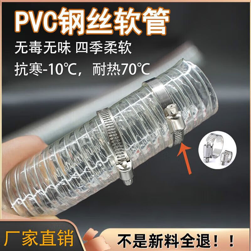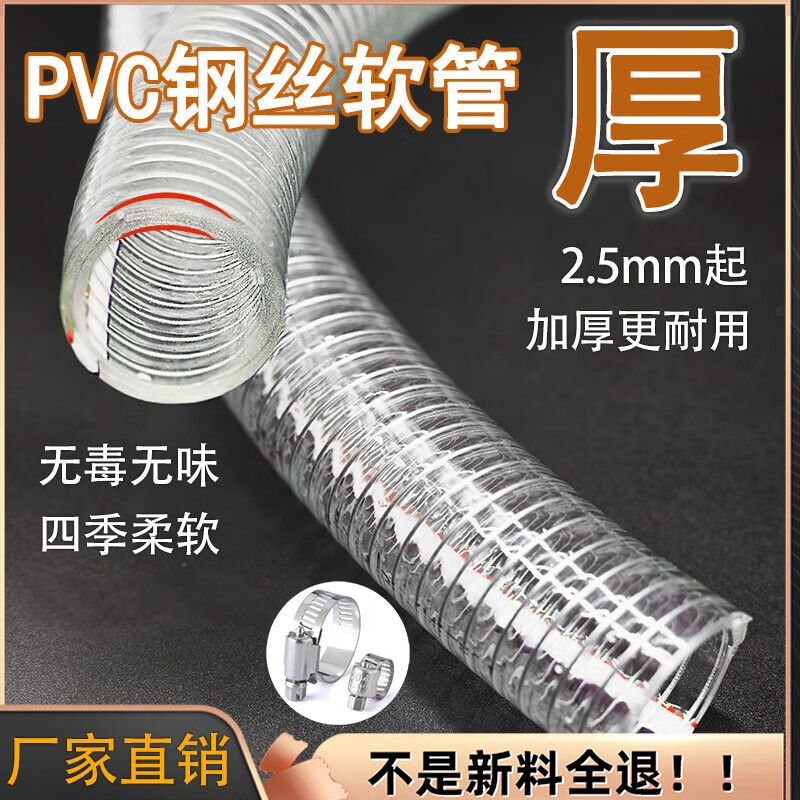 Pvc steel wire hose transparent plastic water pipe 25mm50 pipe 1/2/3 inch 46 minutes high temperature resistant anti-freeze drainage pipe inner diameter 10MM thick 2.5mm
