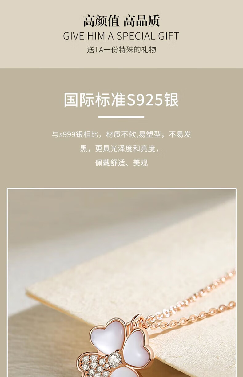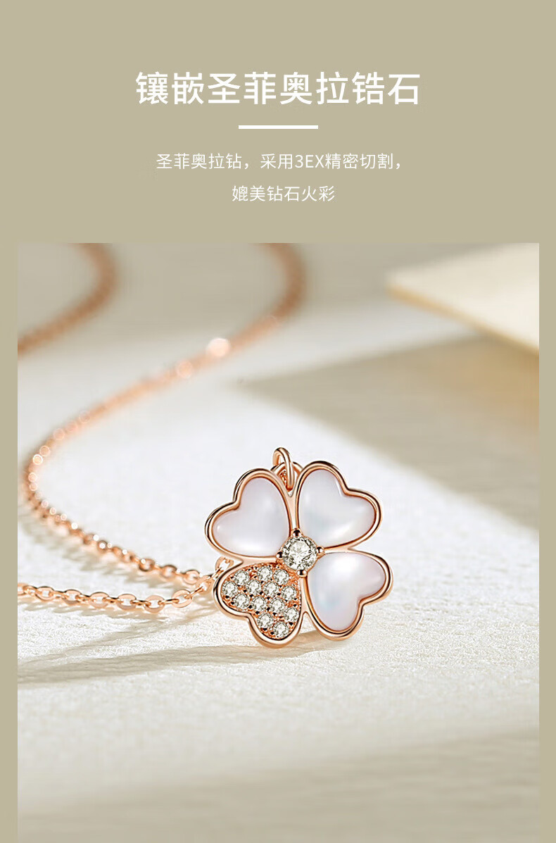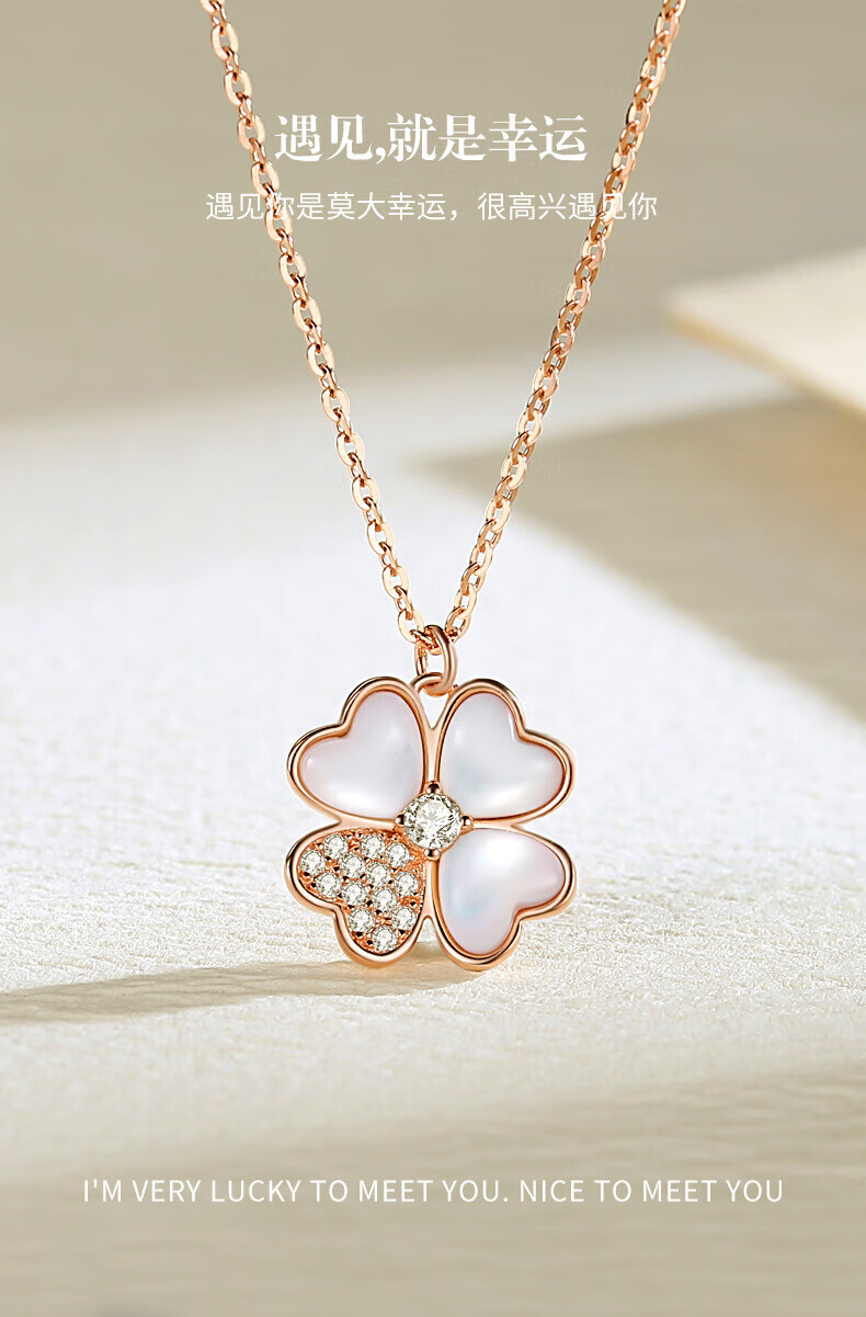 Helena's light luxury four-leaf clover necklace for women, gold color, high-end and exquisite clavicle chain, birthday and Valentine's Day gift for girlfriend, HR official four-leaf clover necklace, rose gold