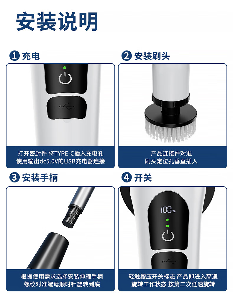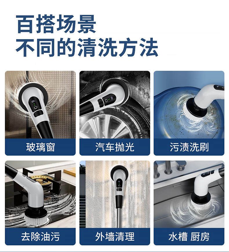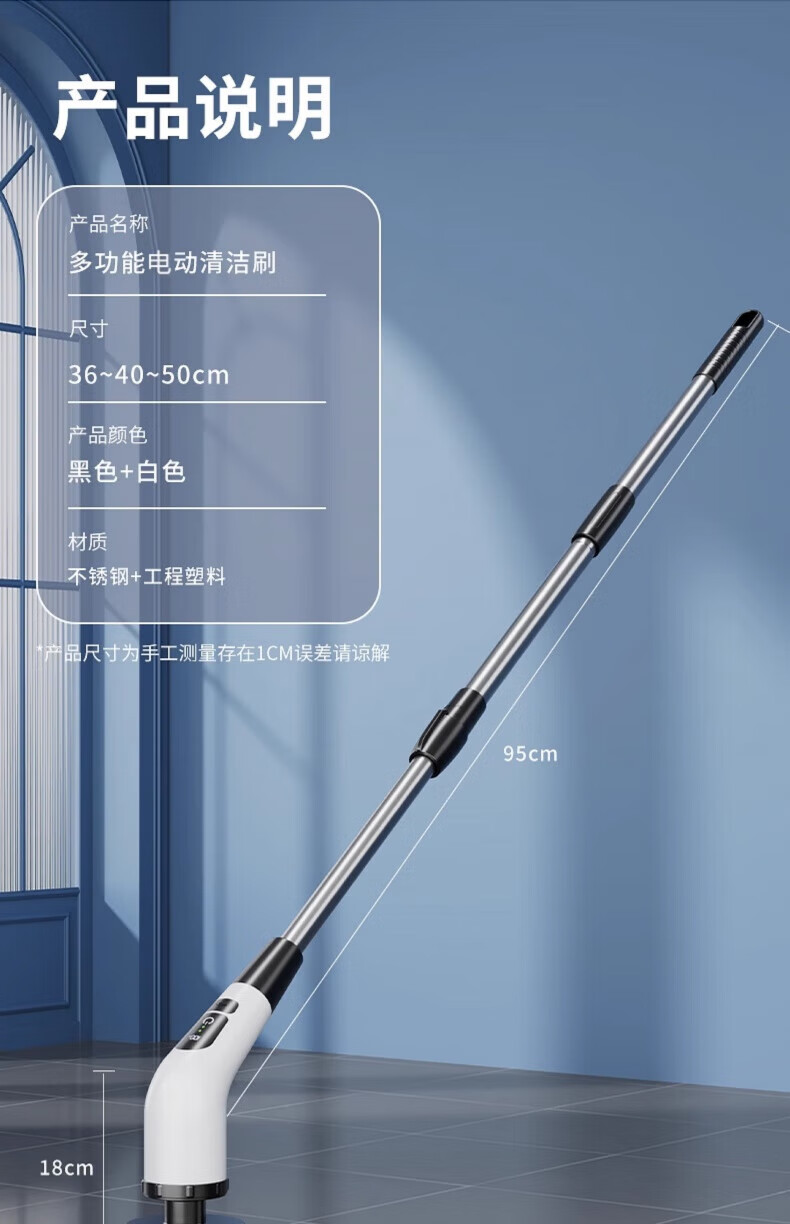 JCZS German quality electric cleaning brush waterproof long handle bathroom toilet multi-functional household floor brush machine electric brush bathroom floor scrubbing brush waterproof longer battery life rechargeable 7 types of cleaning brush heads
