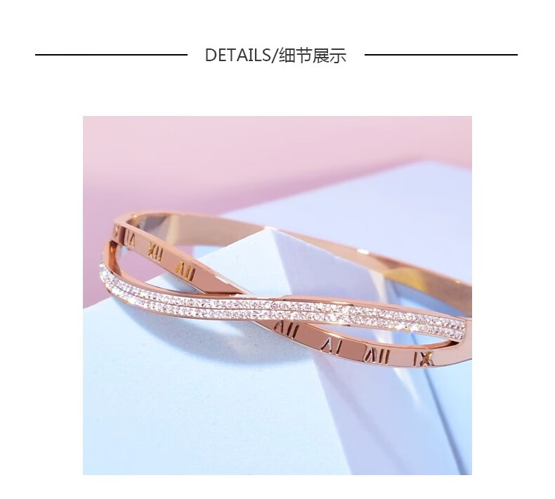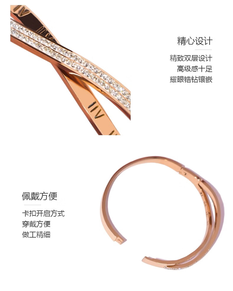 Henglijia British Roman Numeral Cross Bracelet Women's 18K Rose Gold Hand Jewelry Rose Gold (Inner Circumference 17cm)