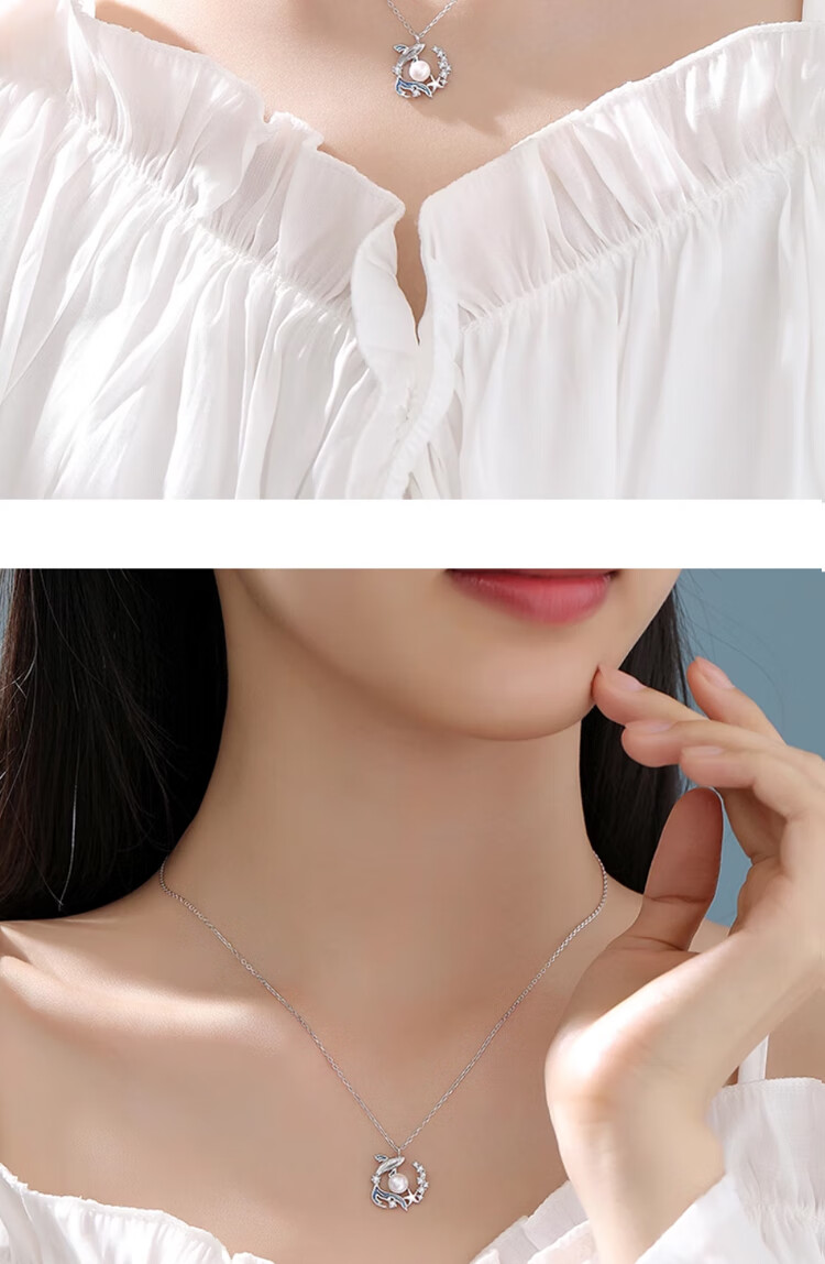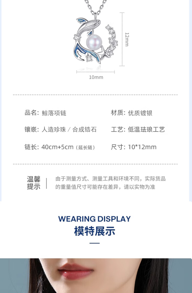 Mansheng Whale Falling Necklace Women's Pendant 2025 New Light Luxury Girls Clavicle Chain Birthday 520 Lover Gift for Girlfriend Whale Falling Necklace Exquisite Gift Box