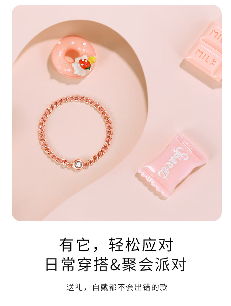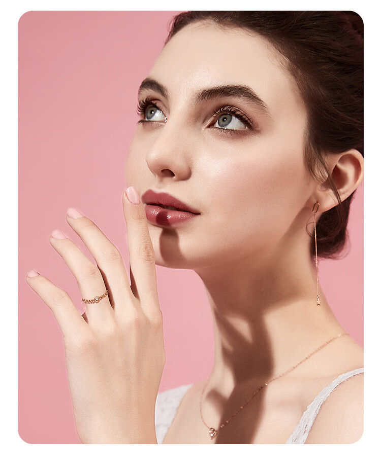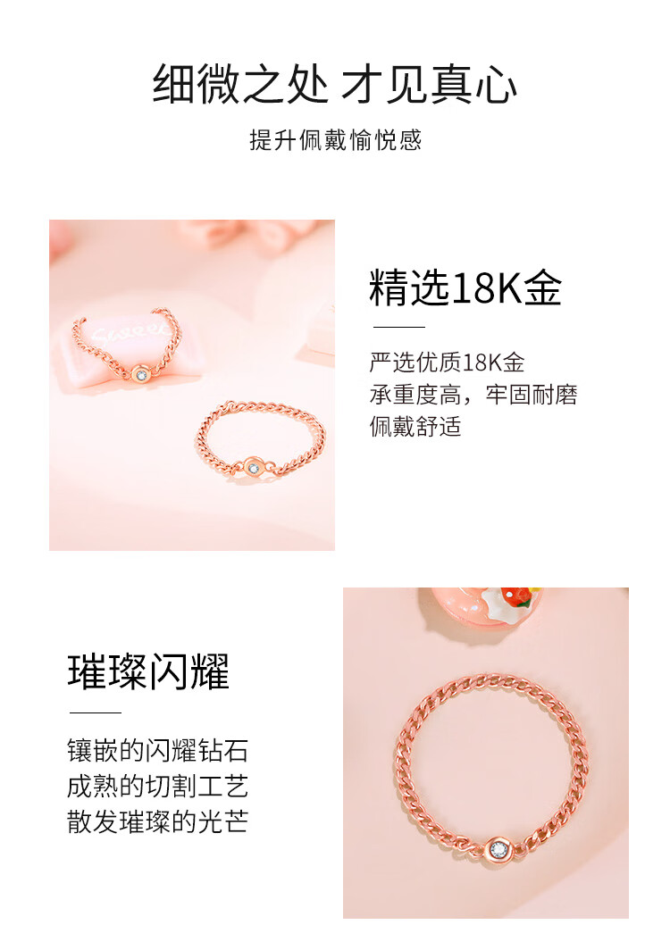 Pu Lian 18K gold ring, fashionable flash O rose gold diamond ring, colored gold wire ring, simple and fashionable, free No. 14