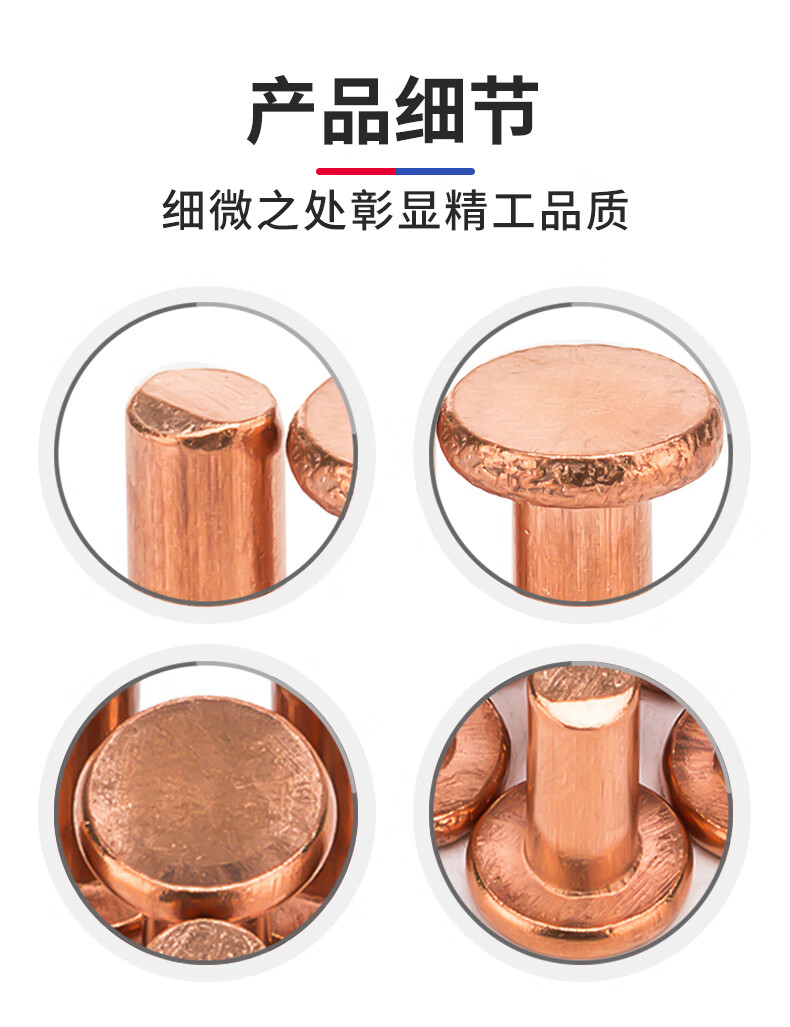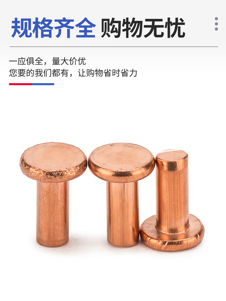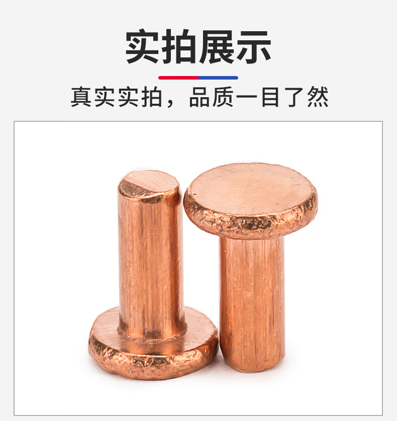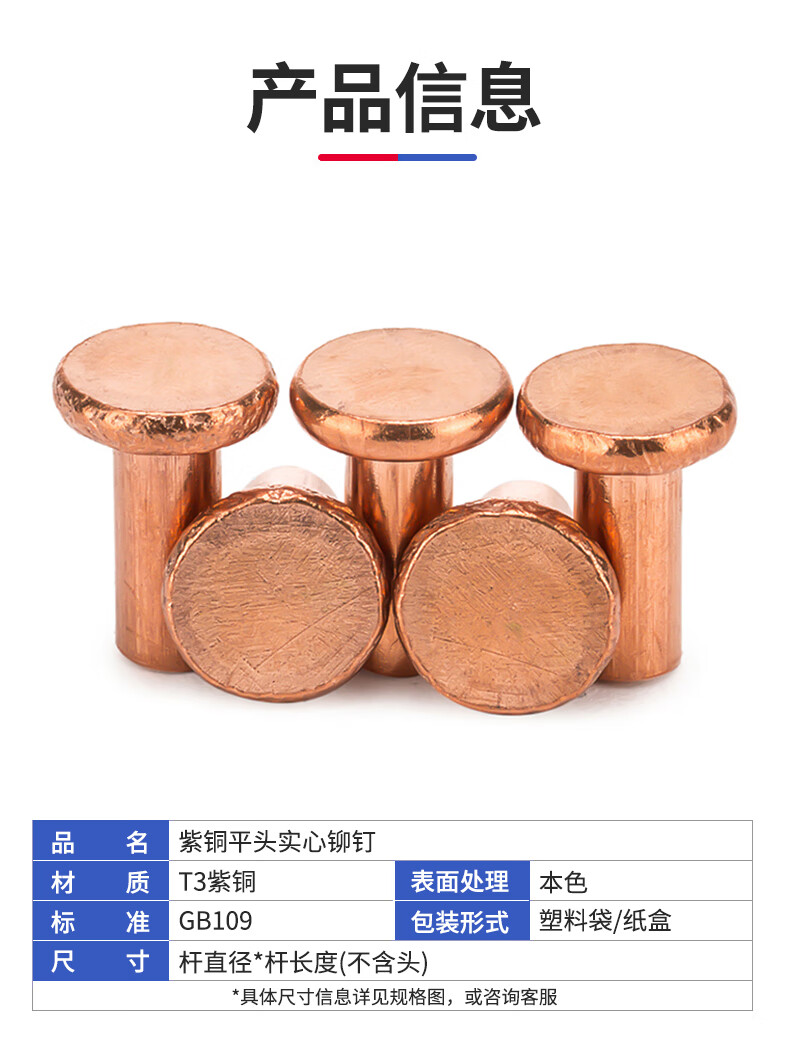 Jinggong copper rivets, copper flat head solid rivets, copper rivets, flat head percussion rivets GB109 M2-M8 3*5 (50 pcs)