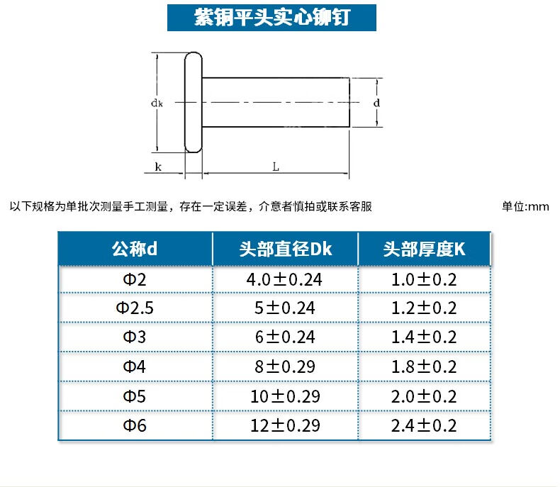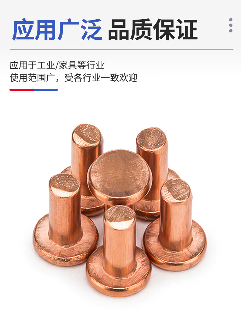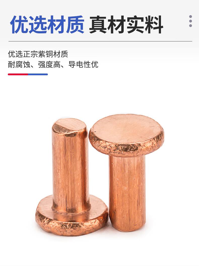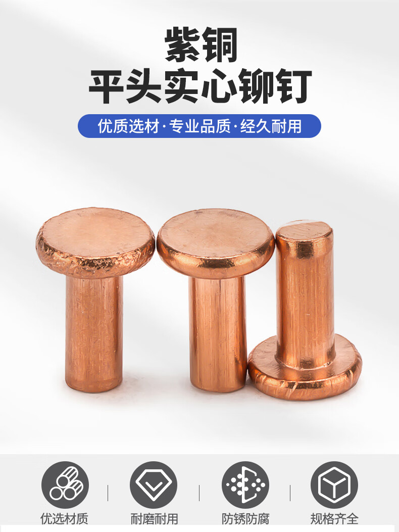 Jinggong copper rivets, copper flat head solid rivets, copper rivets, flat head percussion rivets GB109 M2-M8 3*5 (50 pcs)