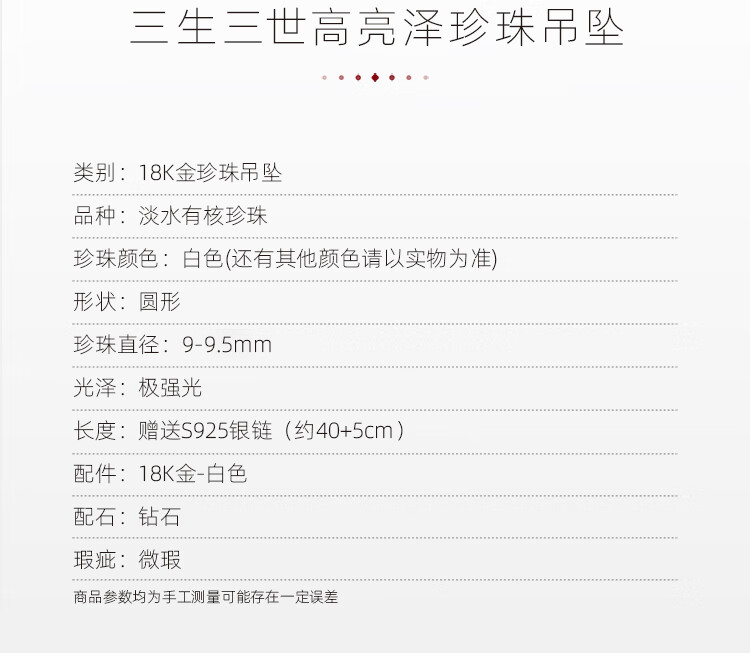Ruan Shi 18k gold freshwater pearl pendant Sansheng III series pearl clavicle chain jewelry gift for girlfriend and wife, about 9-9.5mm