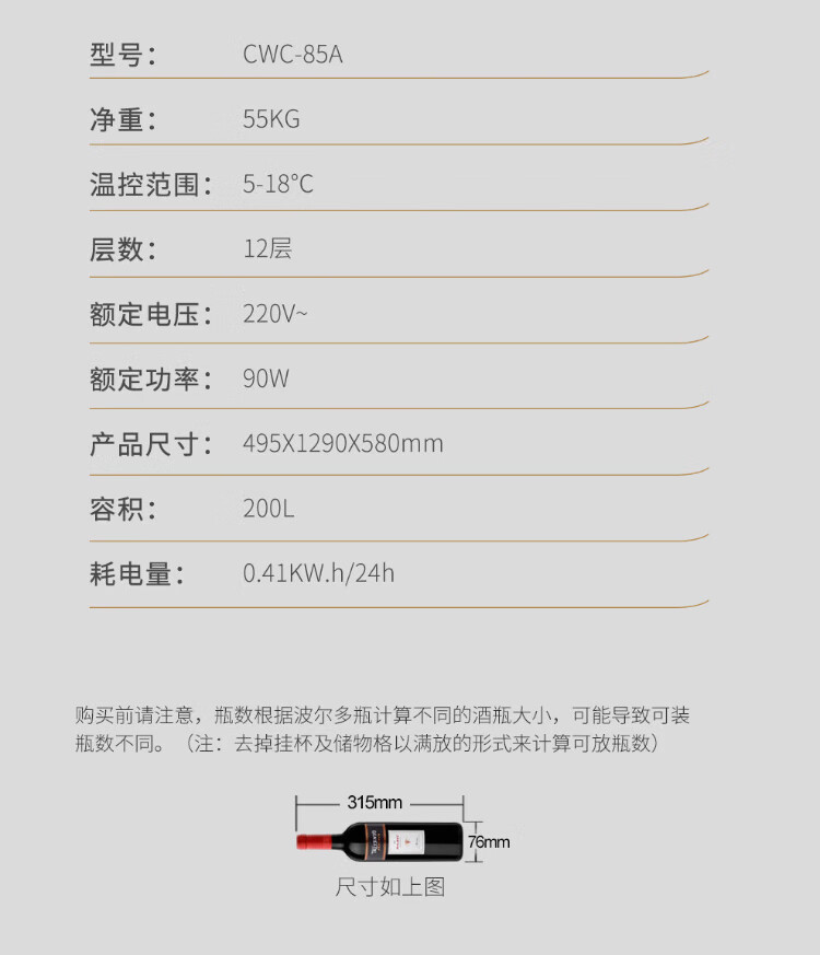 Vinocave wine cabinet constant humidity wine cabinet refrigerator compressor ice bar refrigeration home office constant humidity cabinet multi-functional display cabinet ultra-thin CWC-85A - single temperature model 85 bottles 85 bottles