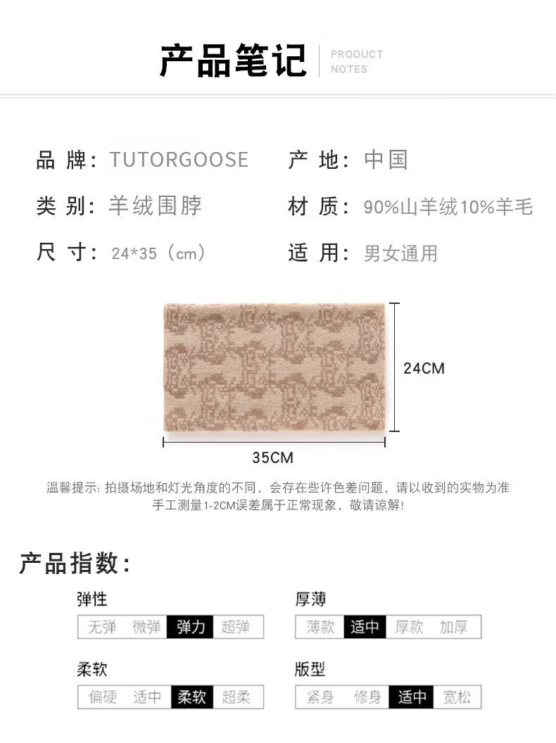 TUTORGOOSE Autumn and Winter Cashmere Neck Warmer Women's Warm Neck Protector Double-sided Neck Scarf Versatile Knitted Fake Collar Pullover Thickened Small Scarf Beige