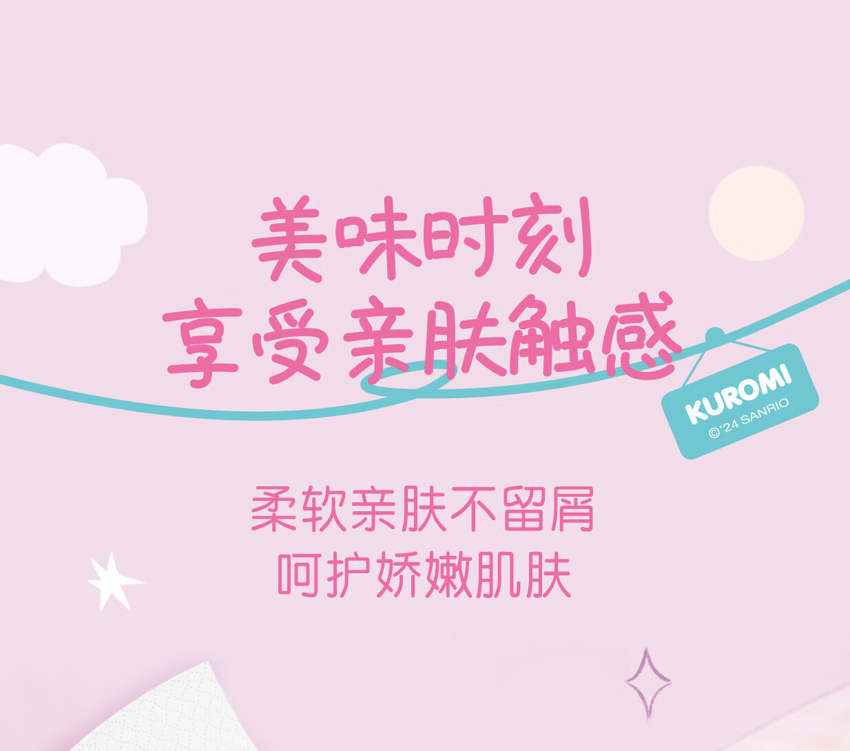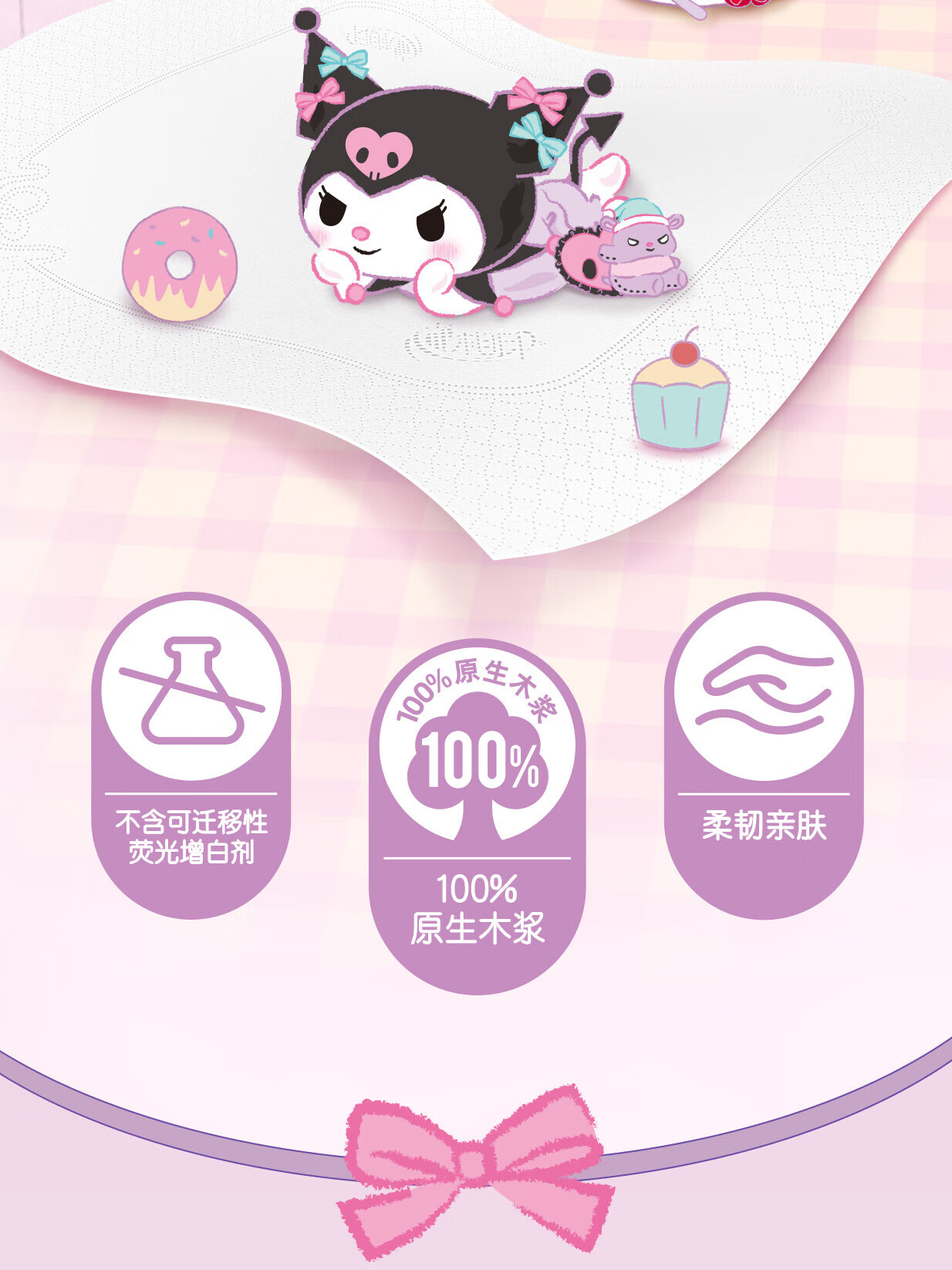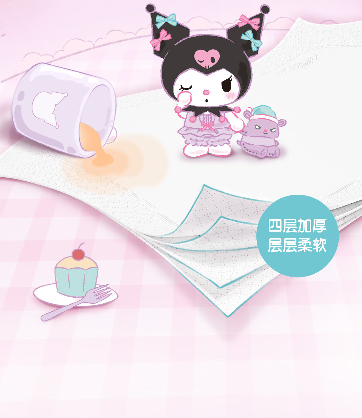 Heart-to-heart handkerchief paper Kuromi co-branded model 4 layers 20 pieces wettable water towel napkin portable travel small bag tissue paper 4 layers 20 pieces * 1 pack
