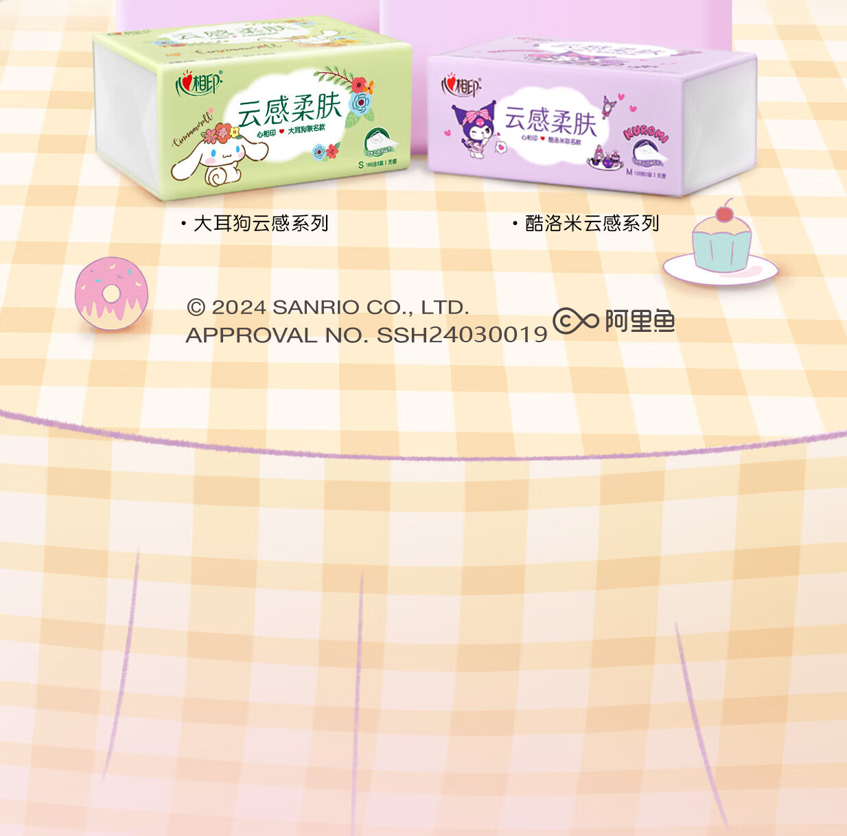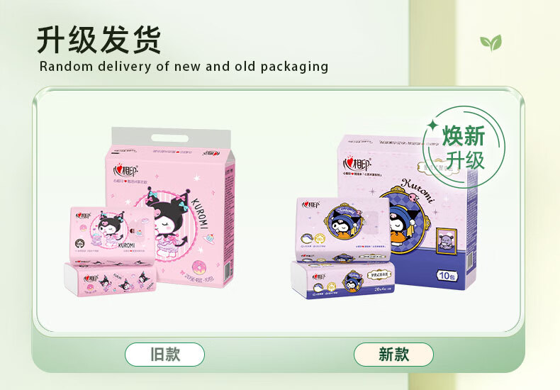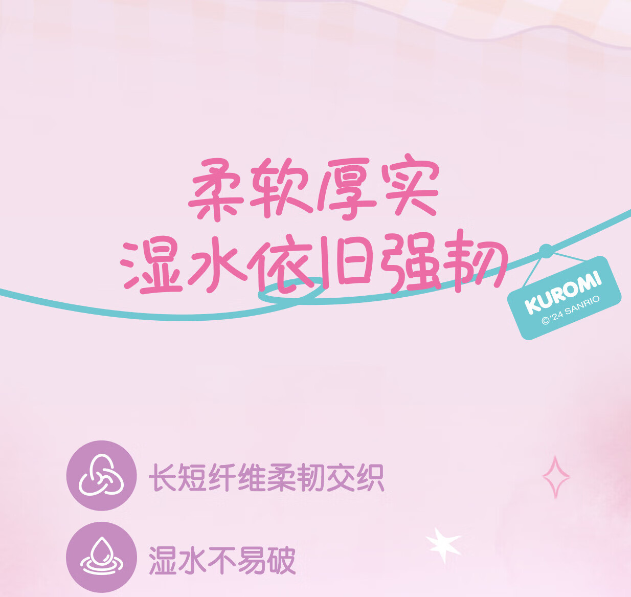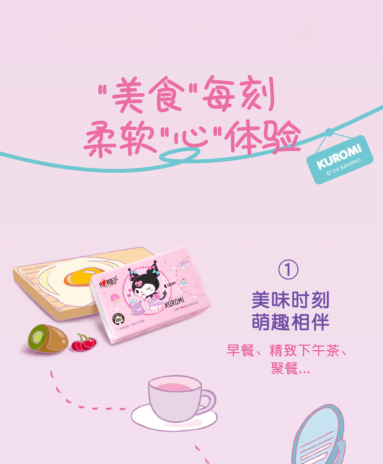 Heart-to-heart handkerchief paper Kuromi co-branded model 4 layers 20 pieces wettable water towel napkin portable travel small bag tissue paper 4 layers 20 pieces * 1 pack