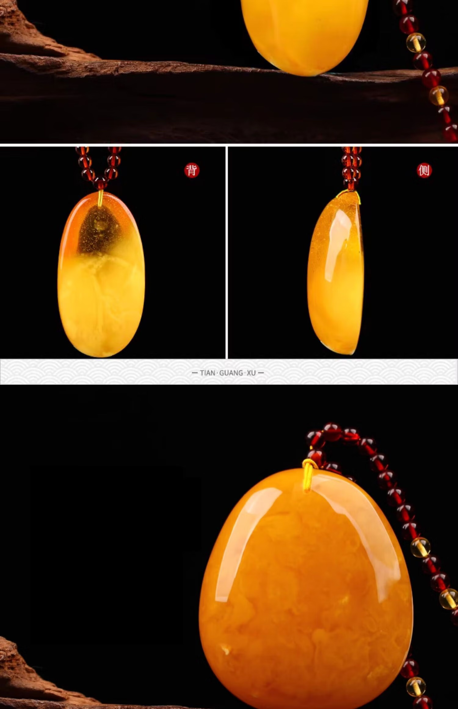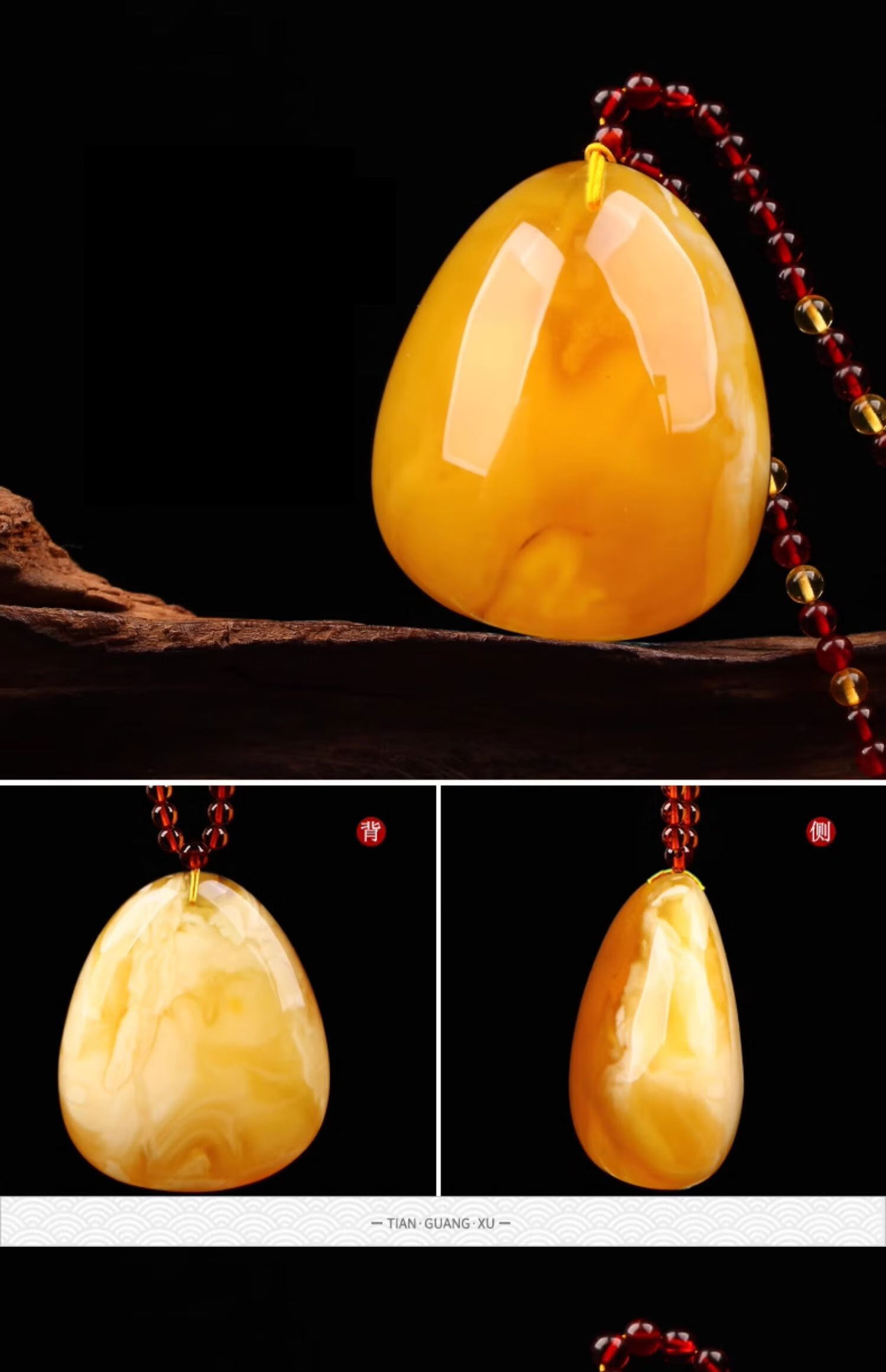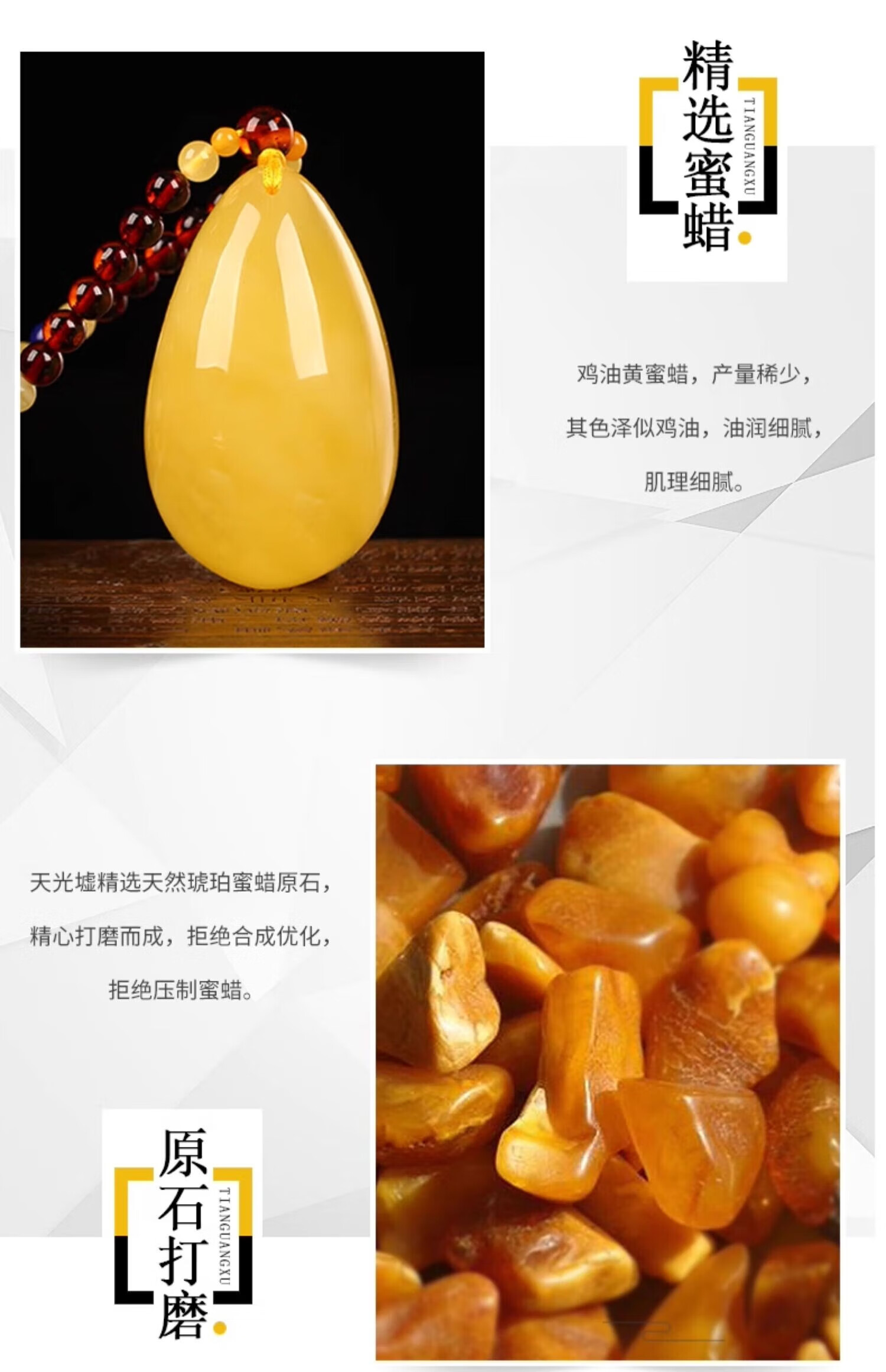 Yangyan Beeswax Pendant Natural Real Amber Raw Stone Chicken Oil Yellow Pendant Fossil Women's Sweater Chain Beeswax Necklace TY1257