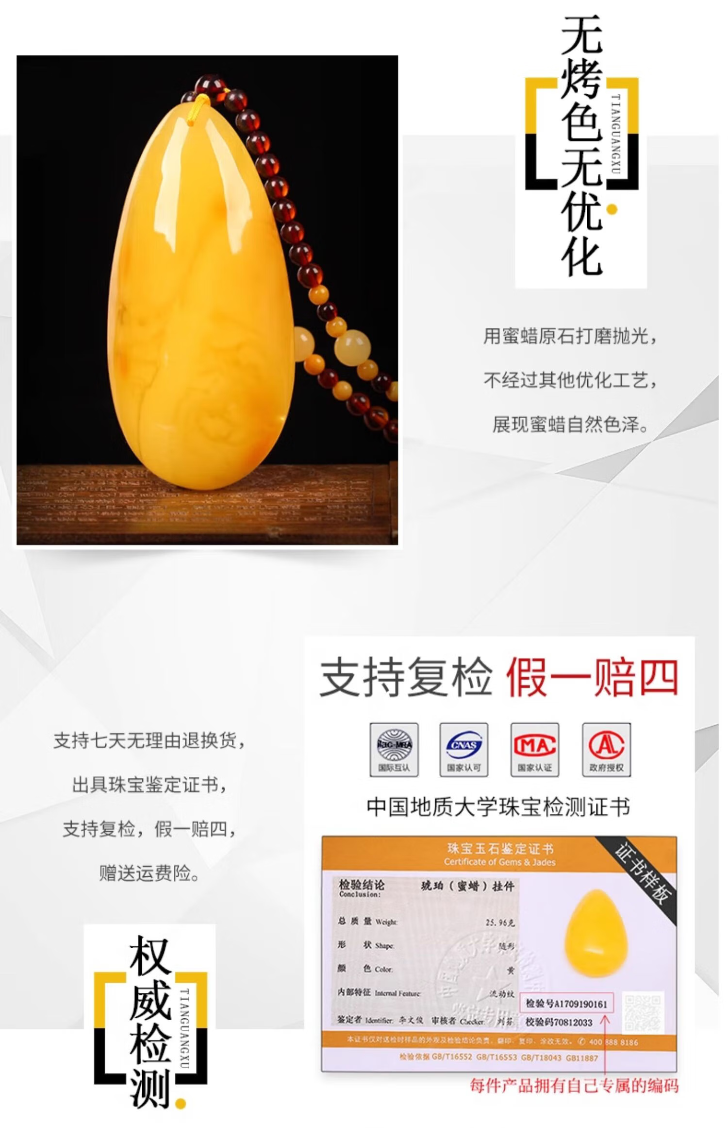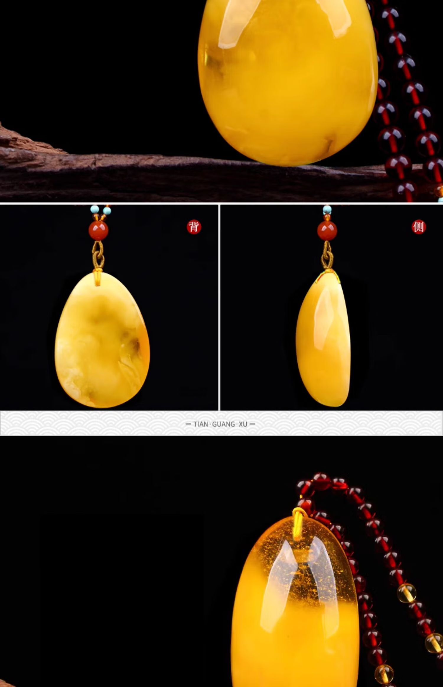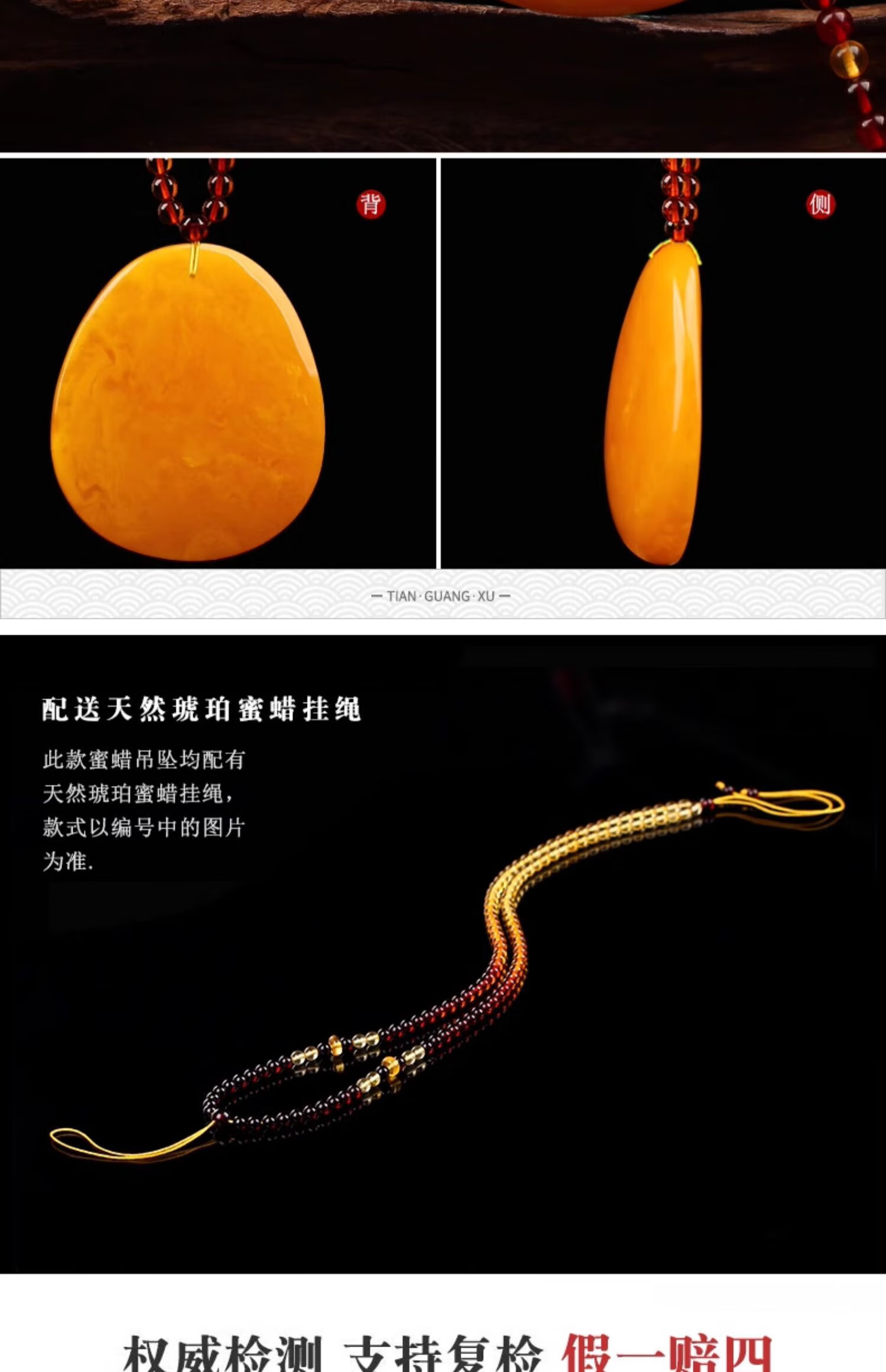 Yangyan Beeswax Pendant Natural Real Amber Raw Stone Chicken Oil Yellow Pendant Fossil Women's Sweater Chain Beeswax Necklace TY1257
