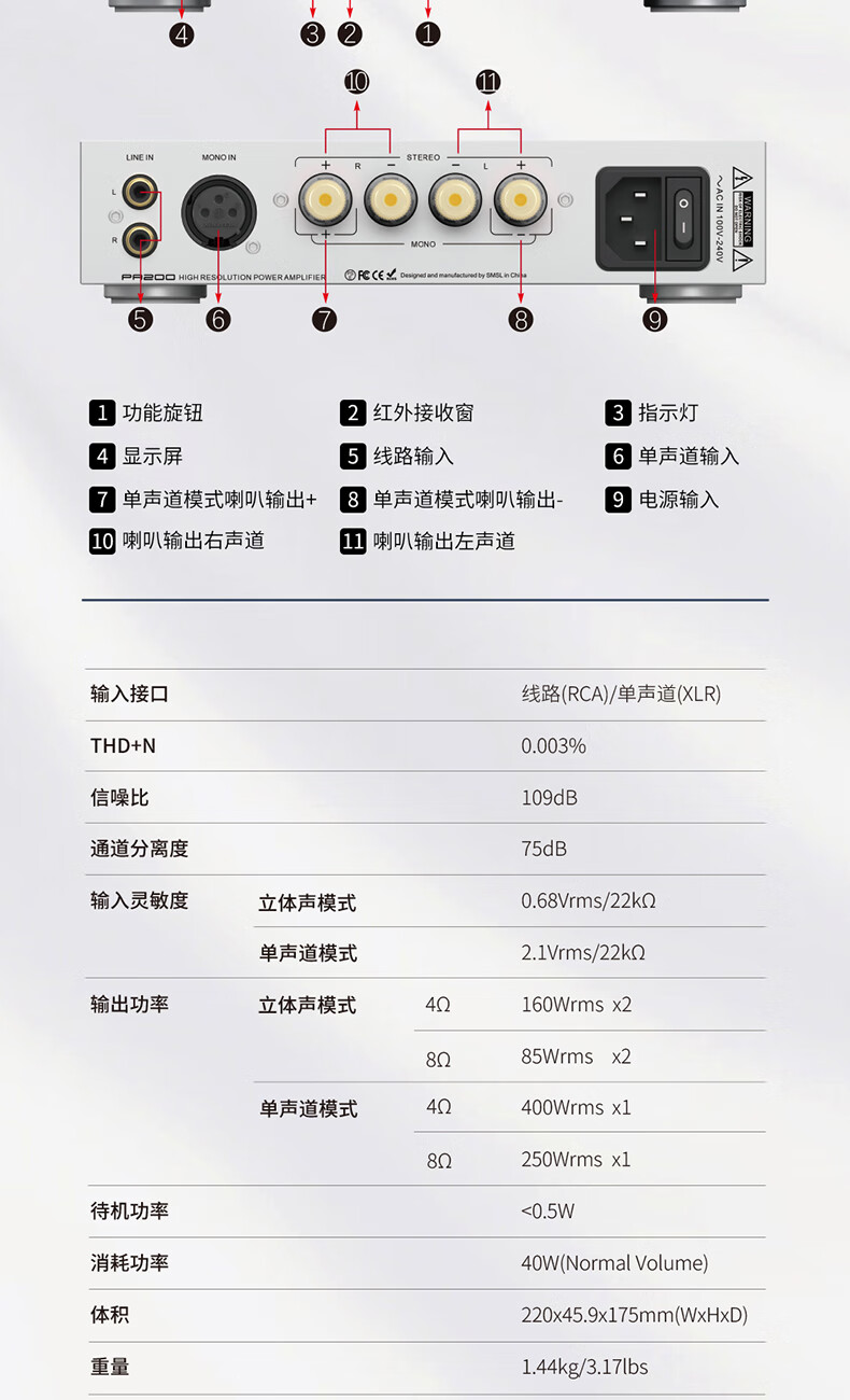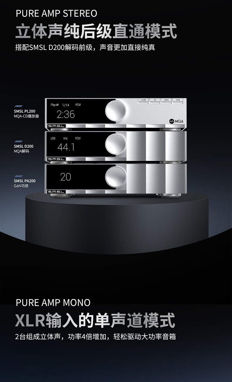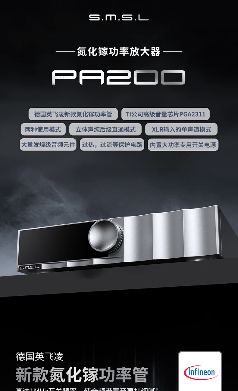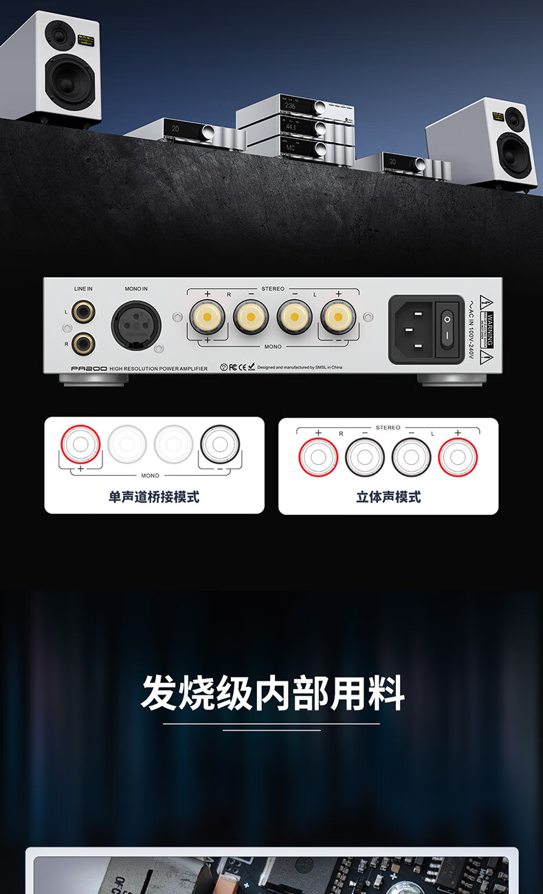 SMSL Shuangmu Sanlin PA200 gallium nitride power amplifier desktop power amplifier passive speaker high power silver