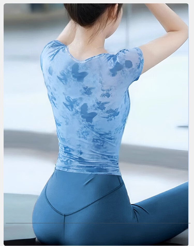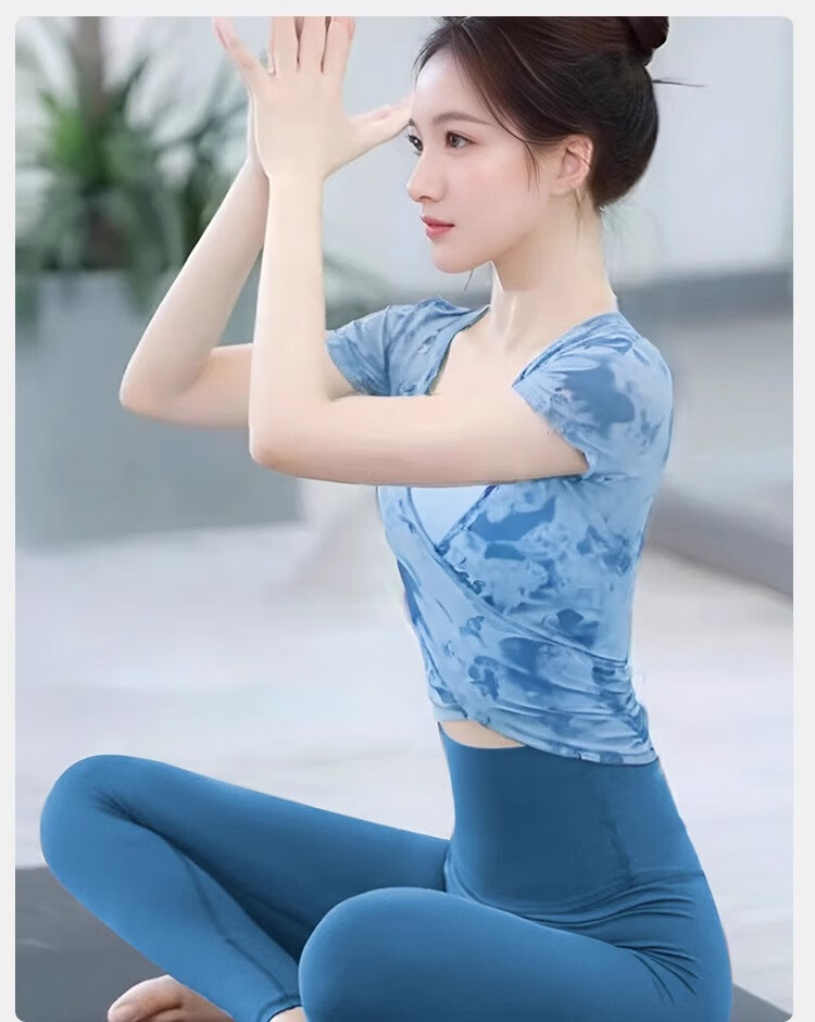 Shuangxiu Chinese Style Yoga Wear Tops Women's New Style Beautiful Chinese Tie-Dye Real Two-piece Pilates Training Sports Fitness Suit Wind Chime Blue + Royal Blue Suit L 110-120
