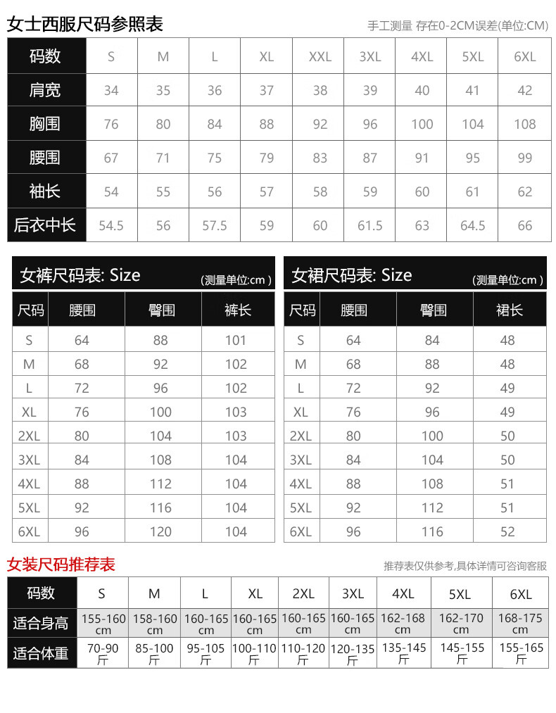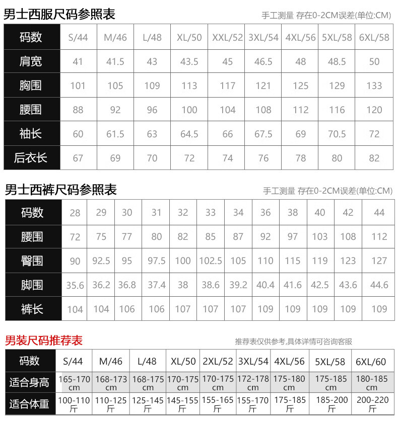 China (cm) 160-165/84-86 165-170 / 88-90 167-172 / 92-96 168-173 / 98-102 170-176 / 106-110