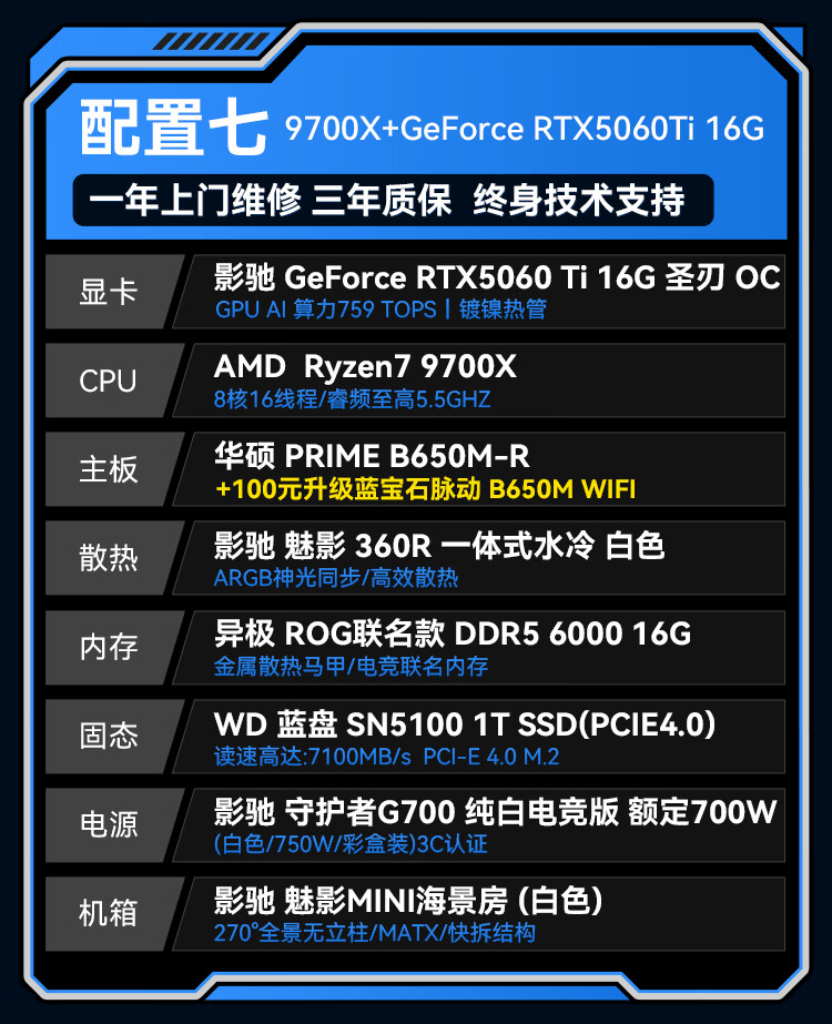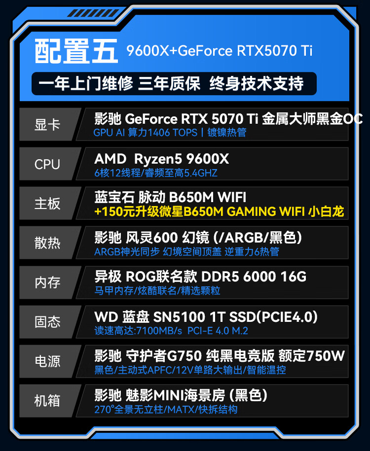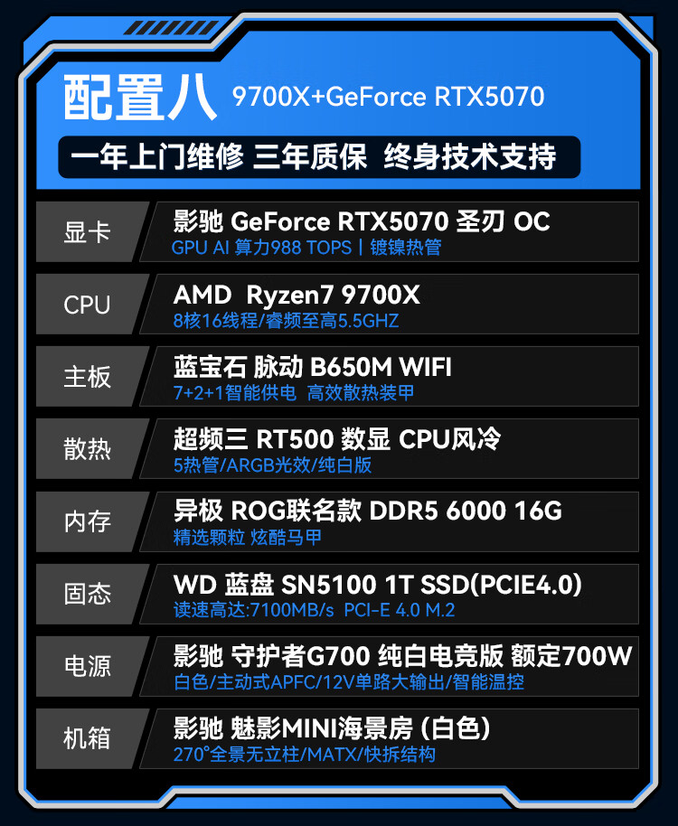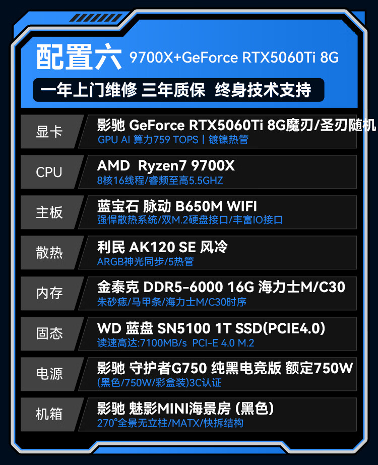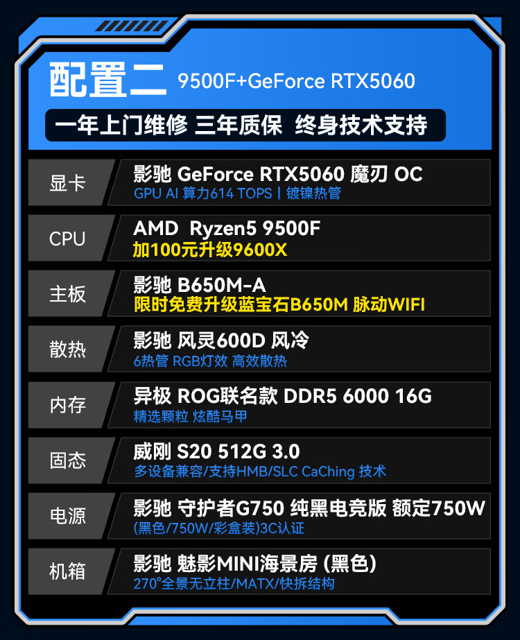 GALAXY AMD Ryzen 9500F/9600X/9700X/RTX5060/RTX5070/RTX5070TI desktop live broadcast 2K game assembly computer host DIY complete machine configuration 2 9500F/RTX5060