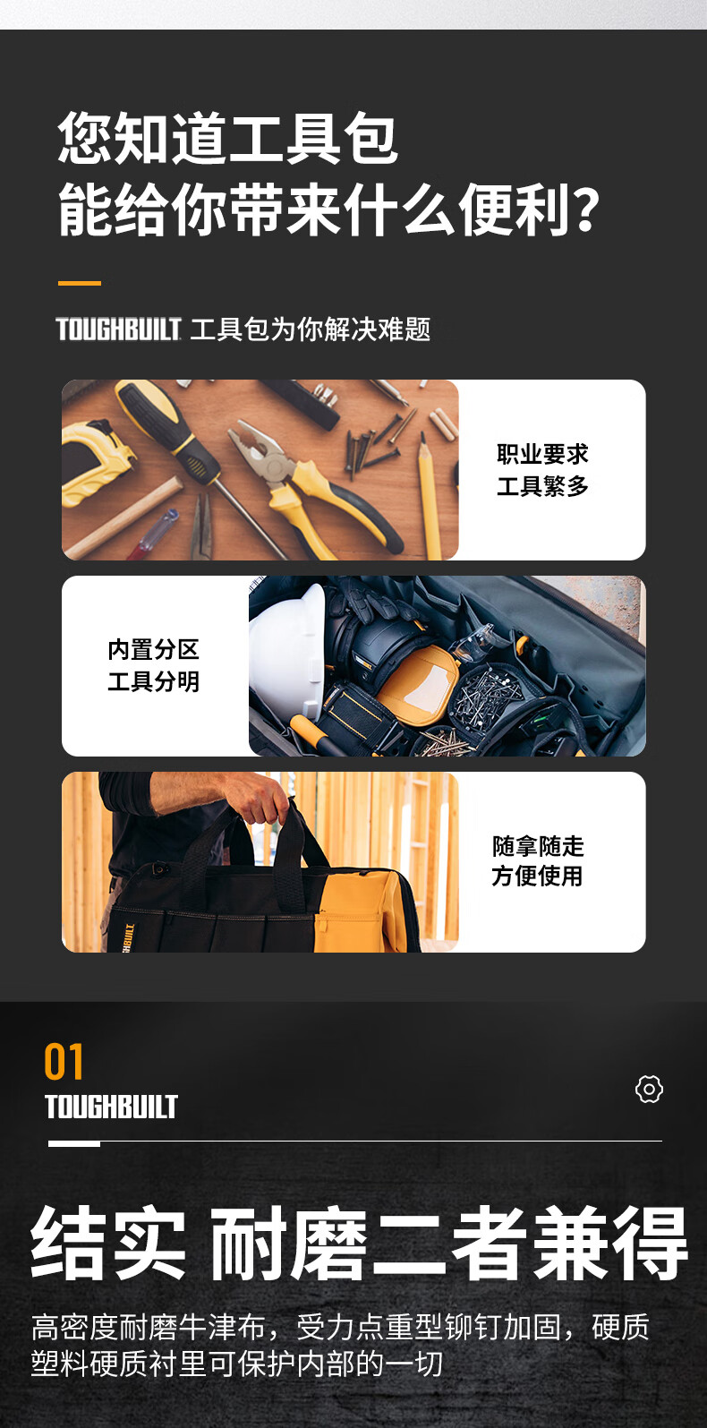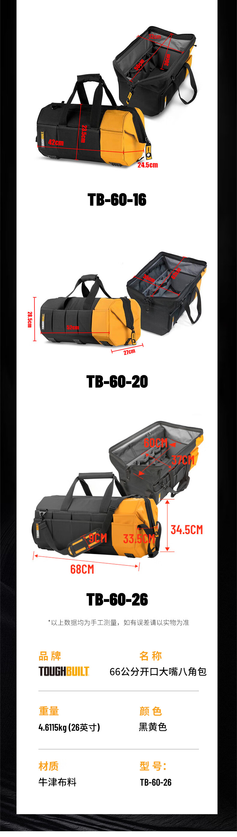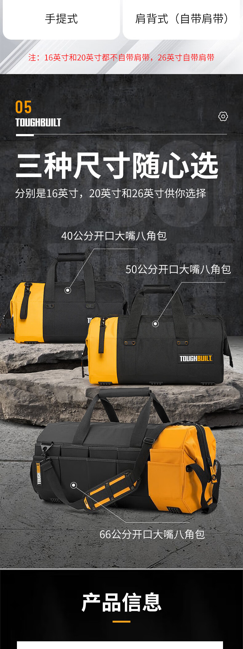 TOUGHBUILT tool bag 66 public opening large mouth octagonal bag large capacity bag TB-60-26