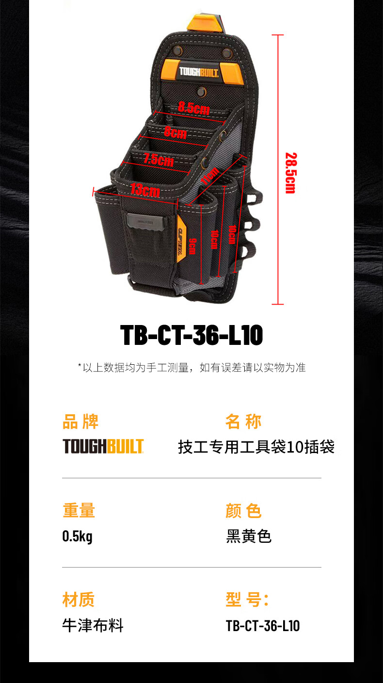 TOUGHBUILT Tools Mechanic's Tool Bag 10 Slip Pockets TB-CT-36-L10