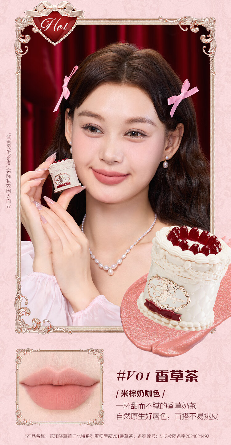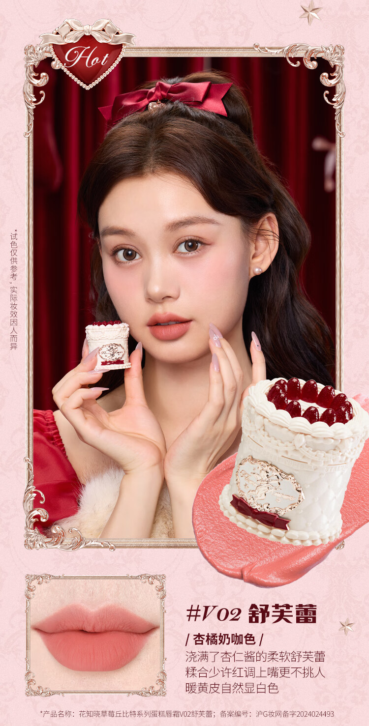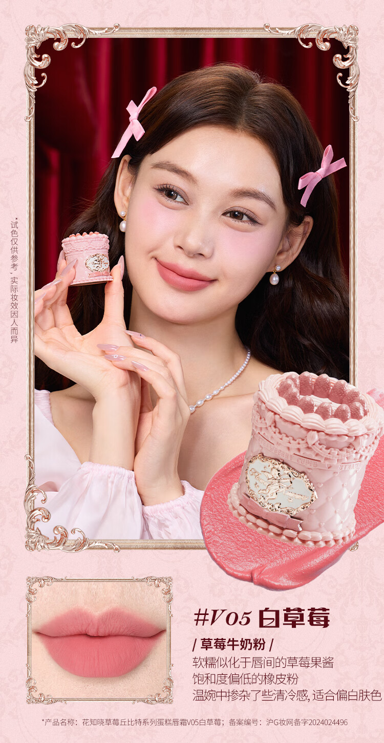 Flower Knows New Year's Gift Strawberry Cupid Series Cake Lip Cream Velvet Matte Lip Glaze Light Daily V02 Soufflé Featured Best Seller