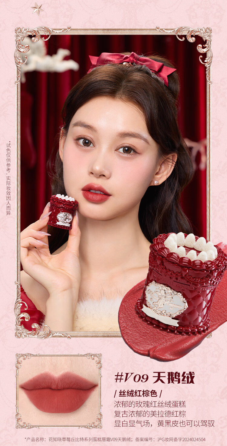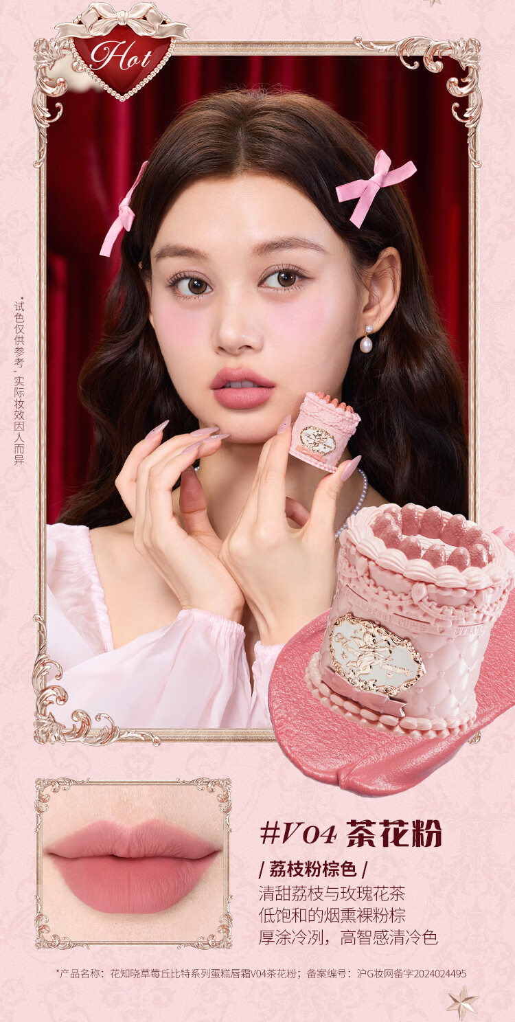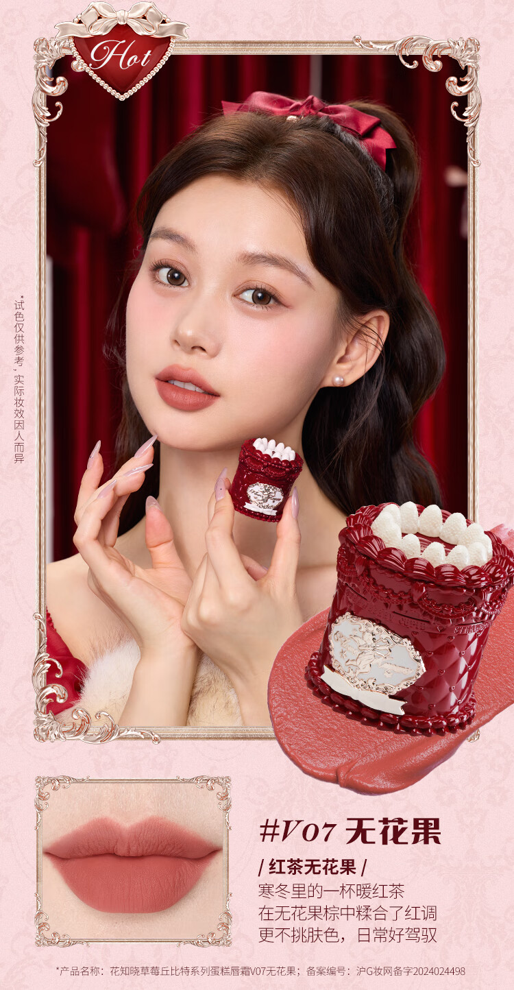 Flower Knows New Year's Gift Strawberry Cupid Series Cake Lip Cream Velvet Matte Lip Glaze Light Daily V02 Soufflé Featured Best Seller