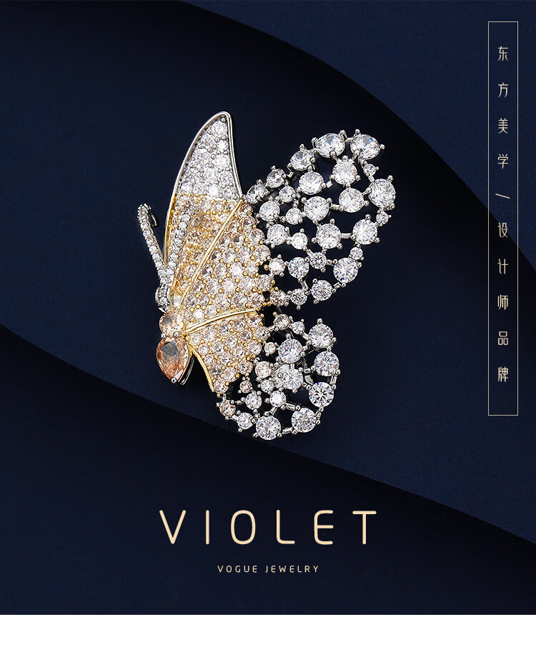 Violet butterfly brooch high-end women's exquisite fashion butterfly corsage brooch 2023 new trend champagne gold