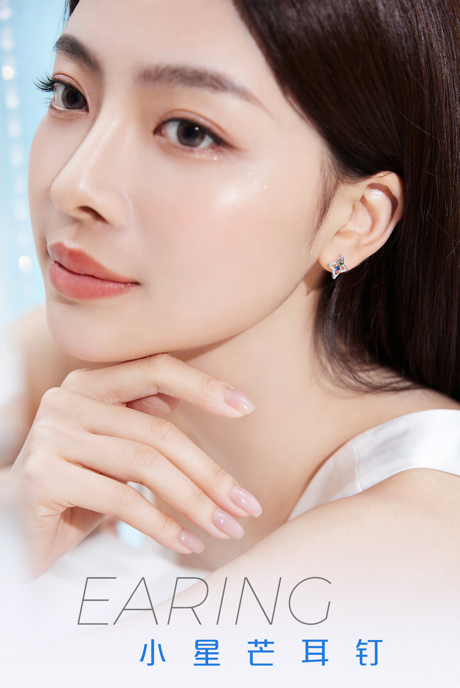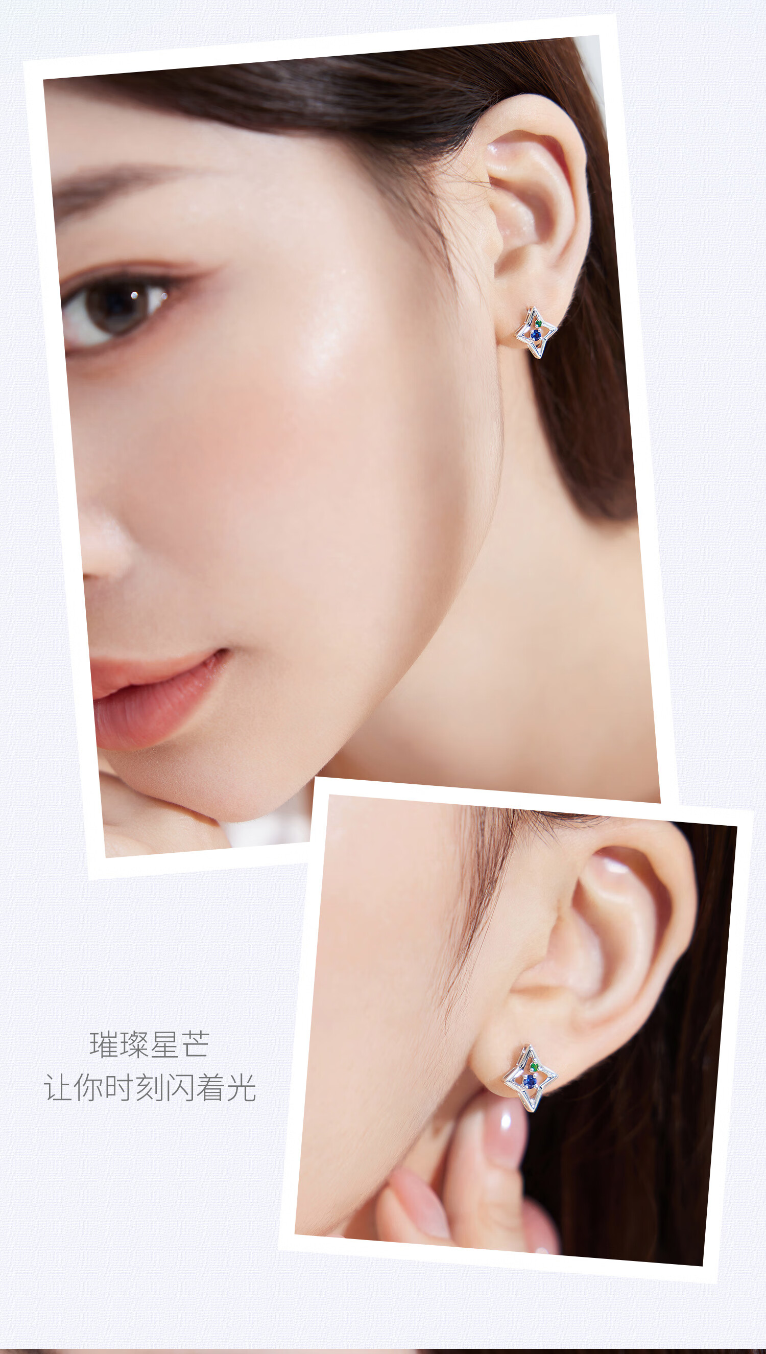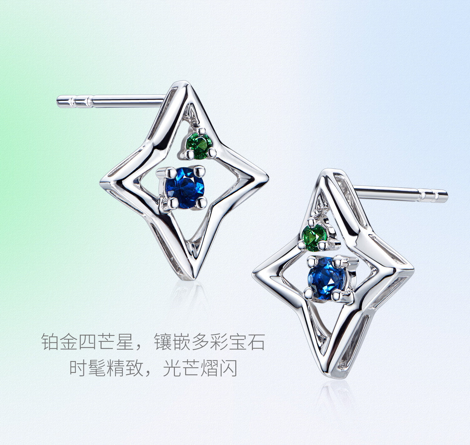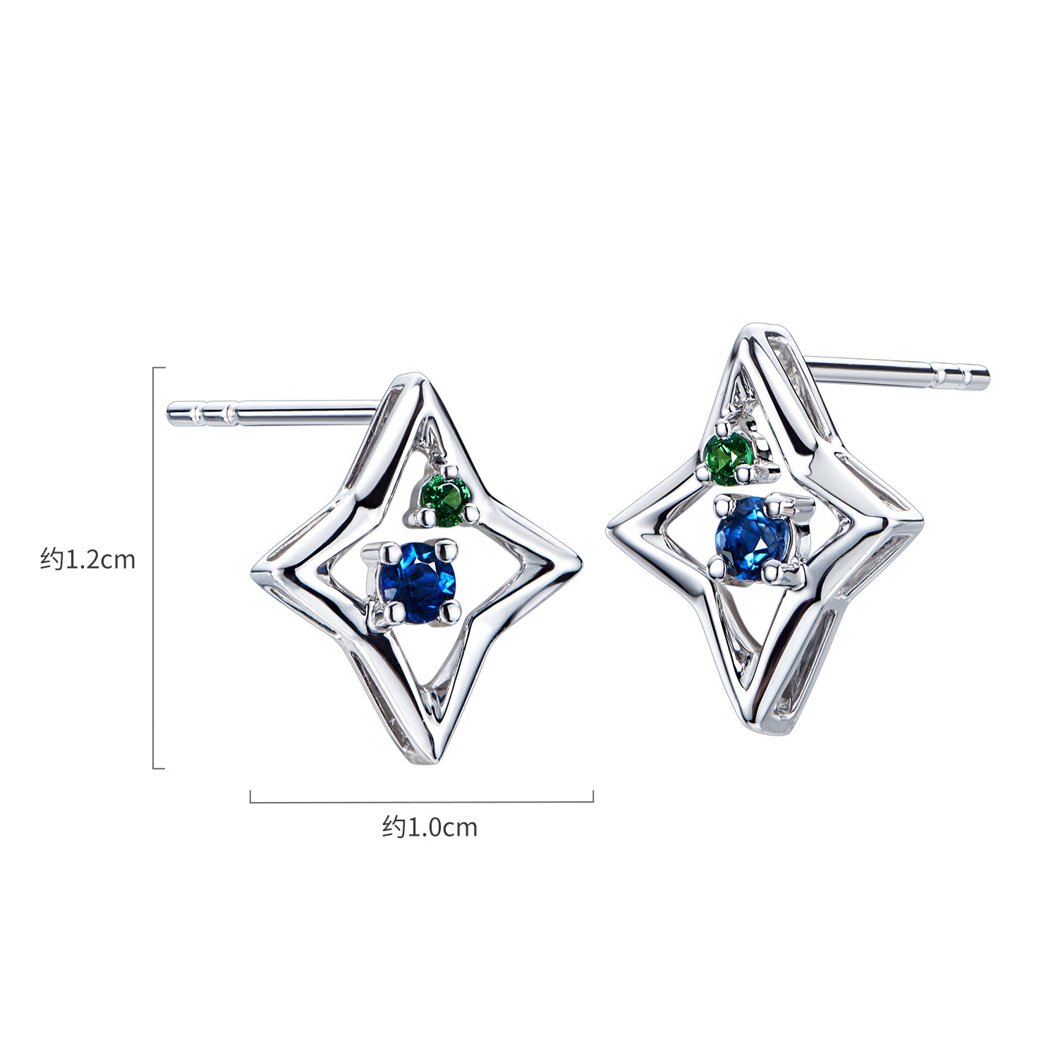 Lukfook Jewelry Platinum 950 Small Starburst Sapphire Garnet Platinum Stud Earrings F48J0005DS Total Weight 1.71g