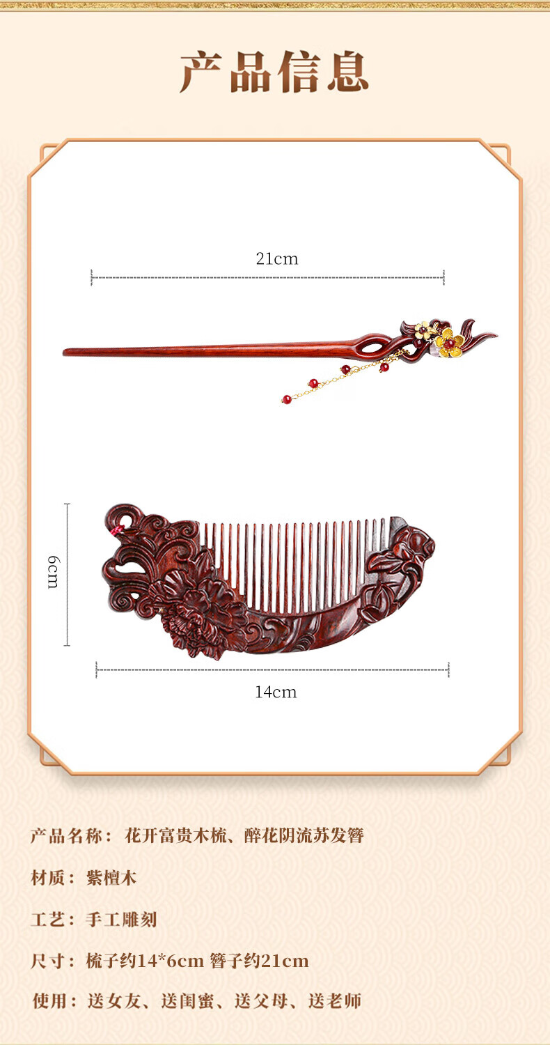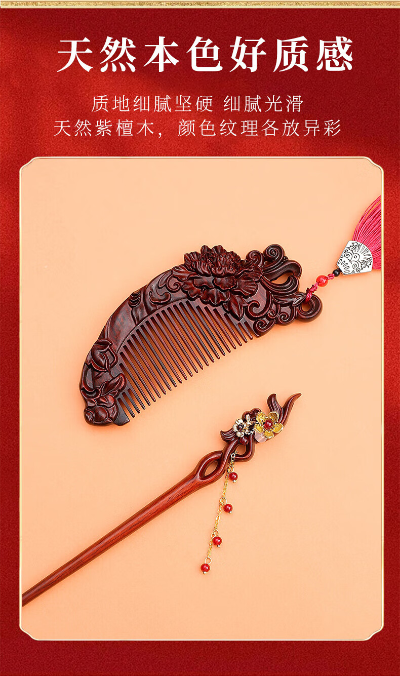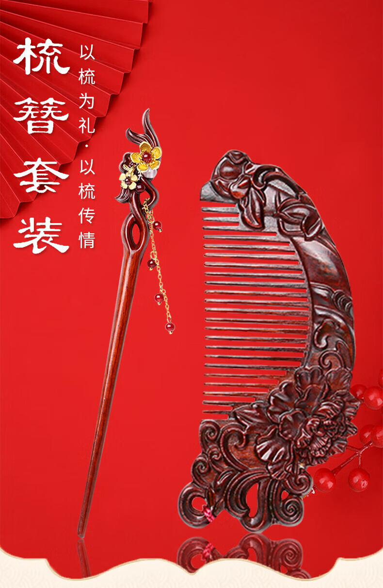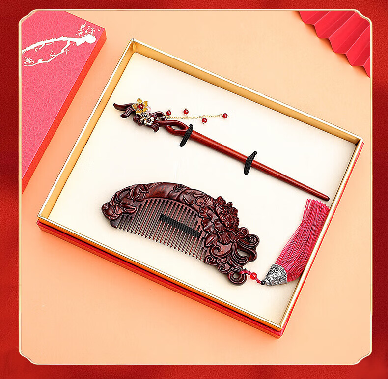 Crystal hairpin ancient style hairpin comb women's sandalwood comb gift box birthday gift for girls to give to girlfriends high-end niche practical TS470 rosewood comb + hairpin-gift box set