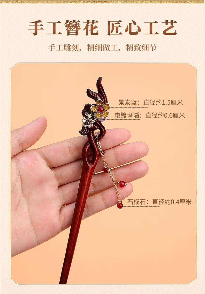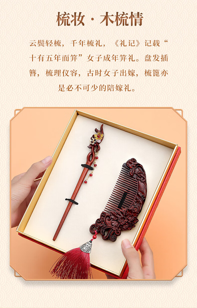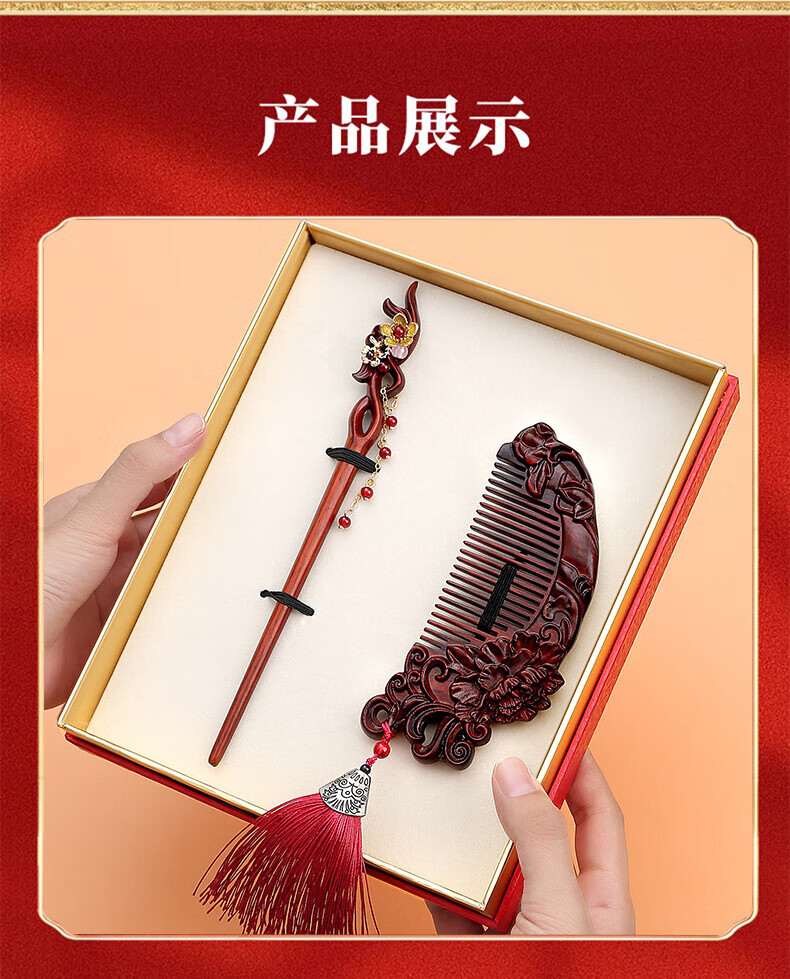 Crystal hairpin ancient style hairpin comb women's sandalwood comb gift box birthday gift for girls to give to girlfriends high-end niche practical TS470 rosewood comb + hairpin-gift box set