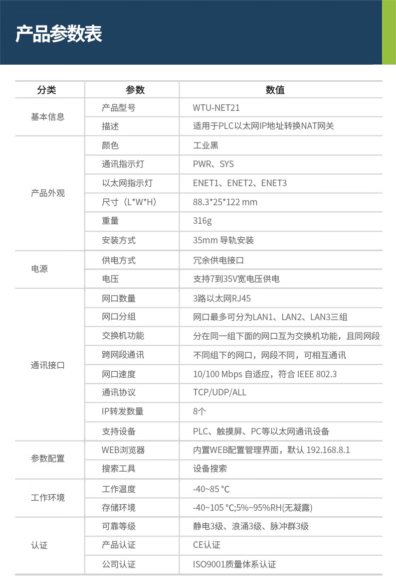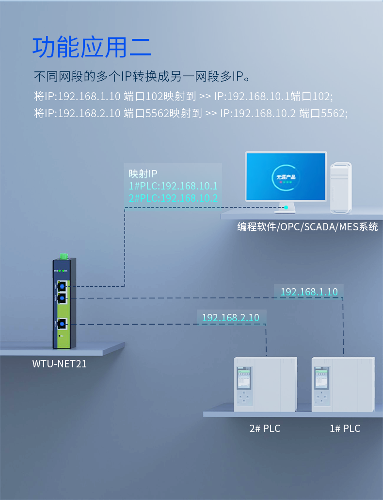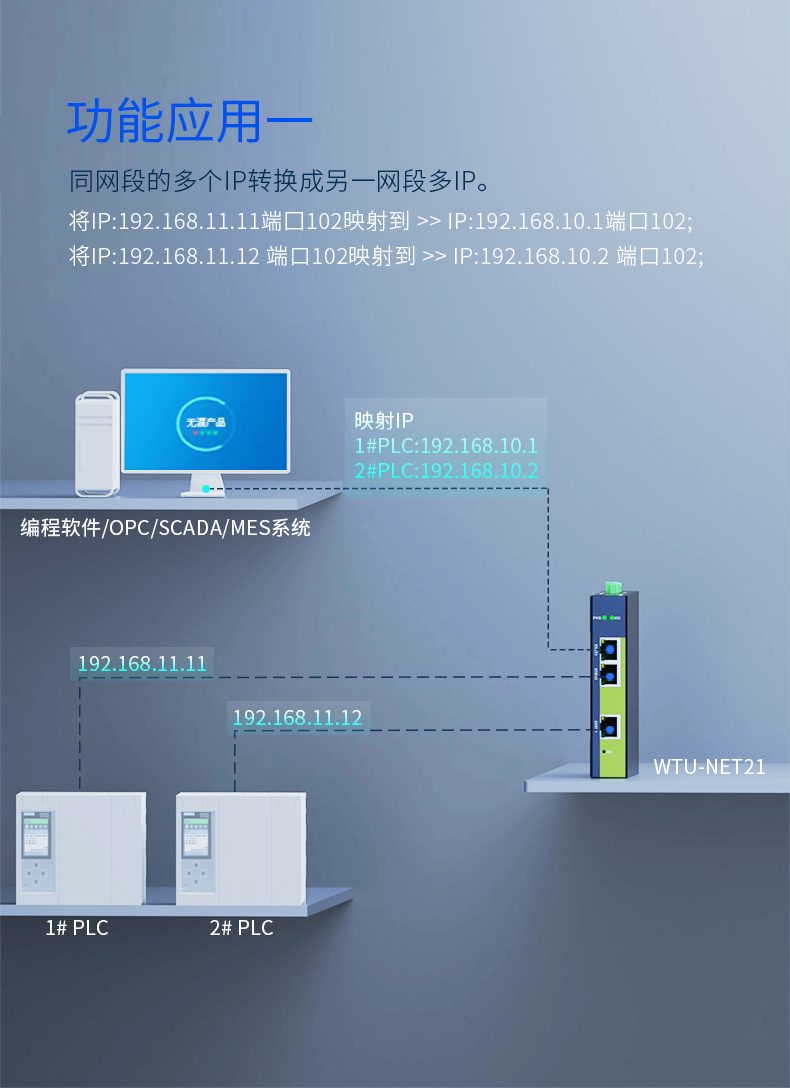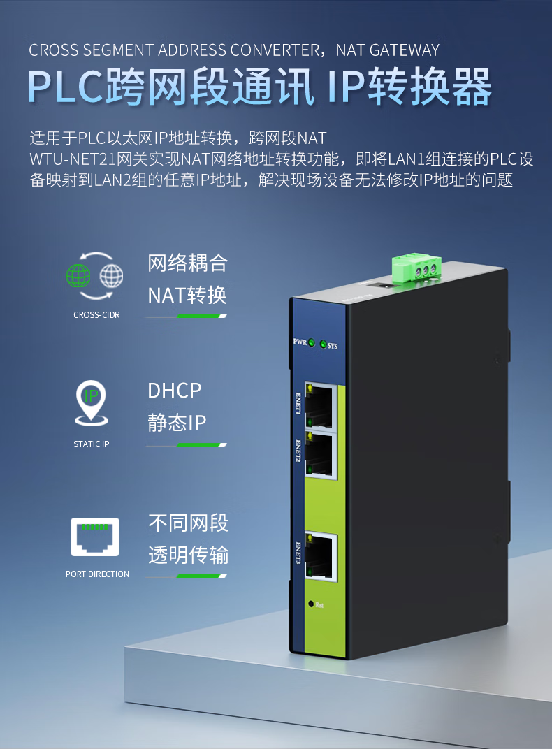Wuya PLC cross-segment multi-IP address converter/nat network coupler ETH-NAT gateway mapping module WTU-NET21