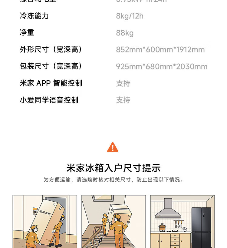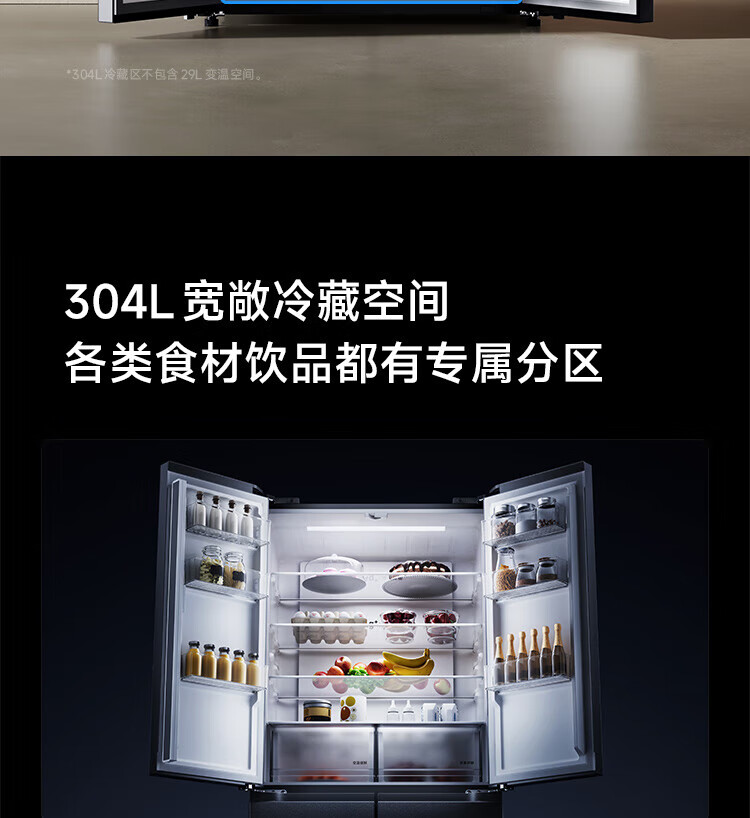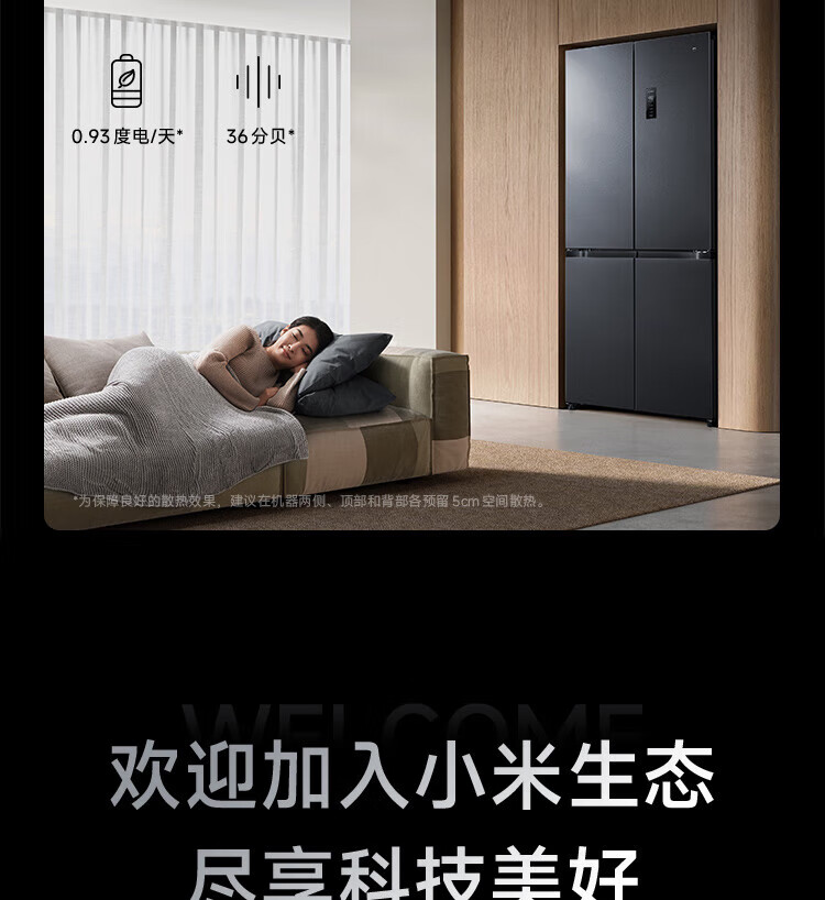 小米(MI)513升冰箱 十字四开门大容量 60cm超薄大容量 小米澎湃智联 一级能效 BCD-513WMSA