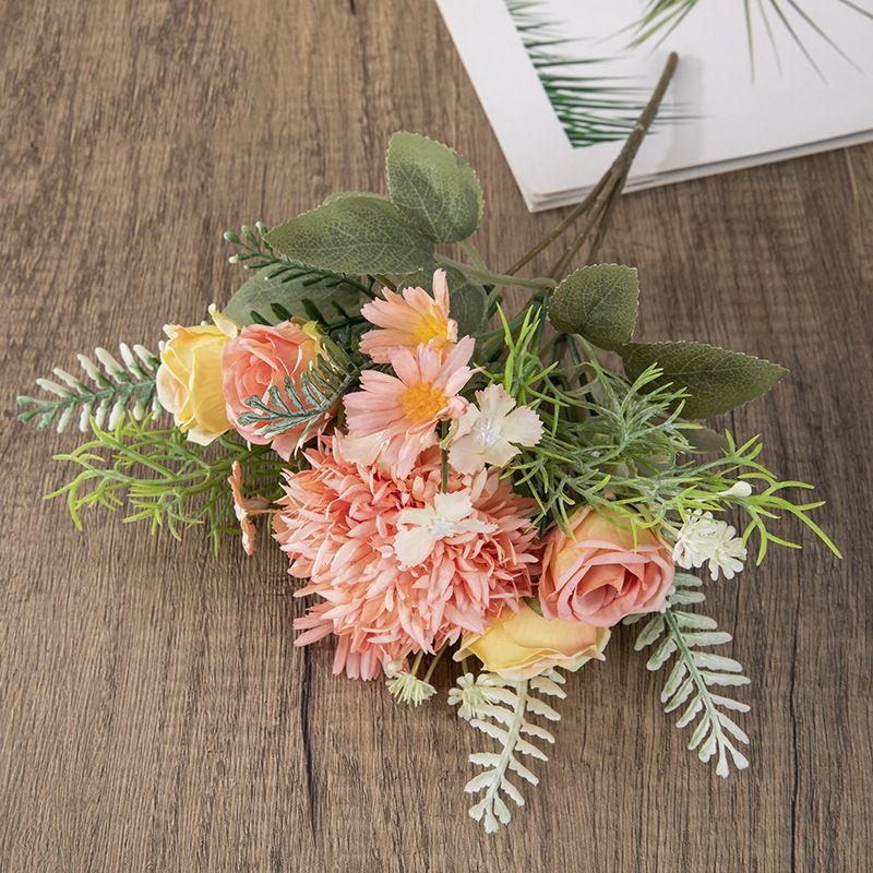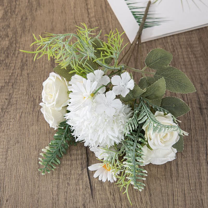 Proposal arrangement, indoor artificial flowers, new rose hydrangea, fake living room table decoration, plastic photo props (buy more for more cost-effectiveness) 7 fork bouquets of rose embroidery