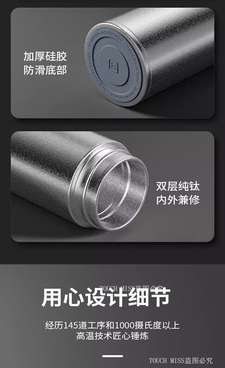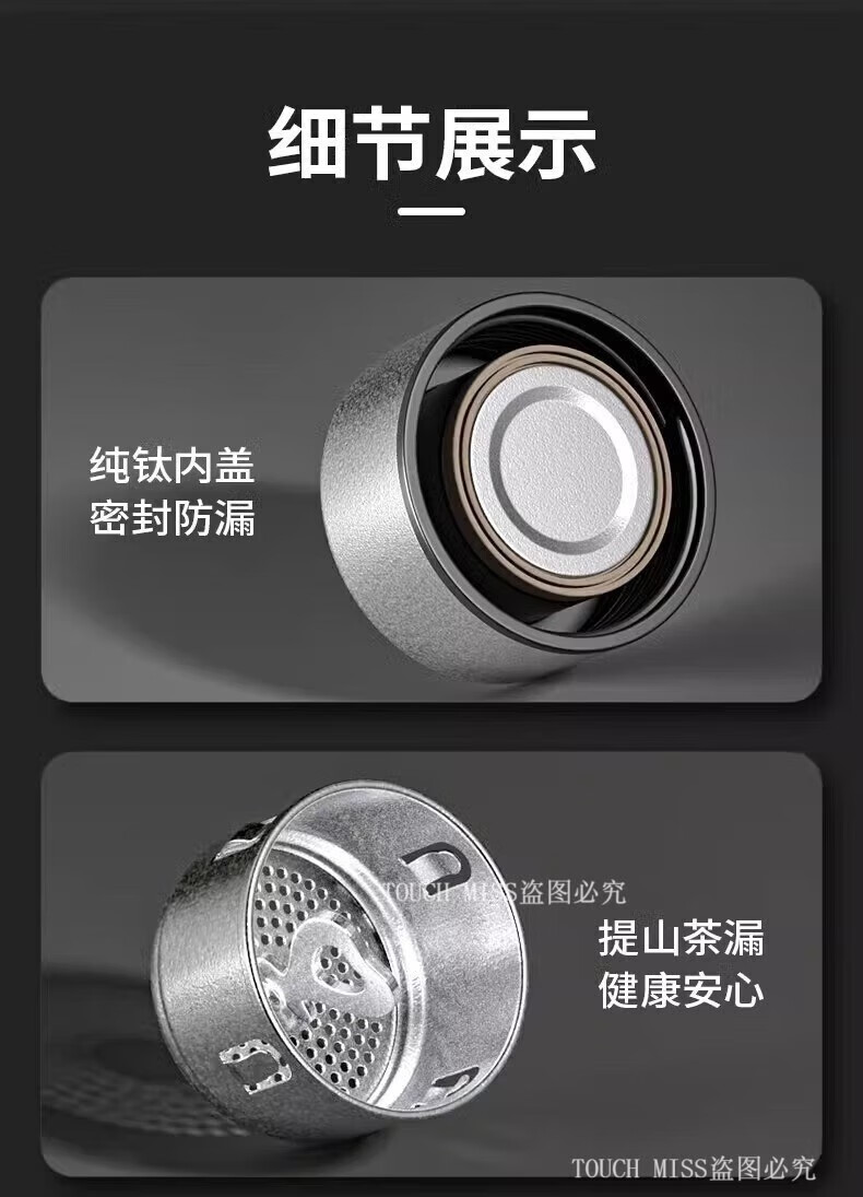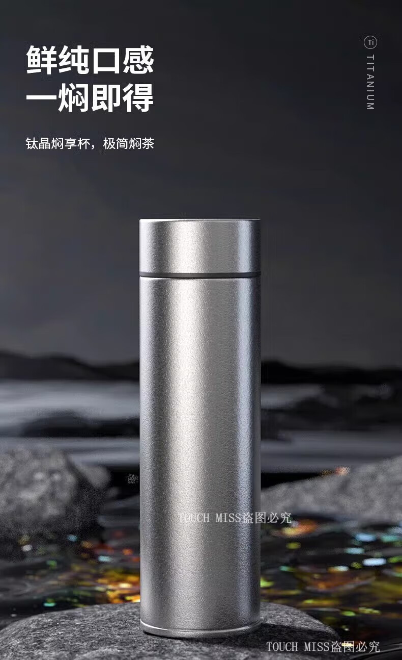 Touchmiss pure titanium thermos cup double-layer filter tea cup high-end business men's tea separation cup custom LOGO water cup double-layer pure titanium 470ML silver